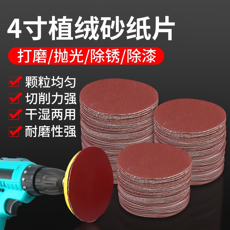 4 인치 5 인치 사포 시트 플로킹 디스크 브러시 시트 공기 연삭 자체 접착 백 벨벳 사포 100 붉은 모래 연마 시트스토어 가기