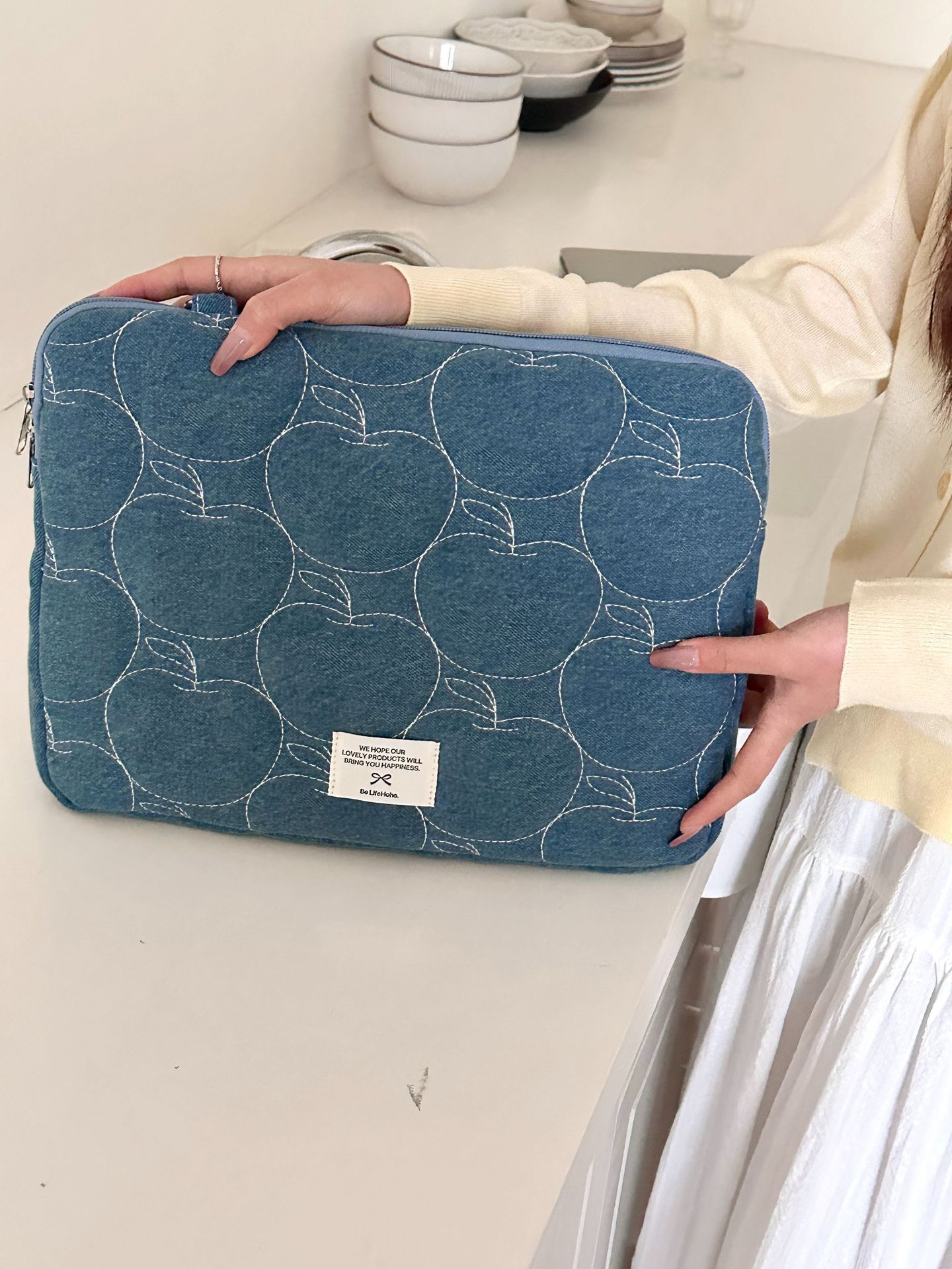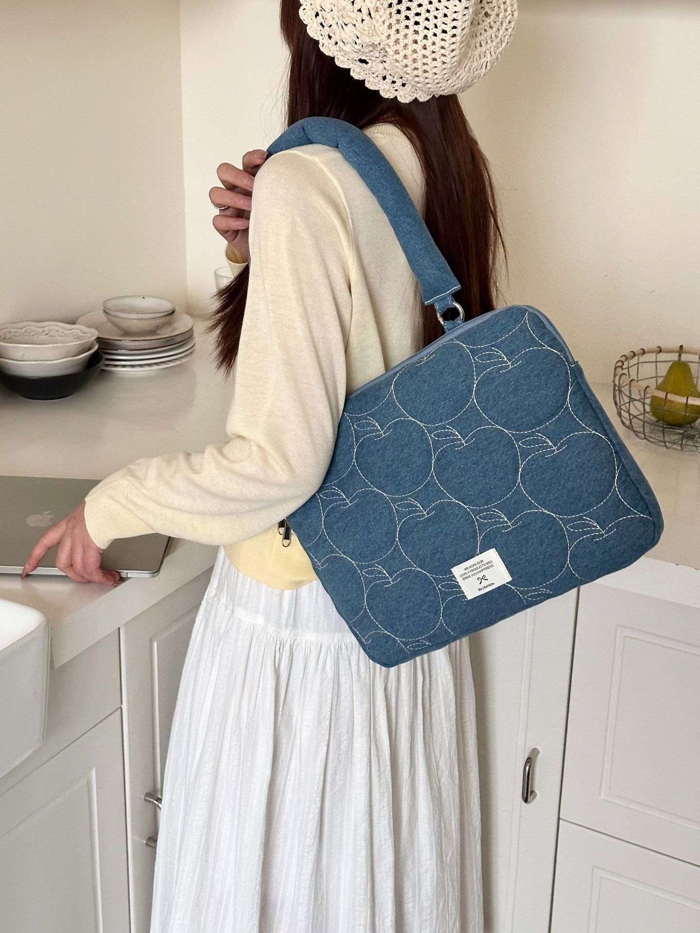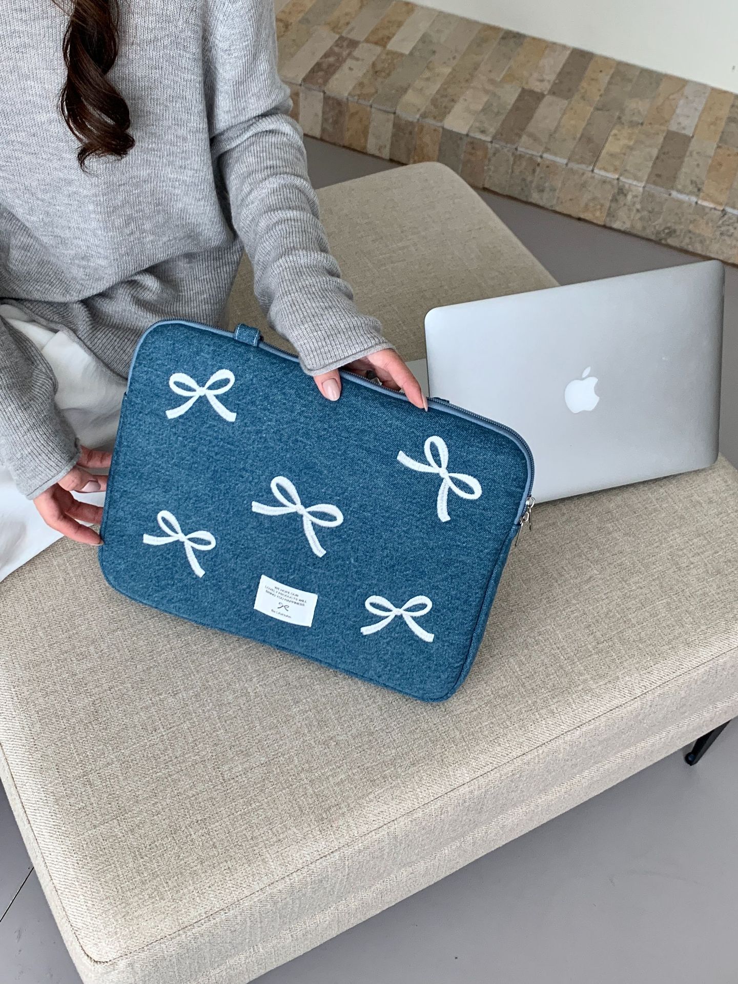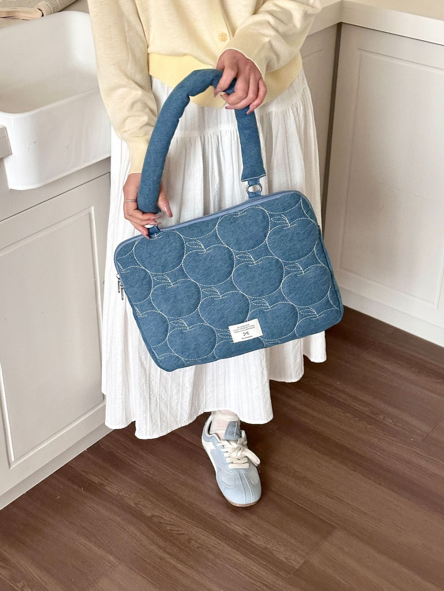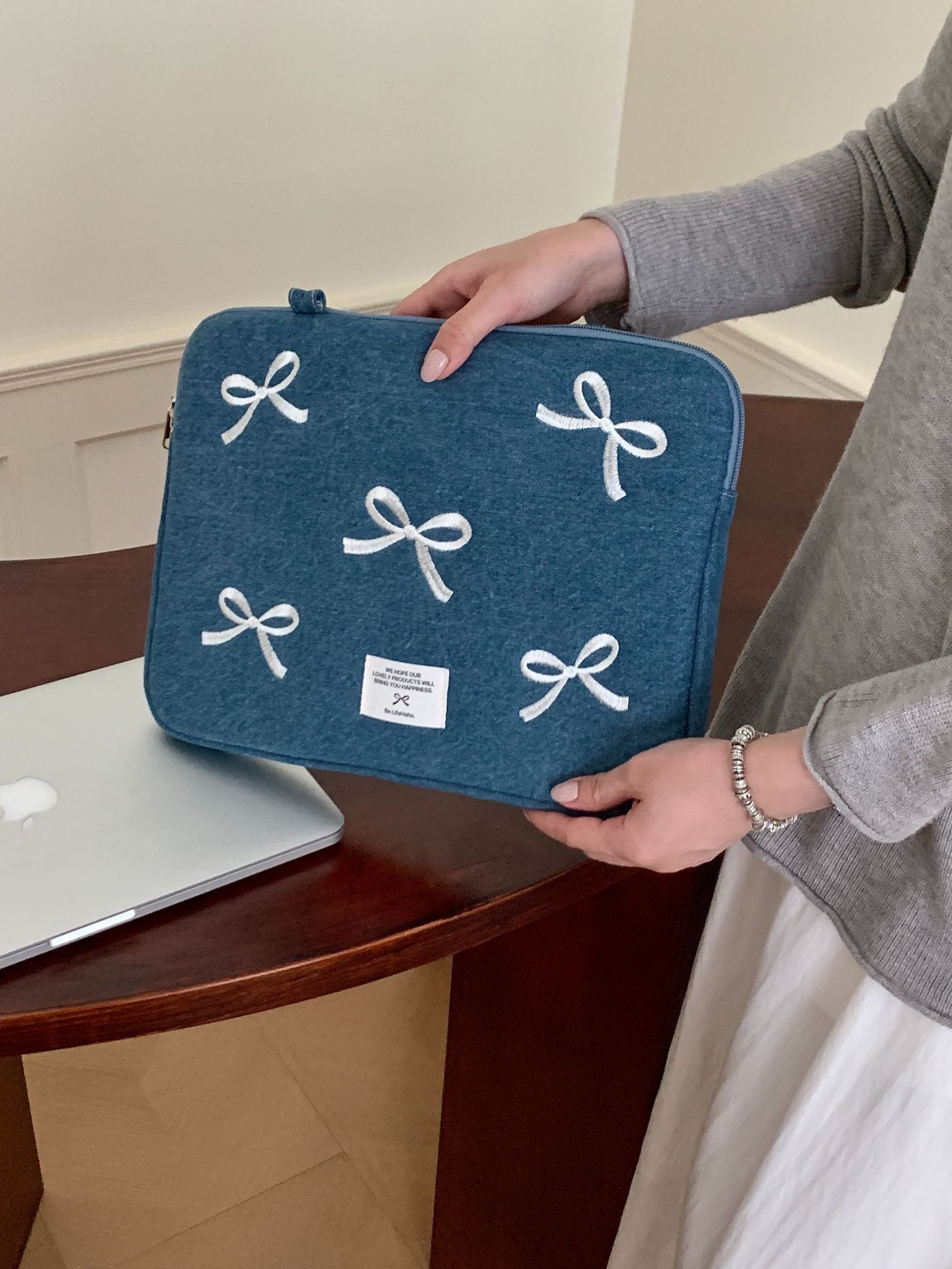 한국 새로운 스타일의 세척 물 데님 자수 노트북 가방 macbook 화웨이 15.6 인치스토어 가기