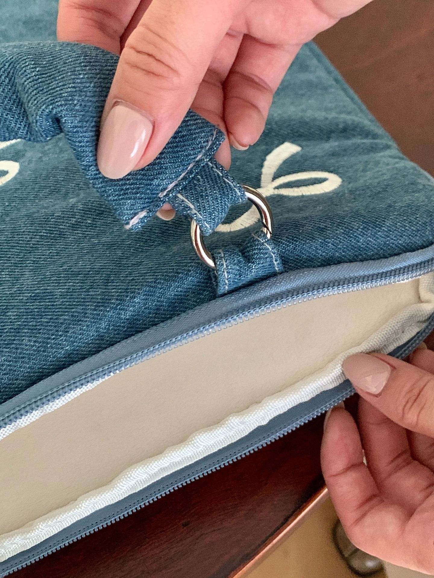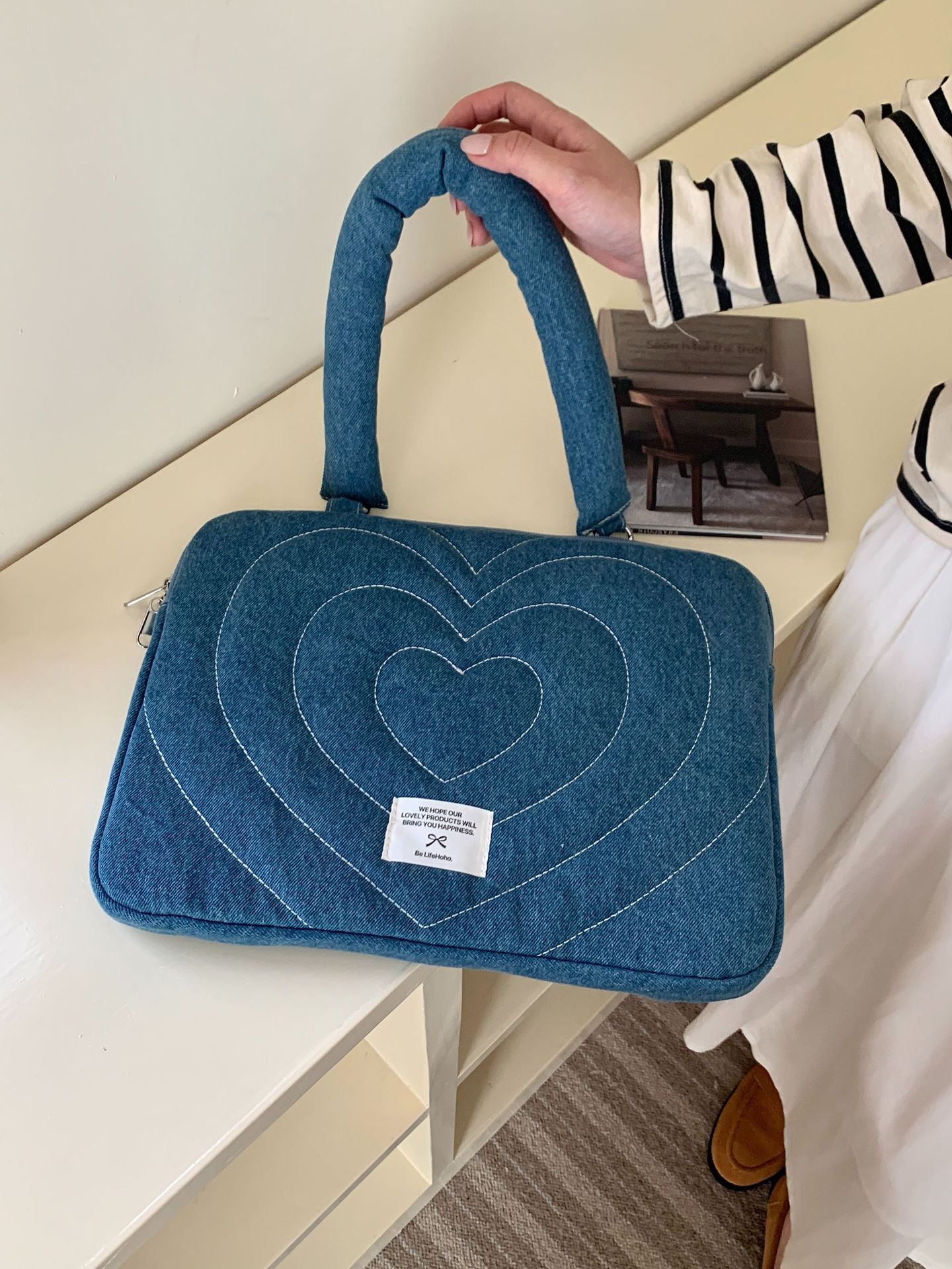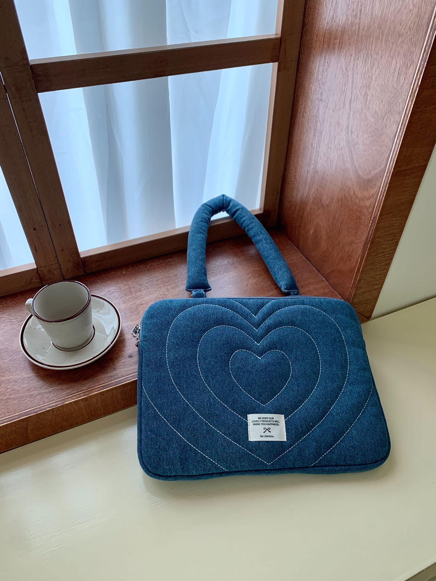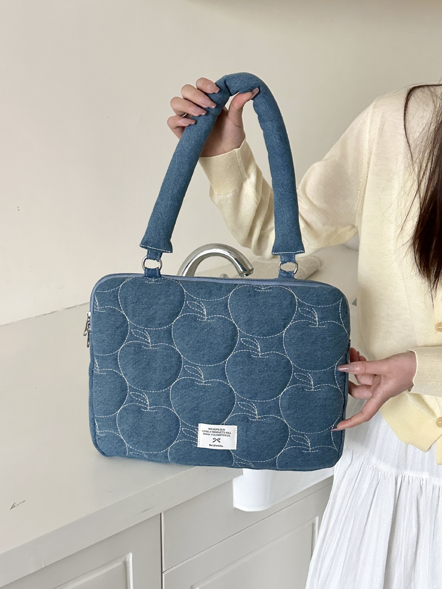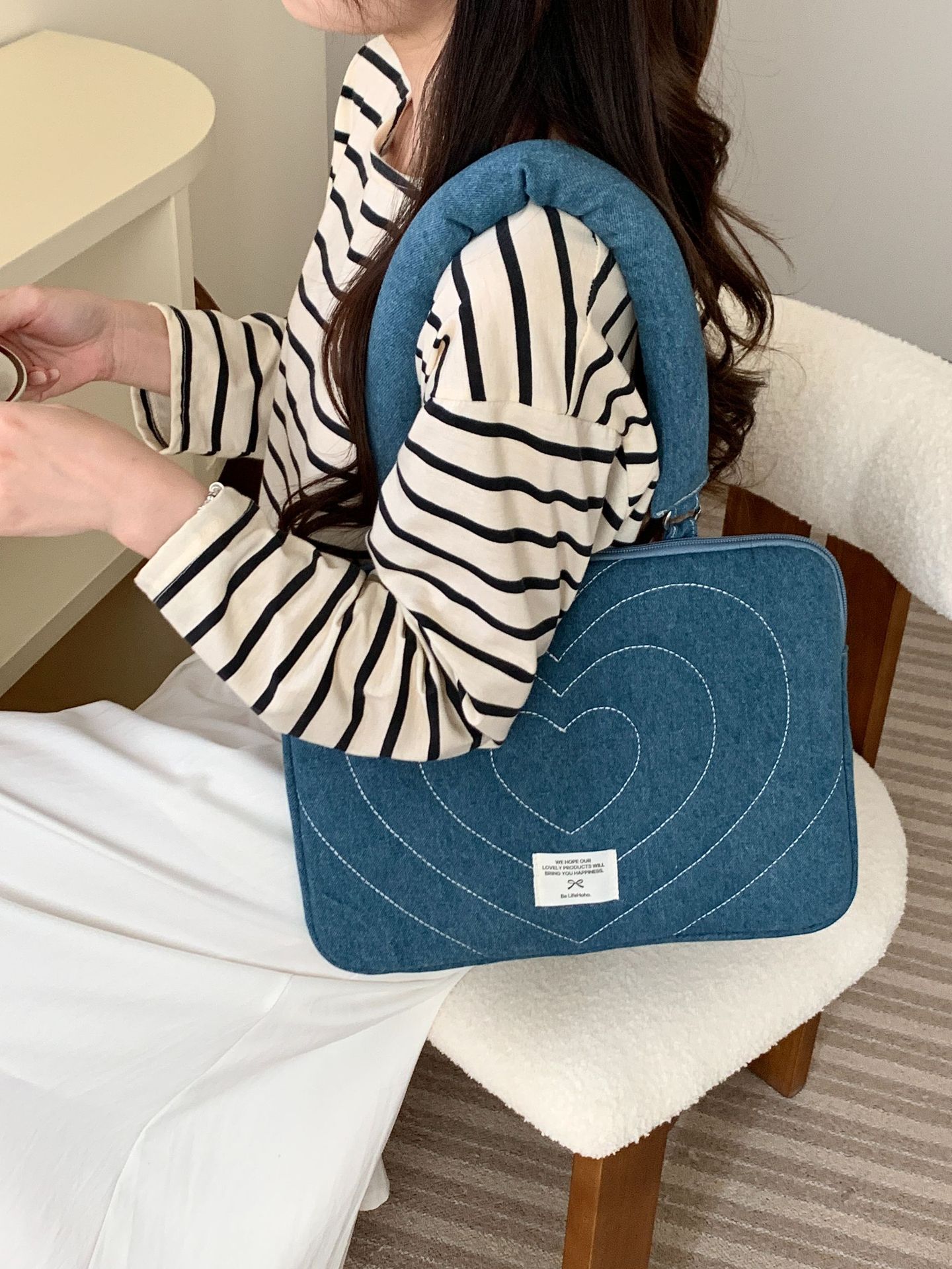 한국 새로운 스타일의 세척 물 데님 자수 노트북 가방 macbook 화웨이 15.6 인치스토어 가기