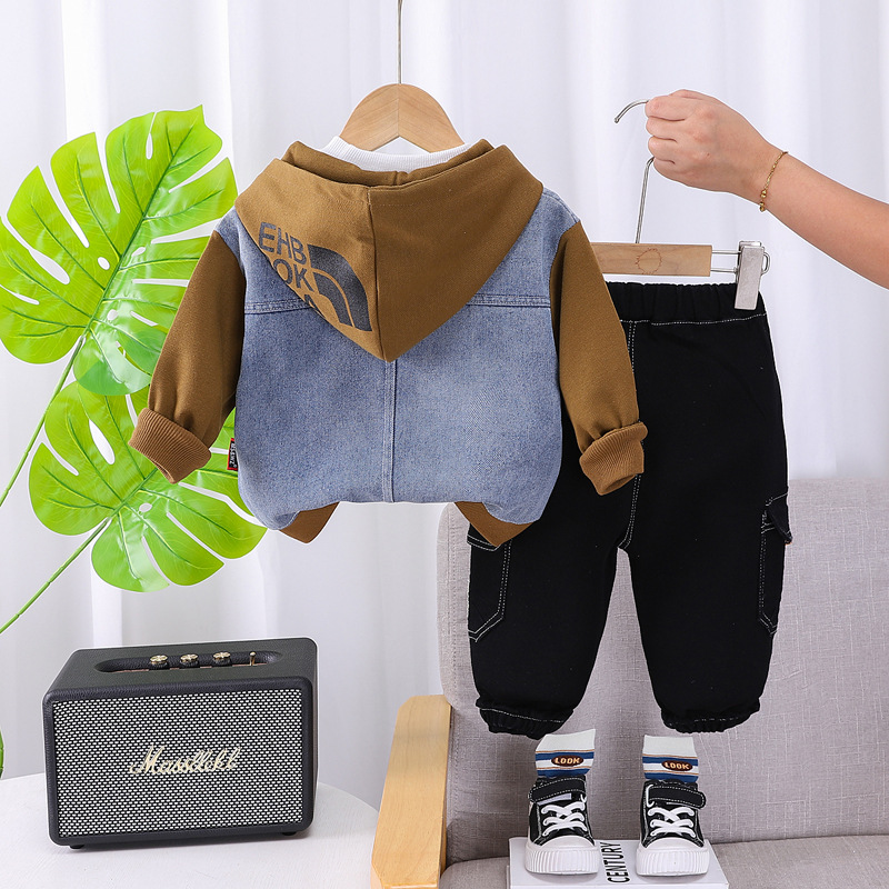 소년 가을 세트 2024 새로운 아동복 잘 생긴 소년 아기 봄과 가을 옷 3 피스 코트 조수스토어 가기
