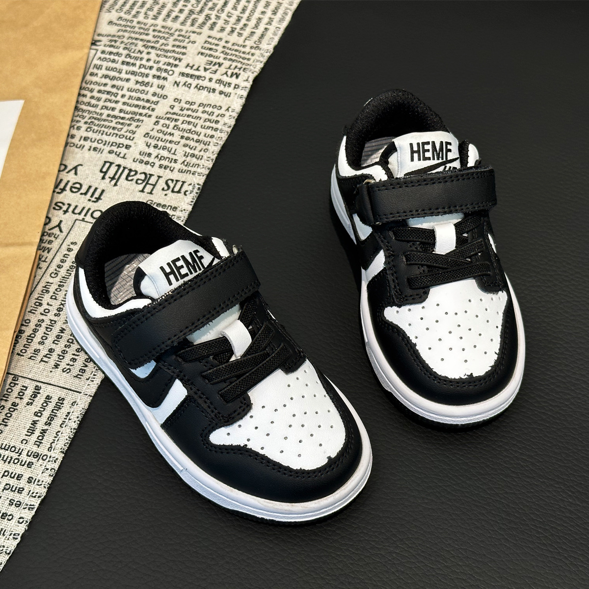 어린이 흑백 팬더 보드 신발 소년 정품 가죽 운동화 여자 캐주얼 신발 가을 새로운 어린이 부드러운 단독 어린이 신발