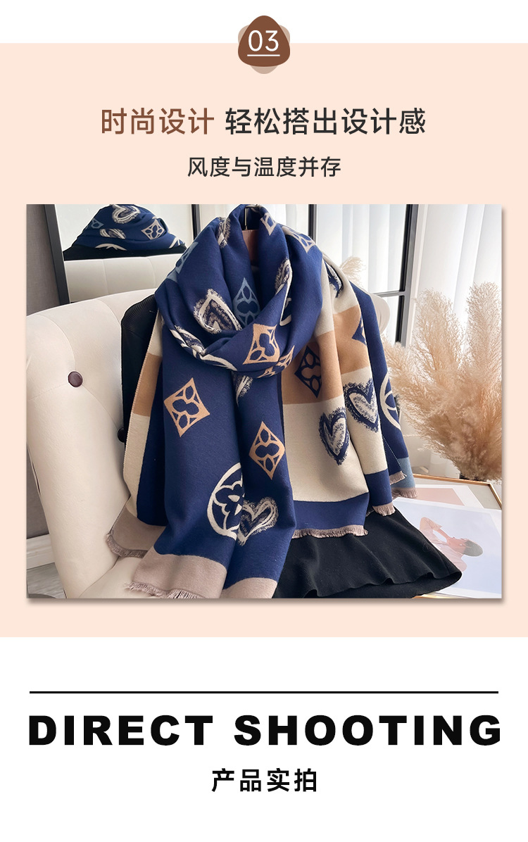 가을과 겨울 하트 모양의 기하학적 다이아몬드 패션 캐시미어 따뜻한 여성 스카프 짧은 수염 술 장식 긴 목도리스토어 가기