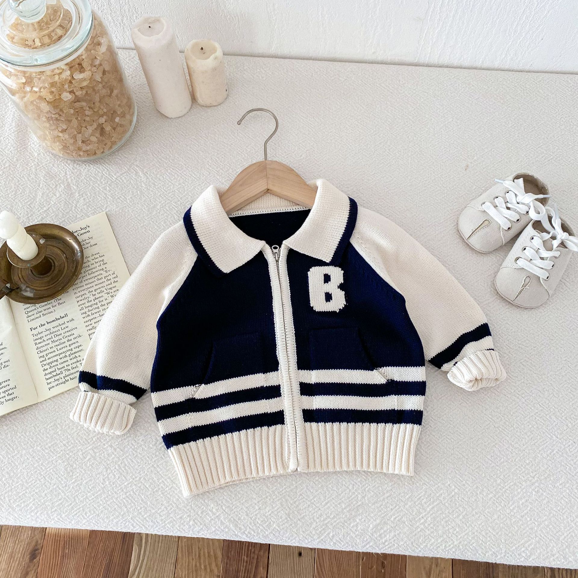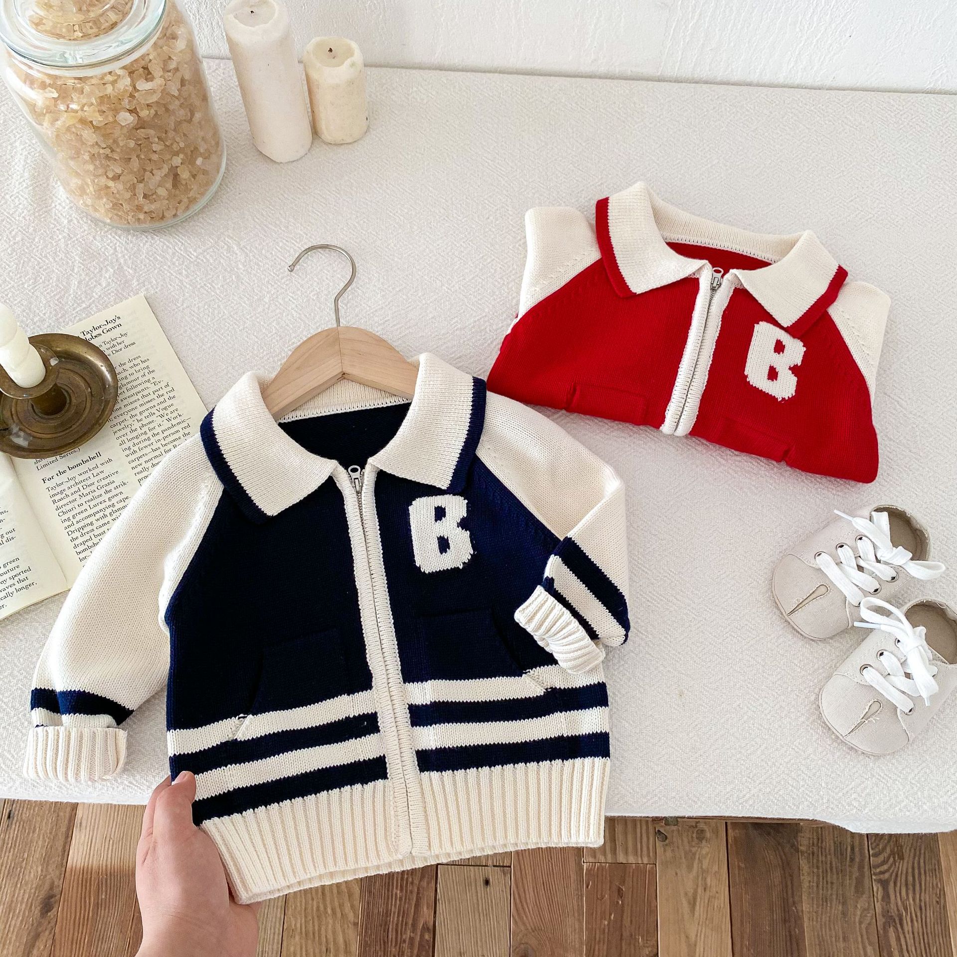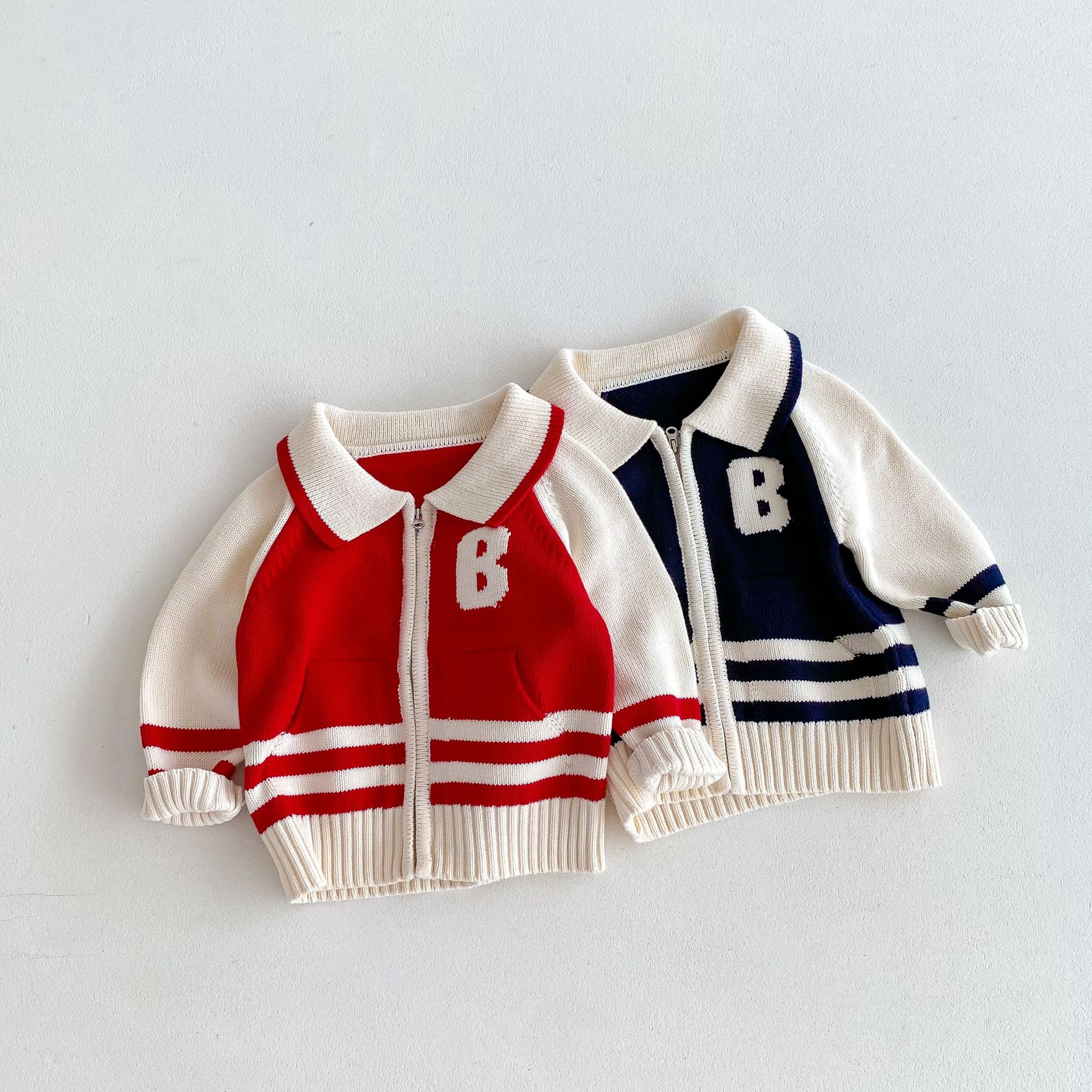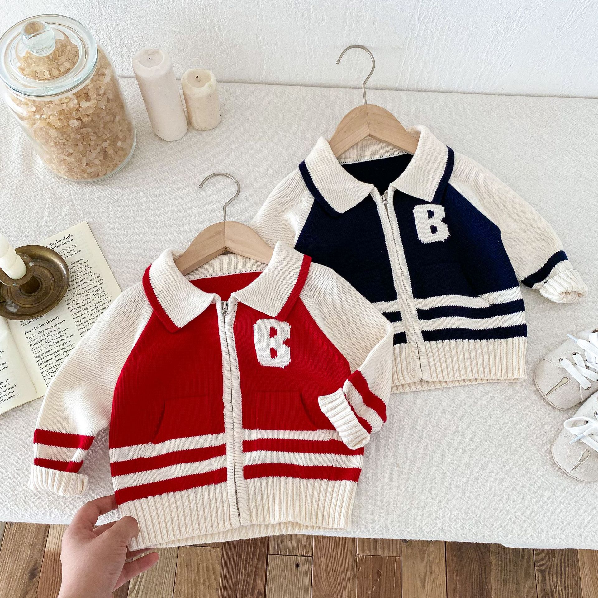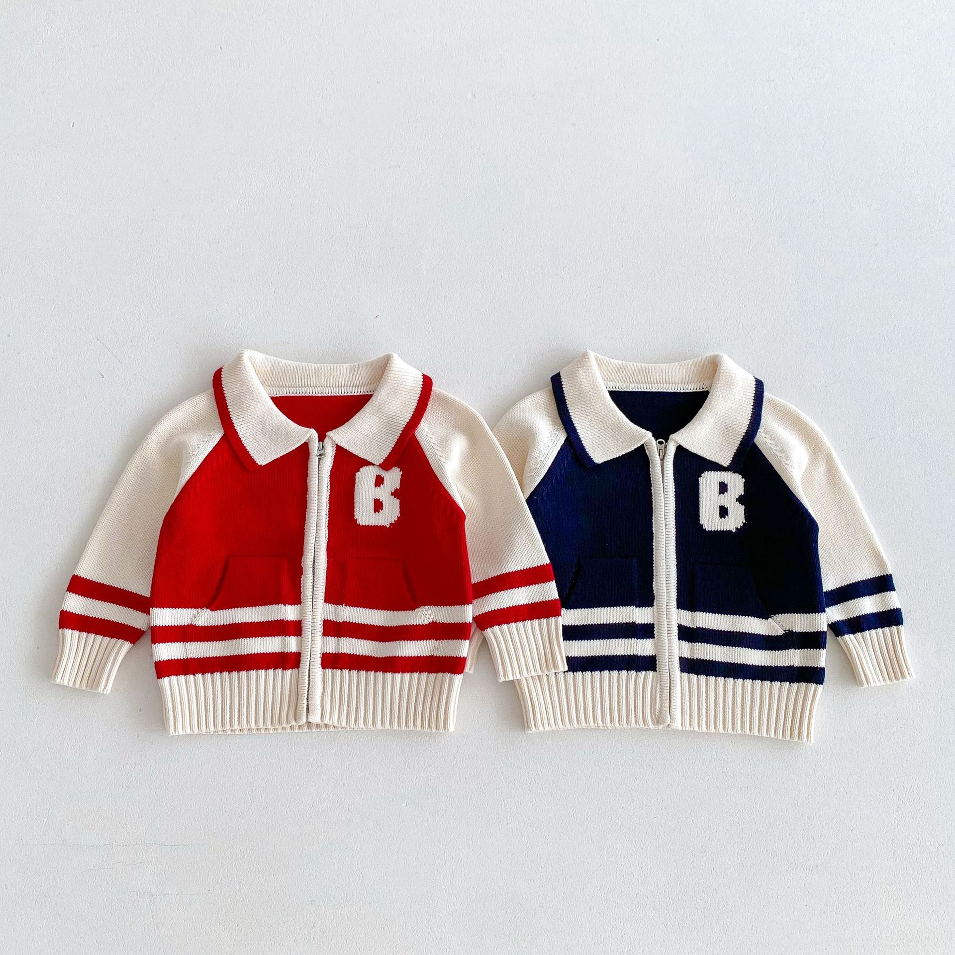 2024 가을과 겨울 새로운 1-8 세 어린이 의류 편지 패션 지퍼 니트 카디건 남성과 여성의 보물 스웨터 코트 한국어 버전스토어 가기