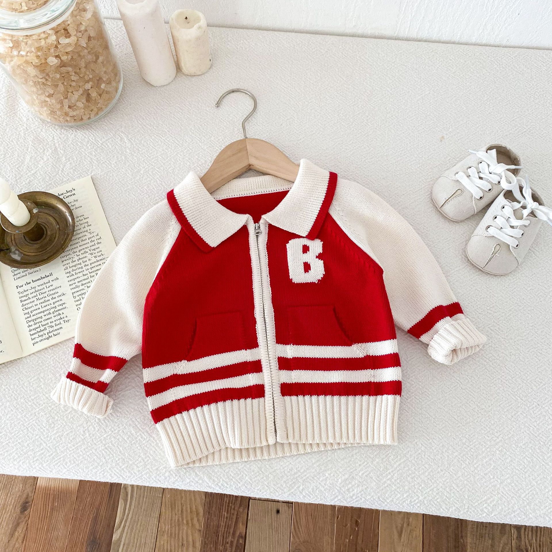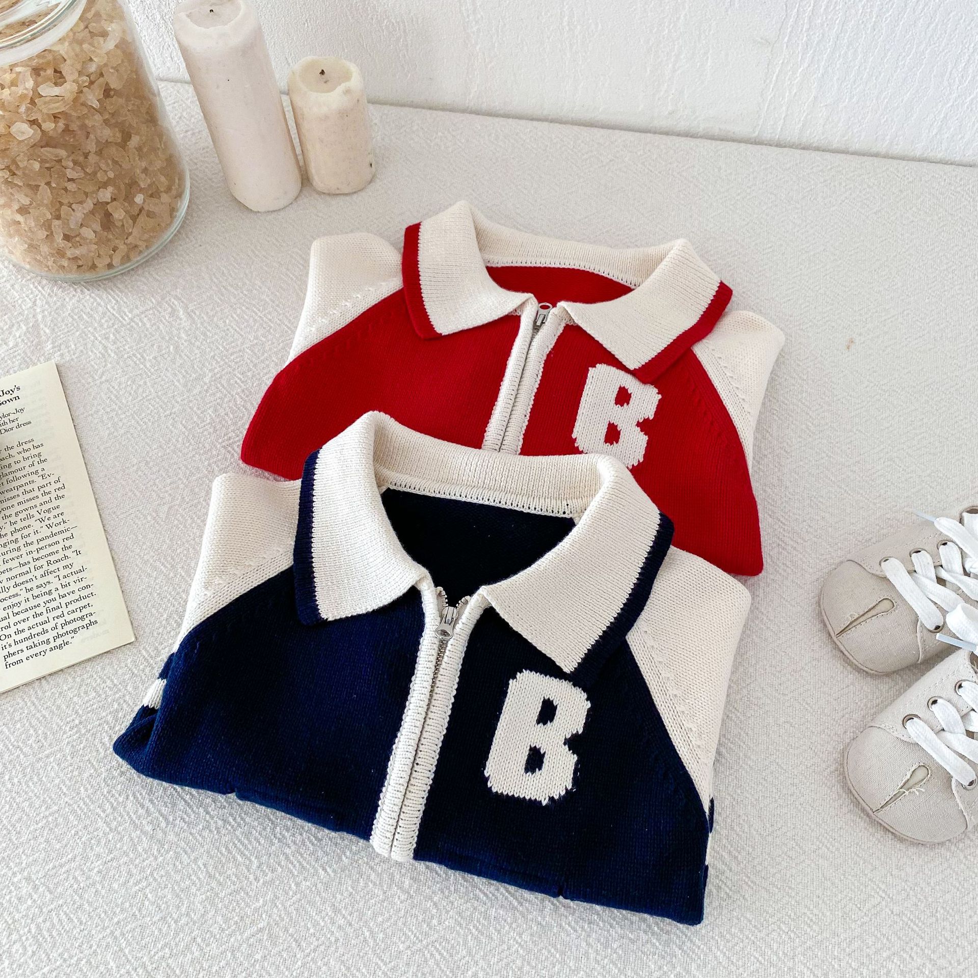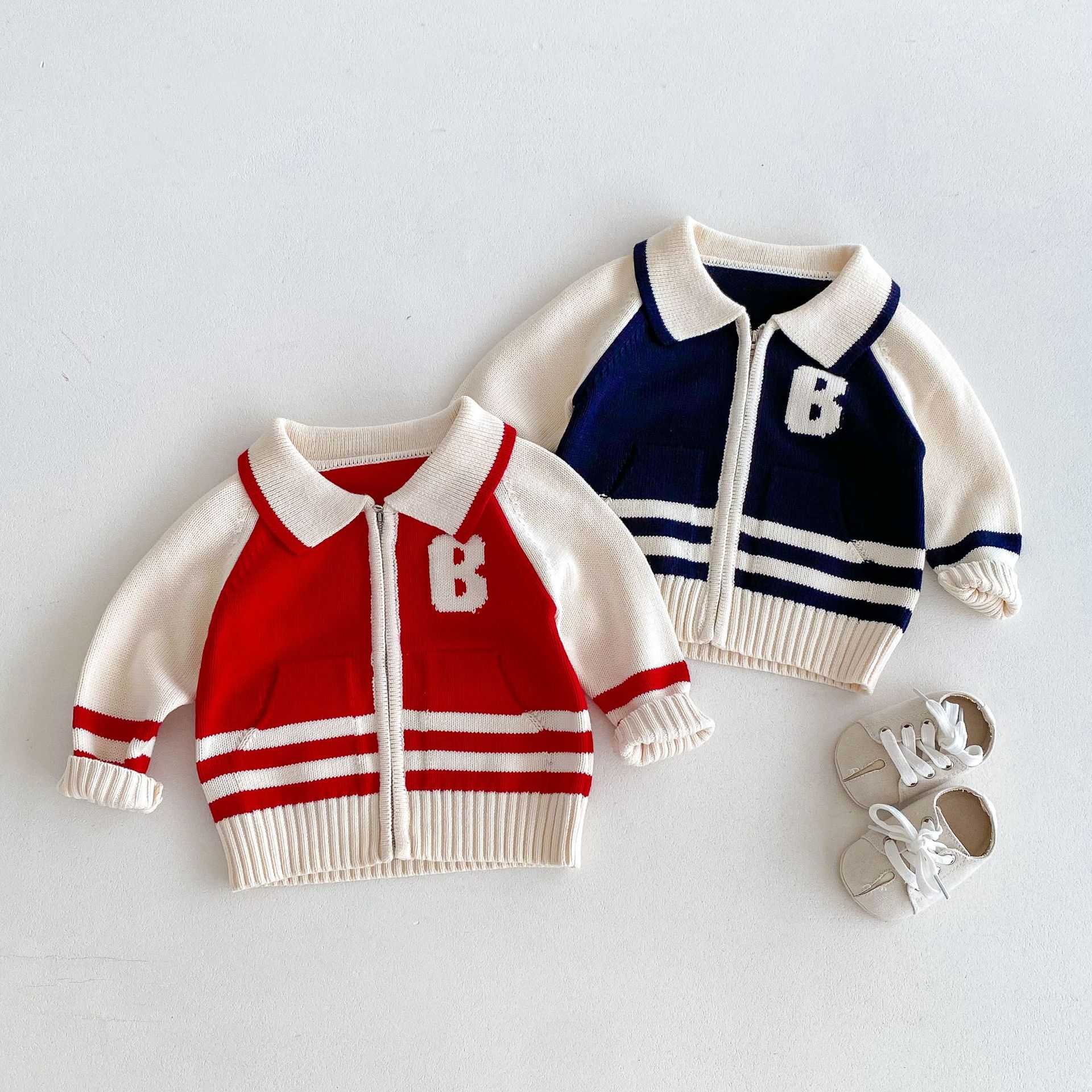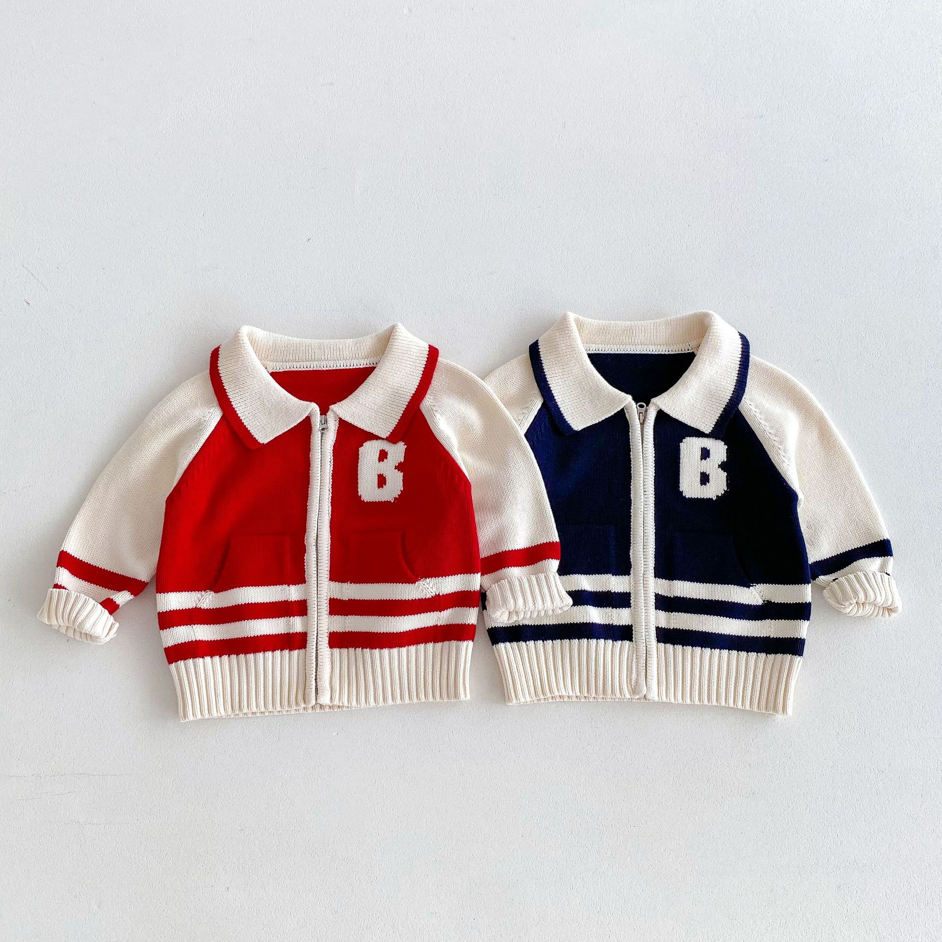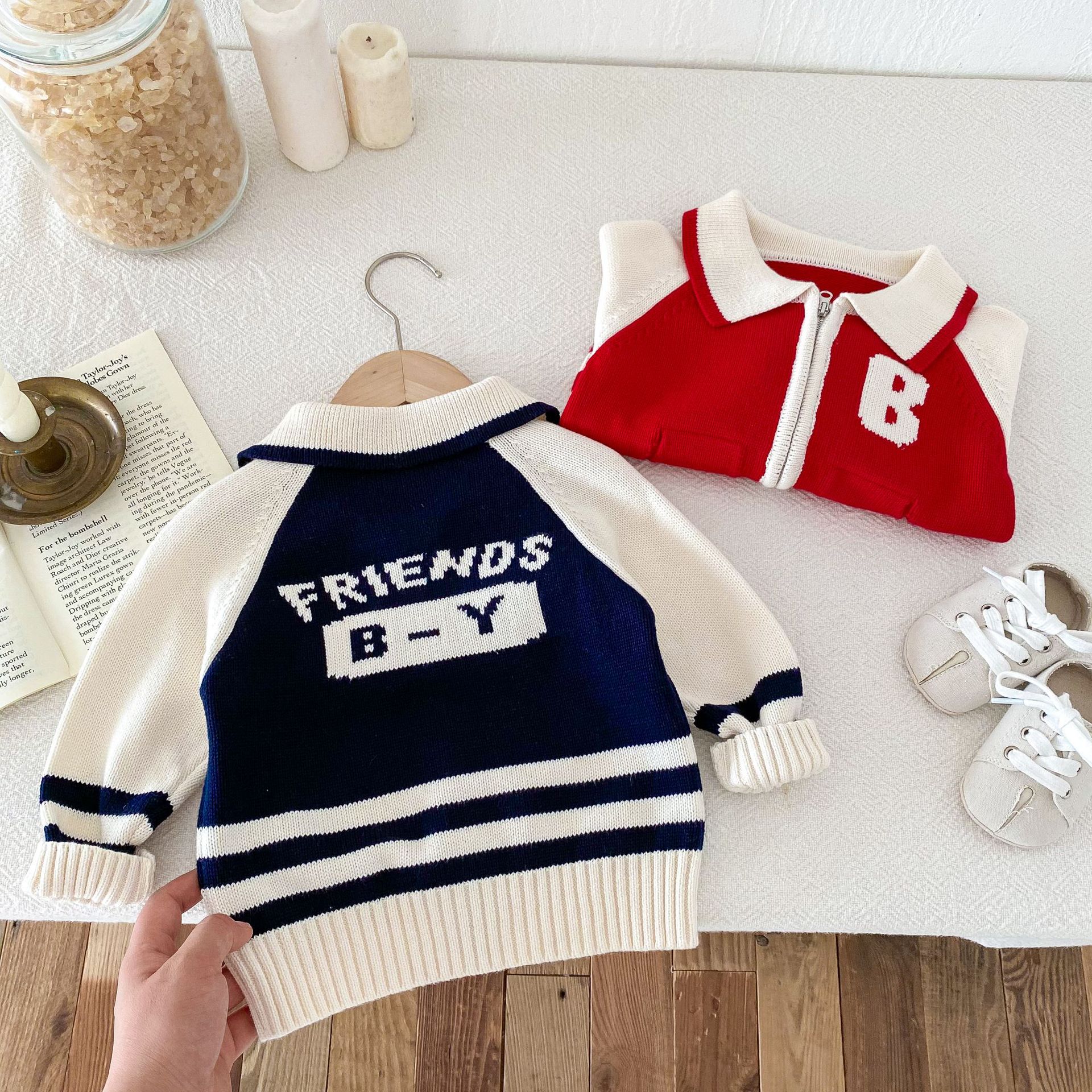 2024 가을과 겨울 새로운 1-8 세 어린이 의류 편지 패션 지퍼 니트 카디건 남성과 여성의 보물 스웨터 코트 한국어 버전스토어 가기