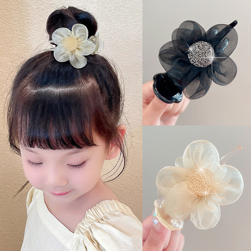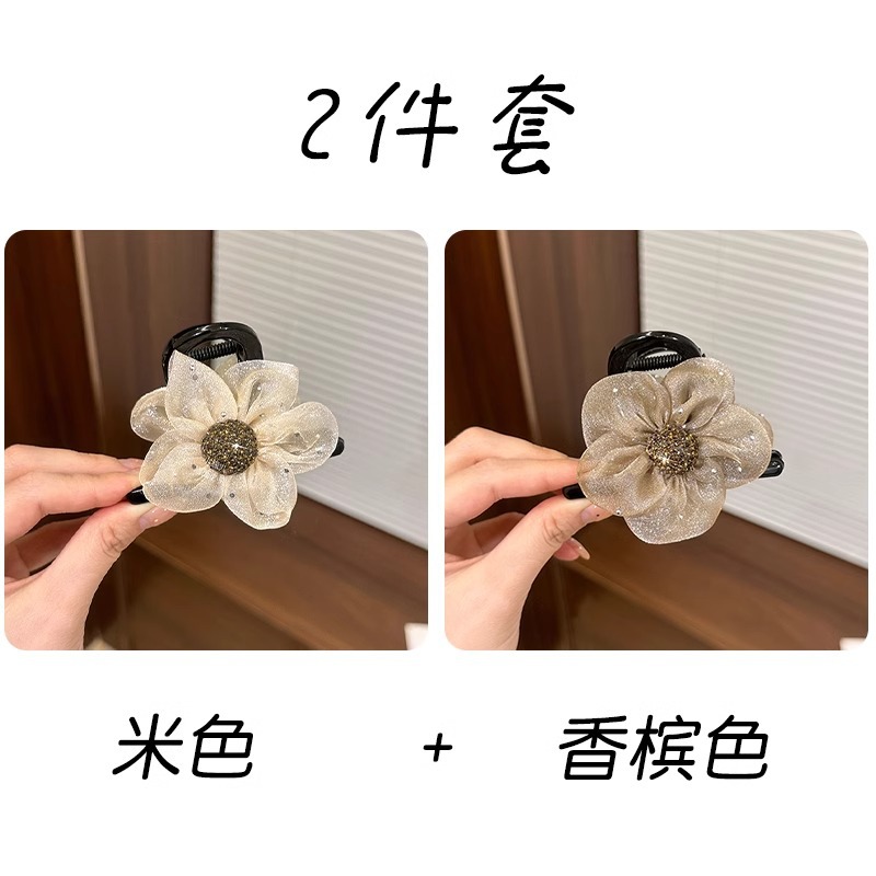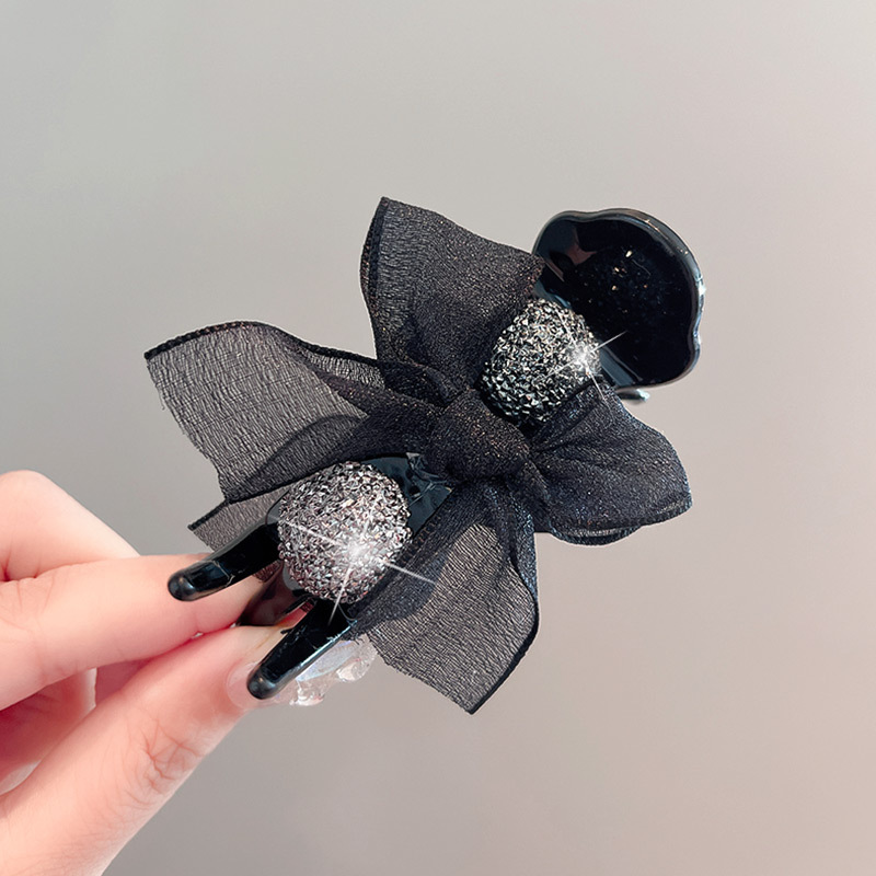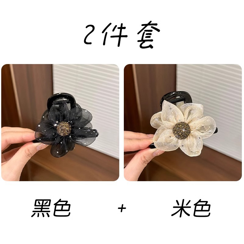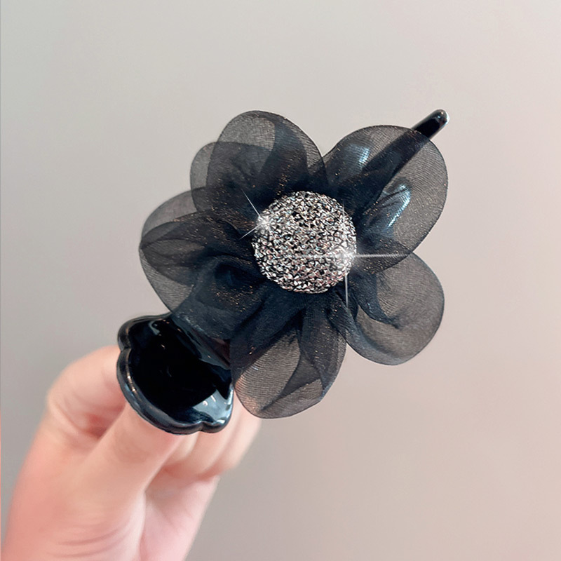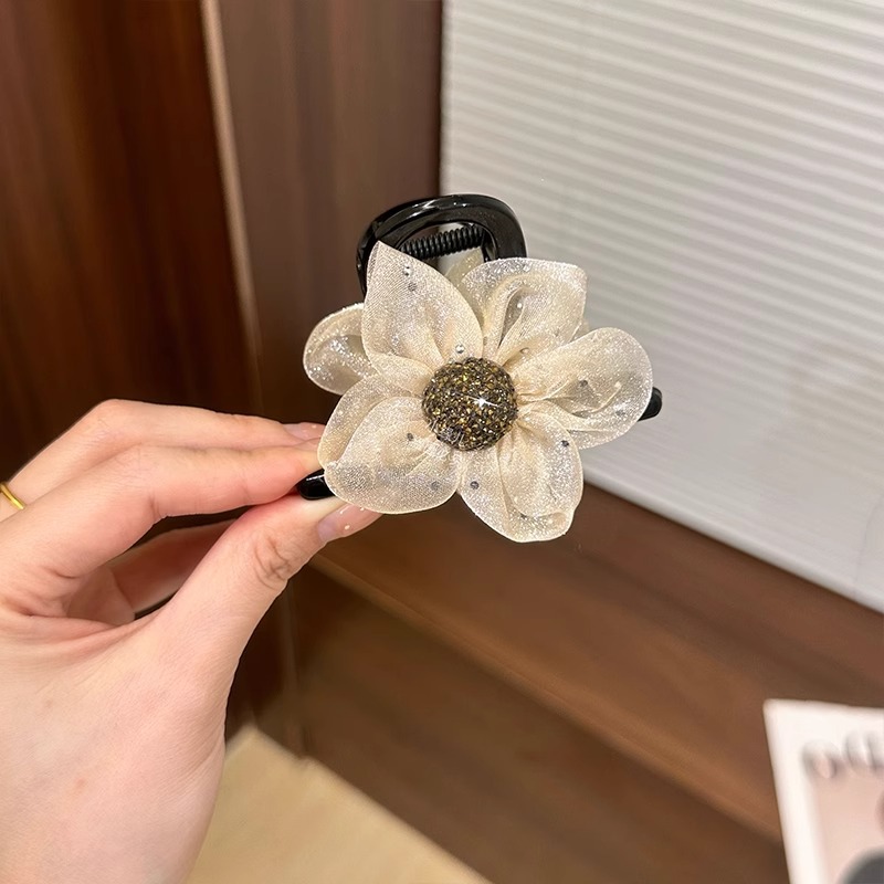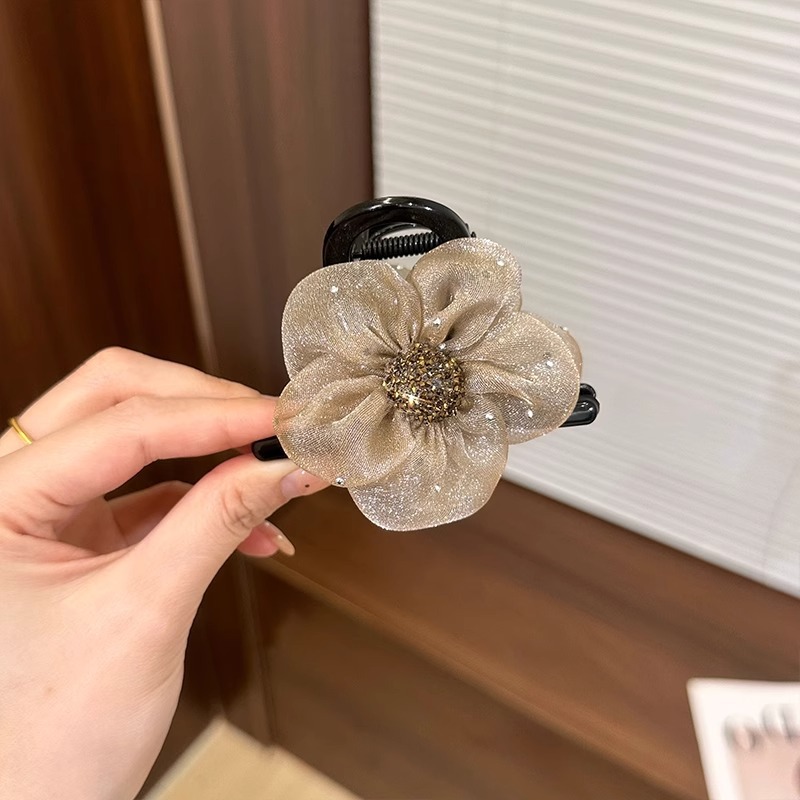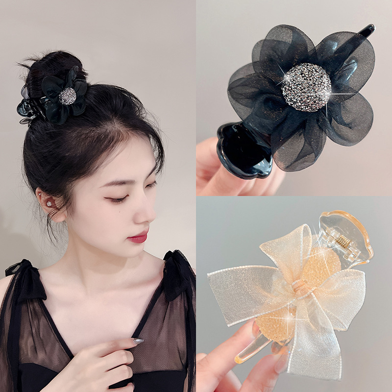 절묘한 메쉬 라인스톤 플라워 그랩 클립 여성 기질 상어 클립 고급 센스 하프 타이 헤어핀 헤드웨어 볼 헤어 클립