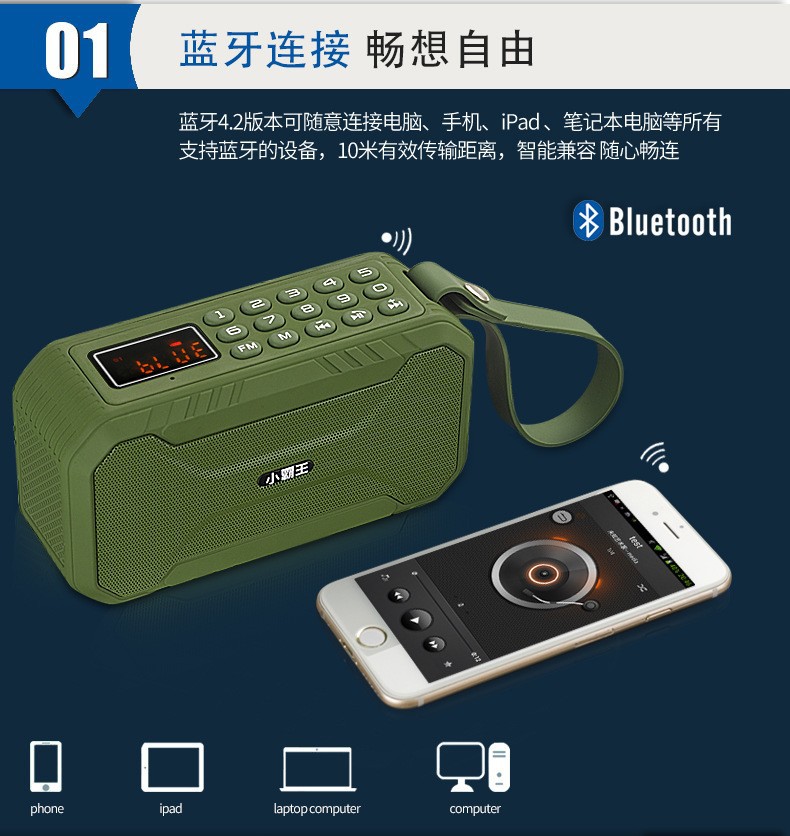작은 오버로드 D100 무선 블루투스 카드 스피커 3 방지 라디오 휴대용 벨트 오버 웨이트 서브 우퍼 블루투스 스피커
