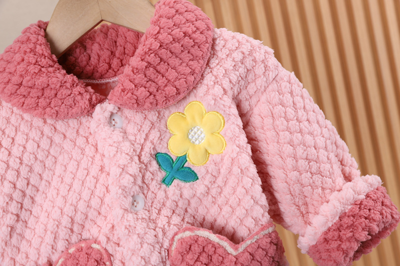 어린이 겨울 가정 의류 세트 0-5 세 아기 소녀 플러스 벨벳 잠옷 세트 소녀 두꺼운 옷 카디건