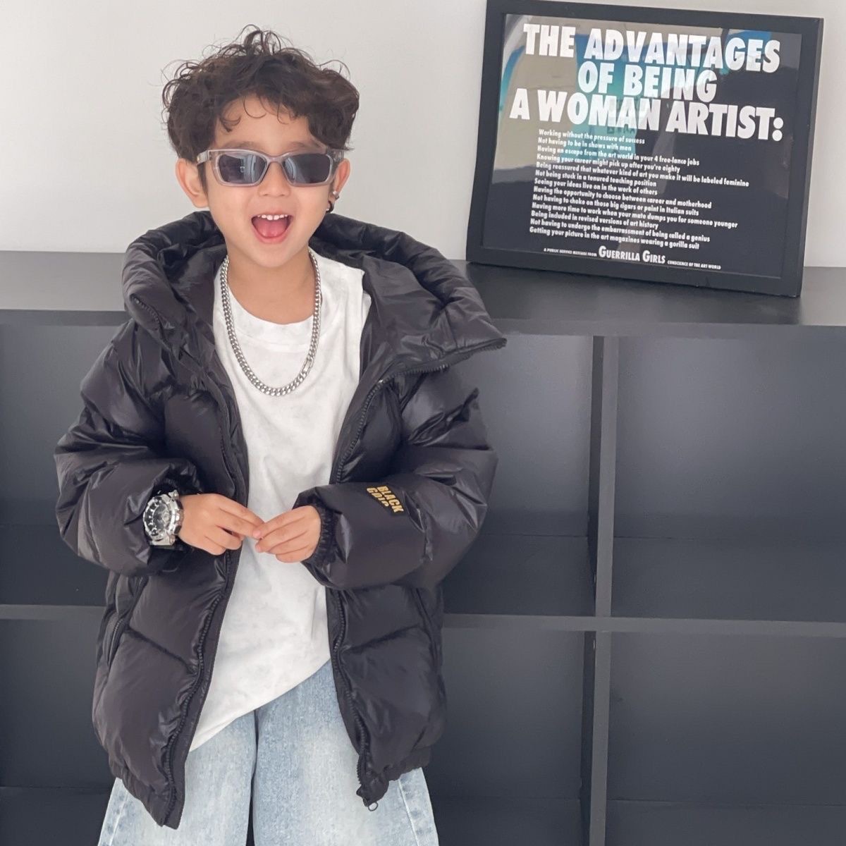 2025 정품 블랙 골드 어린이 소년 소녀 두꺼운 따뜻한 한국 스타일 겨울 코트 한국 스타일 유행스토어 가기