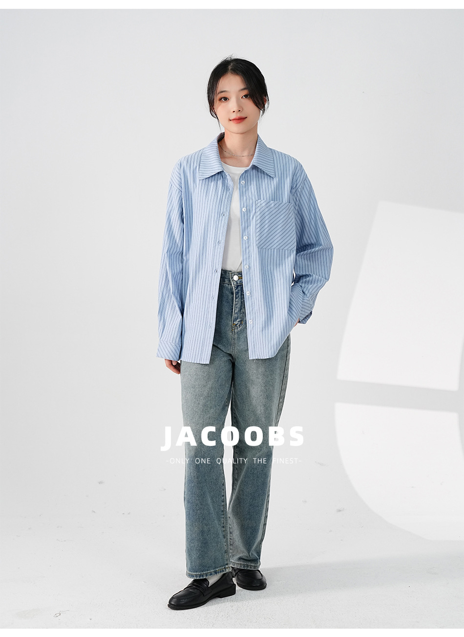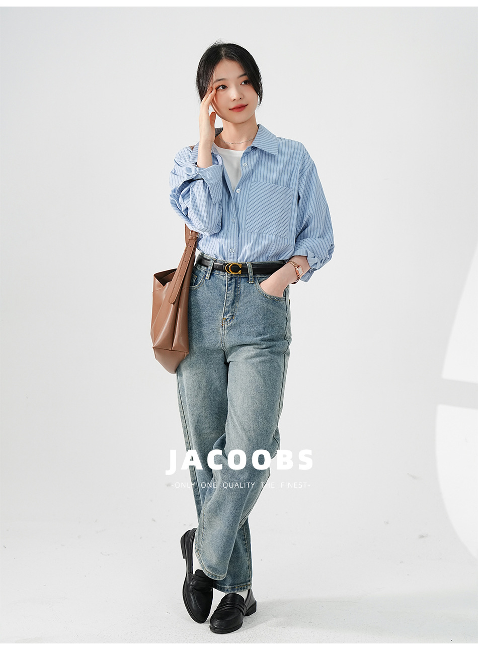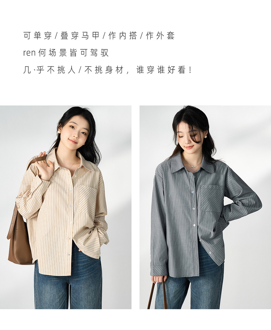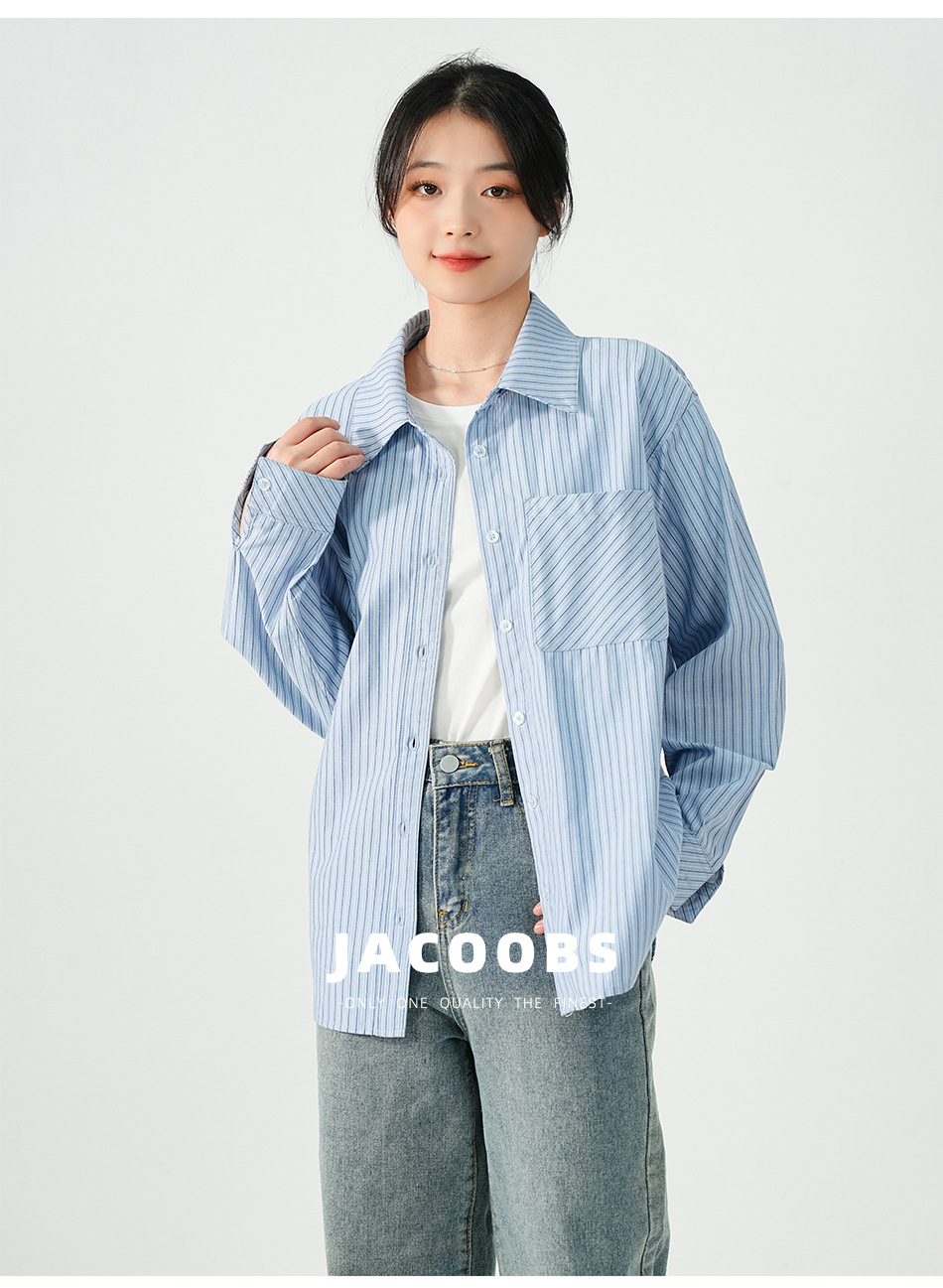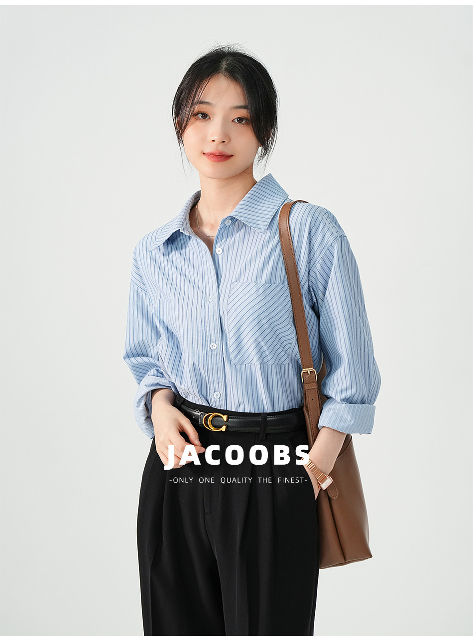 블루 스트라이프 셔츠 여성의 봄과 가을 디자인 센스 틈새 OL 전문 통근자 스택 셔츠 디자인 감각스토어 가기
