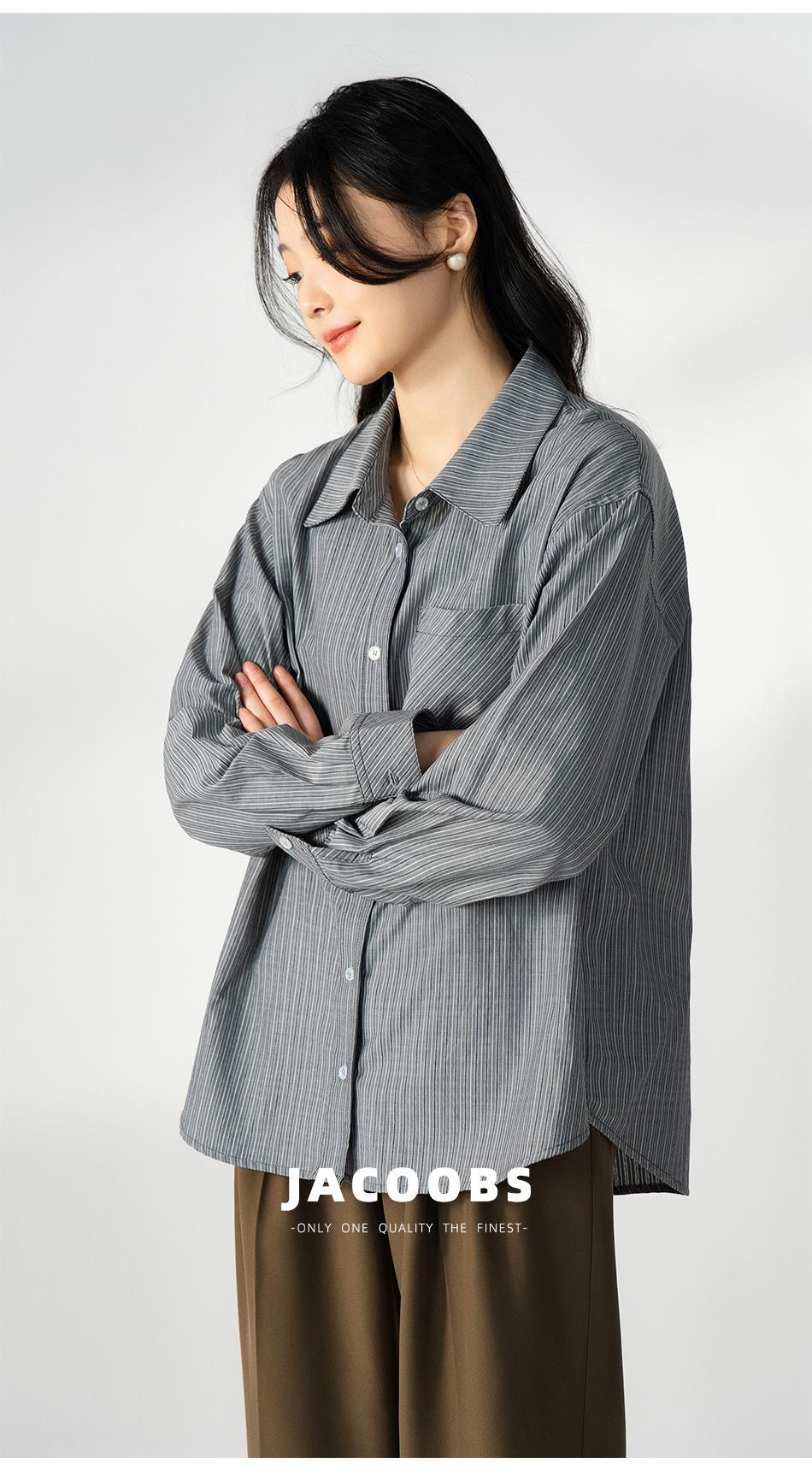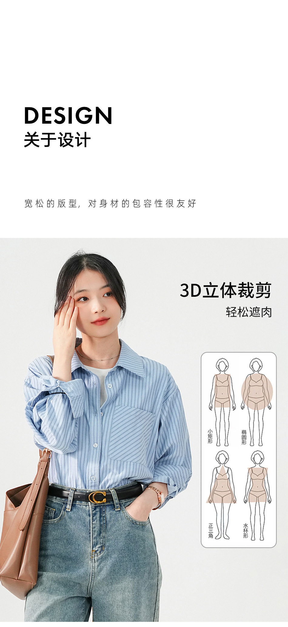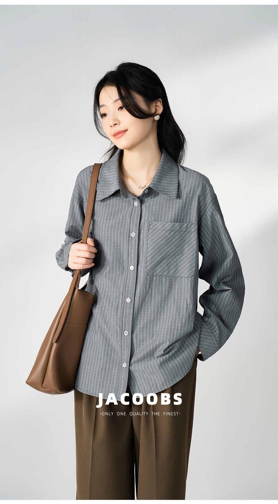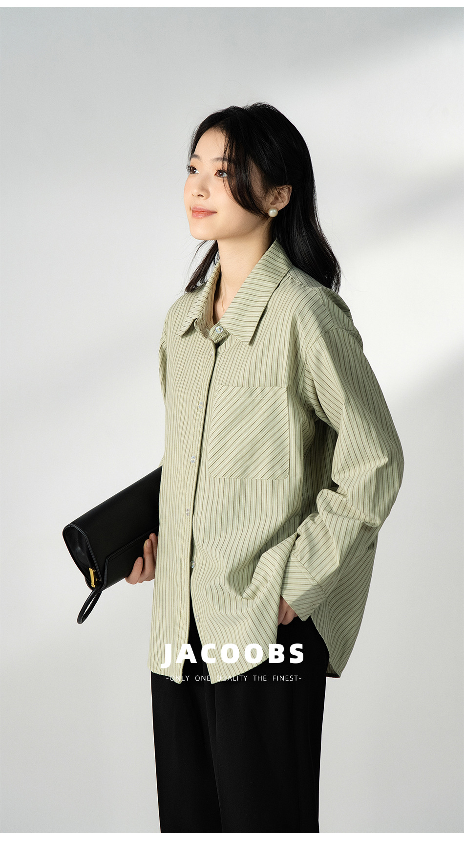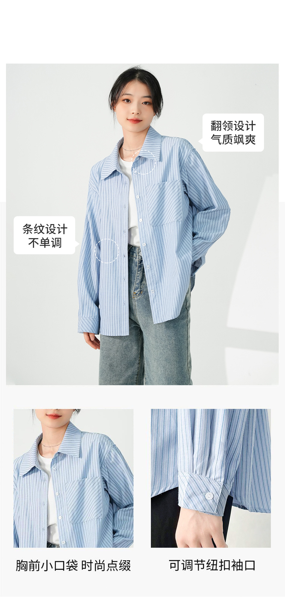 블루 스트라이프 셔츠 여성의 봄과 가을 디자인 센스 틈새 OL 전문 통근자 스택 셔츠 디자인 감각스토어 가기