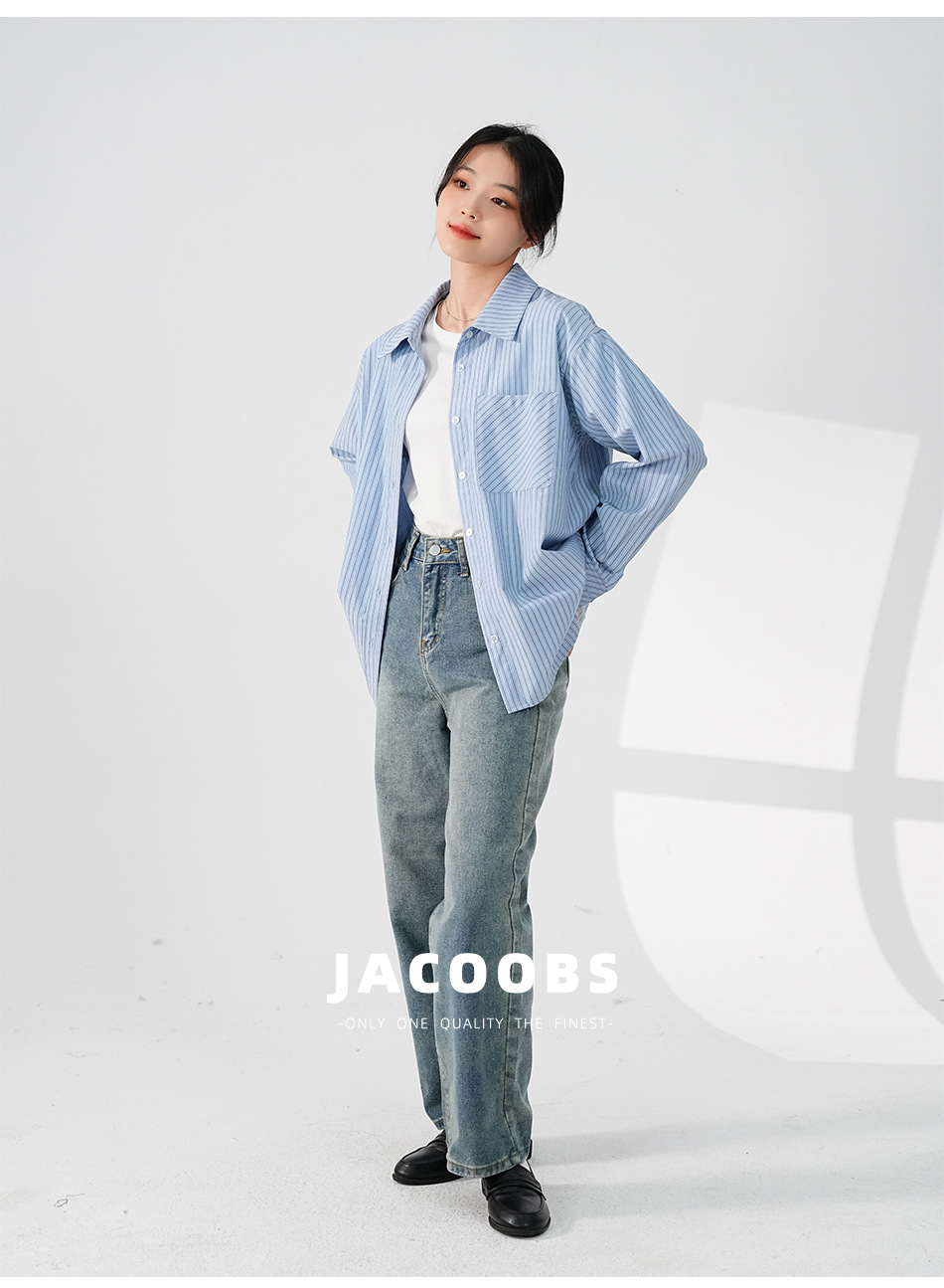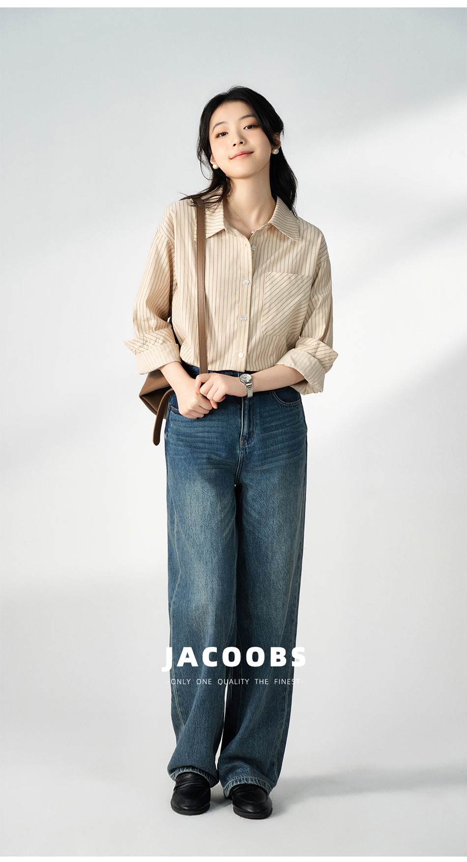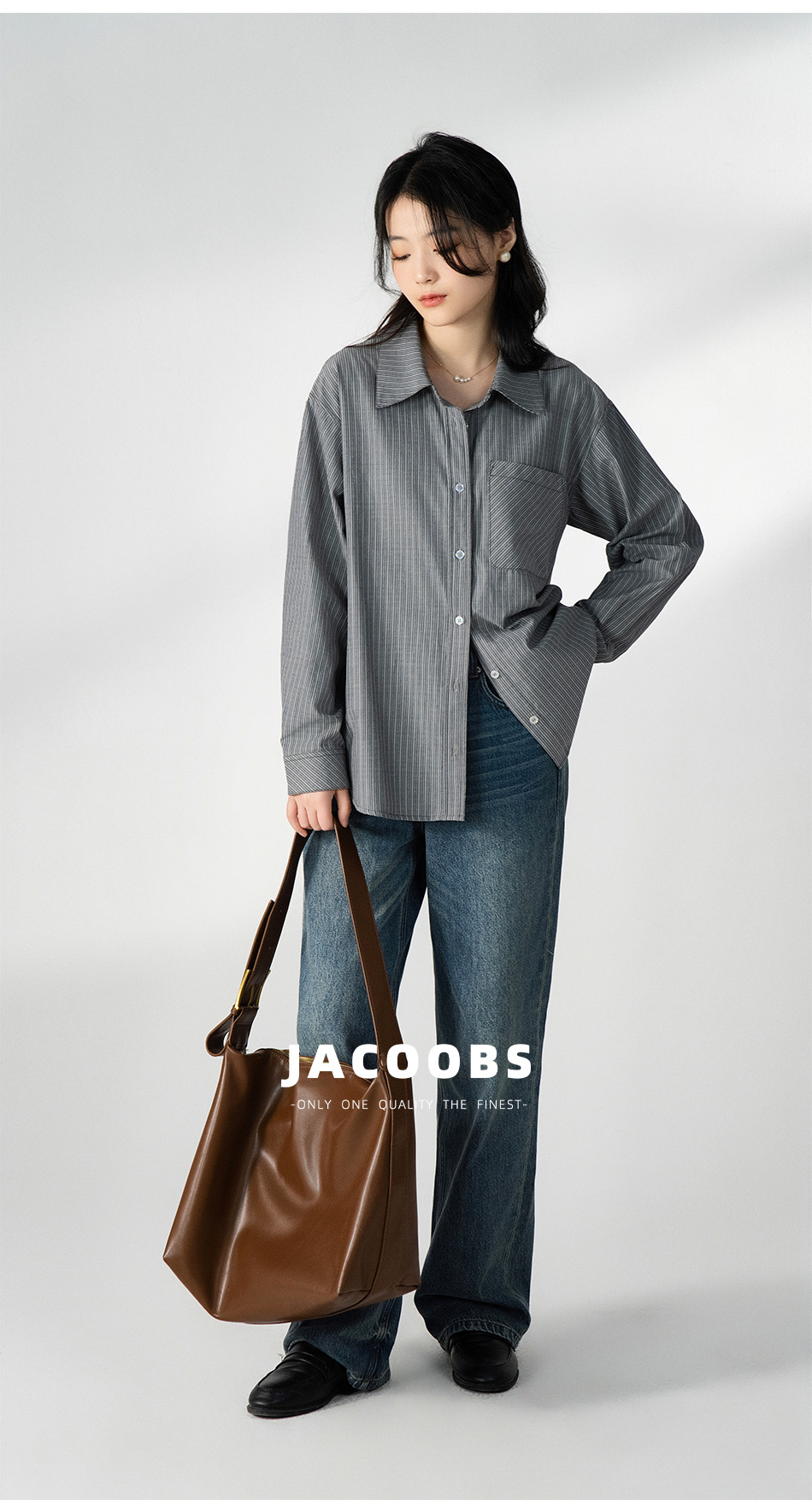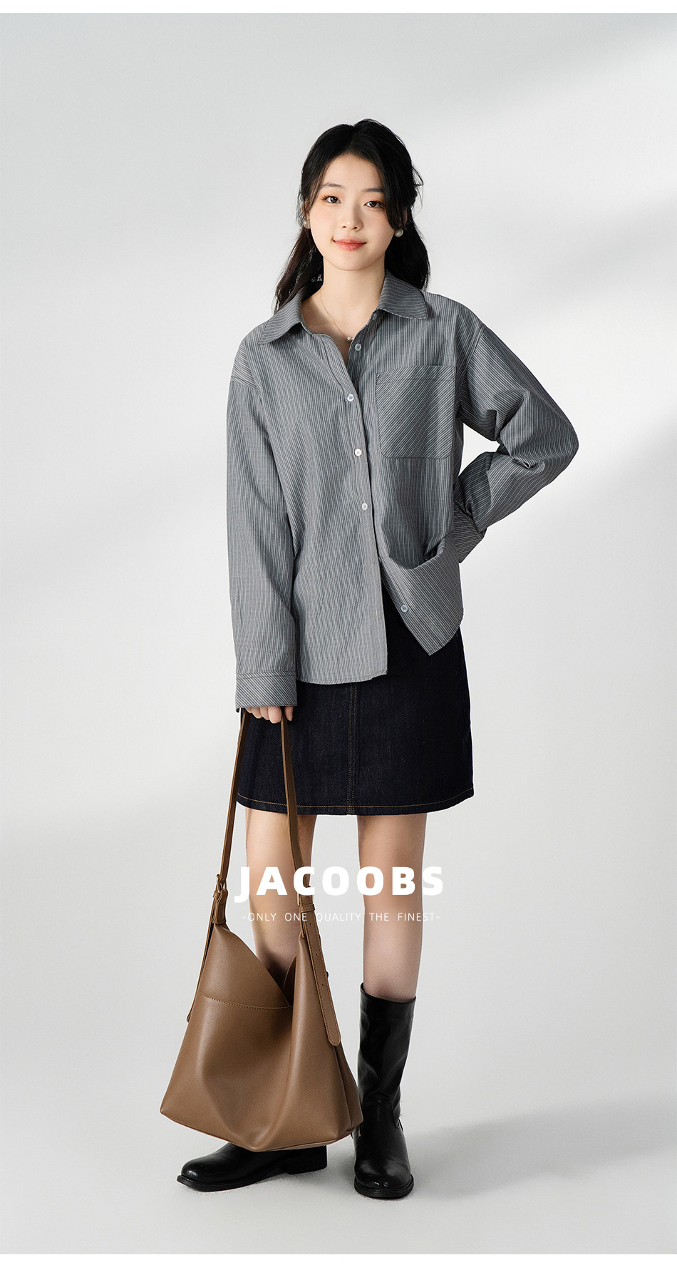 블루 스트라이프 셔츠 여성의 봄과 가을 디자인 센스 틈새 OL 전문 통근자 스택 셔츠 디자인 감각스토어 가기