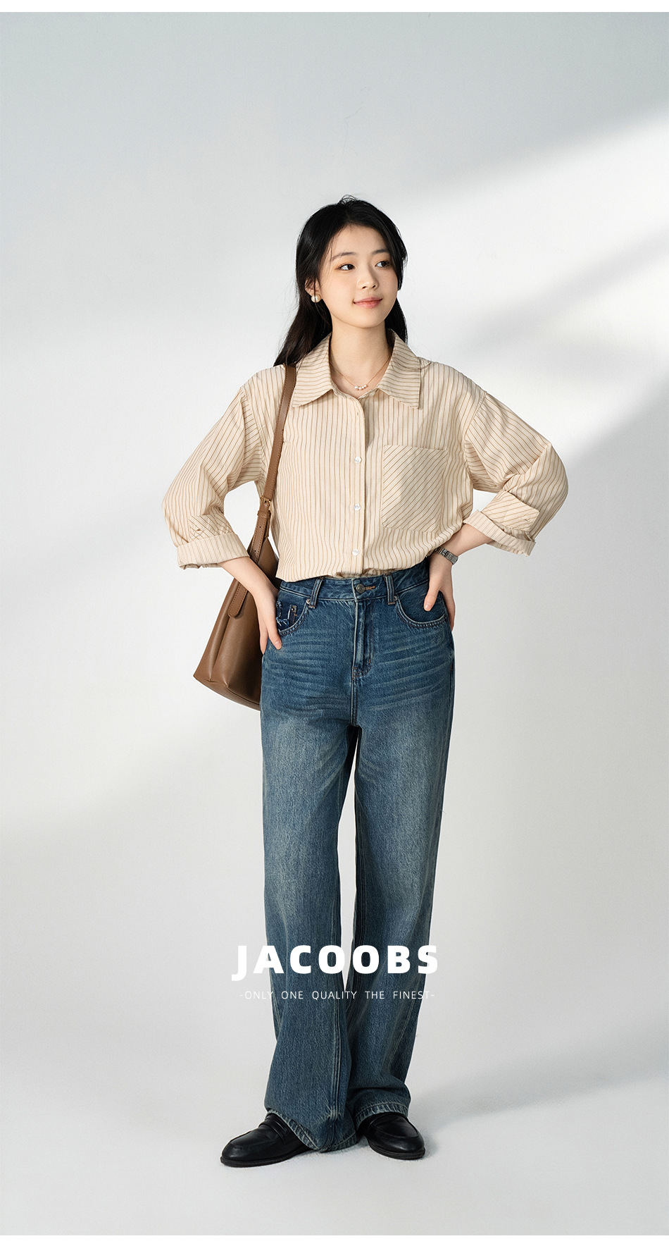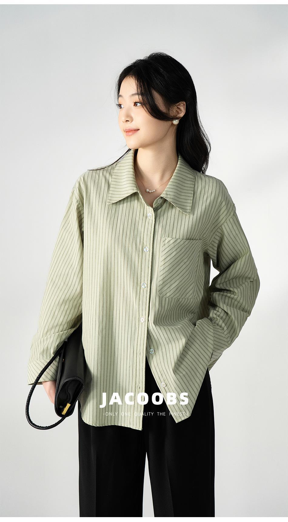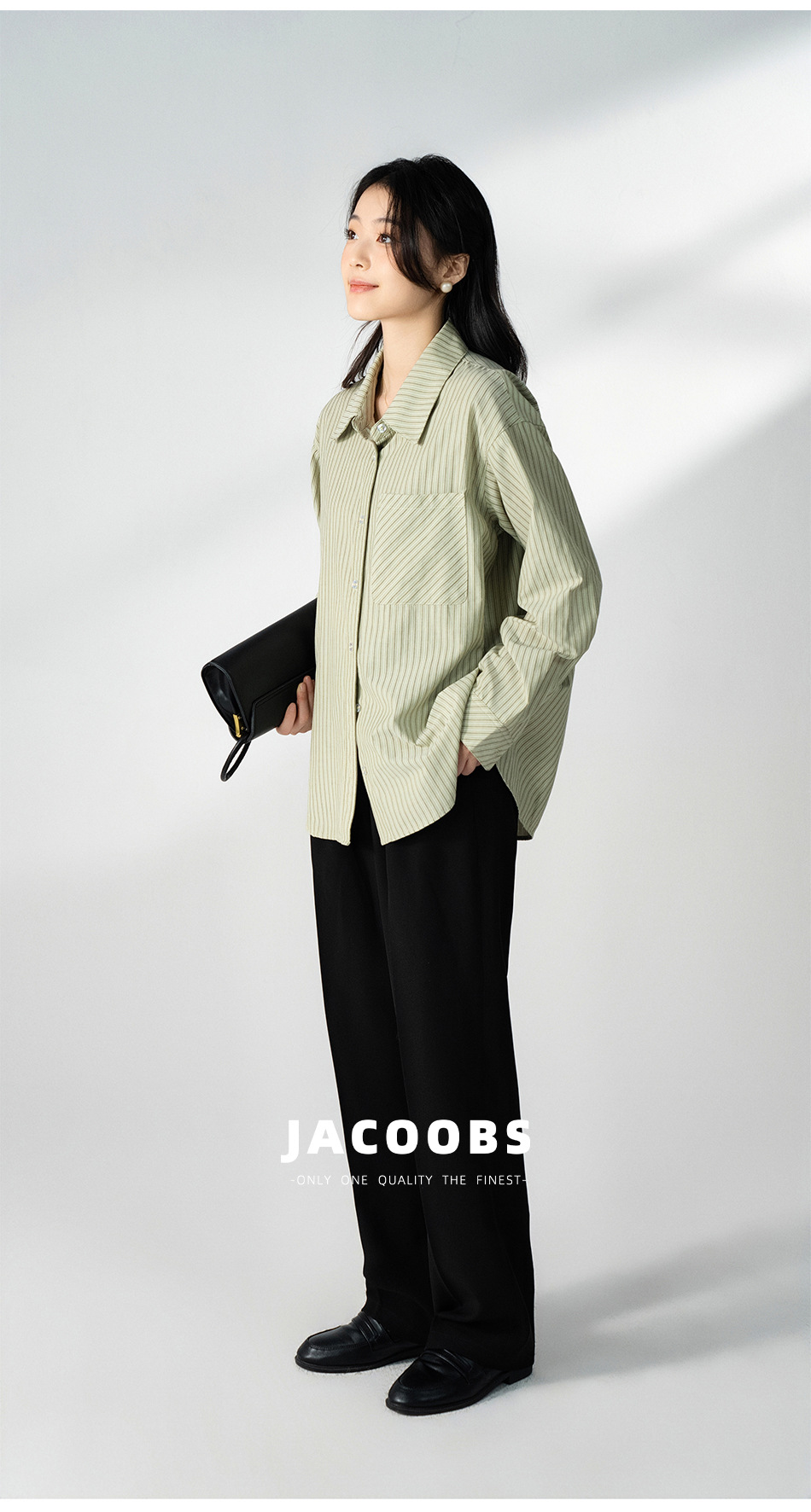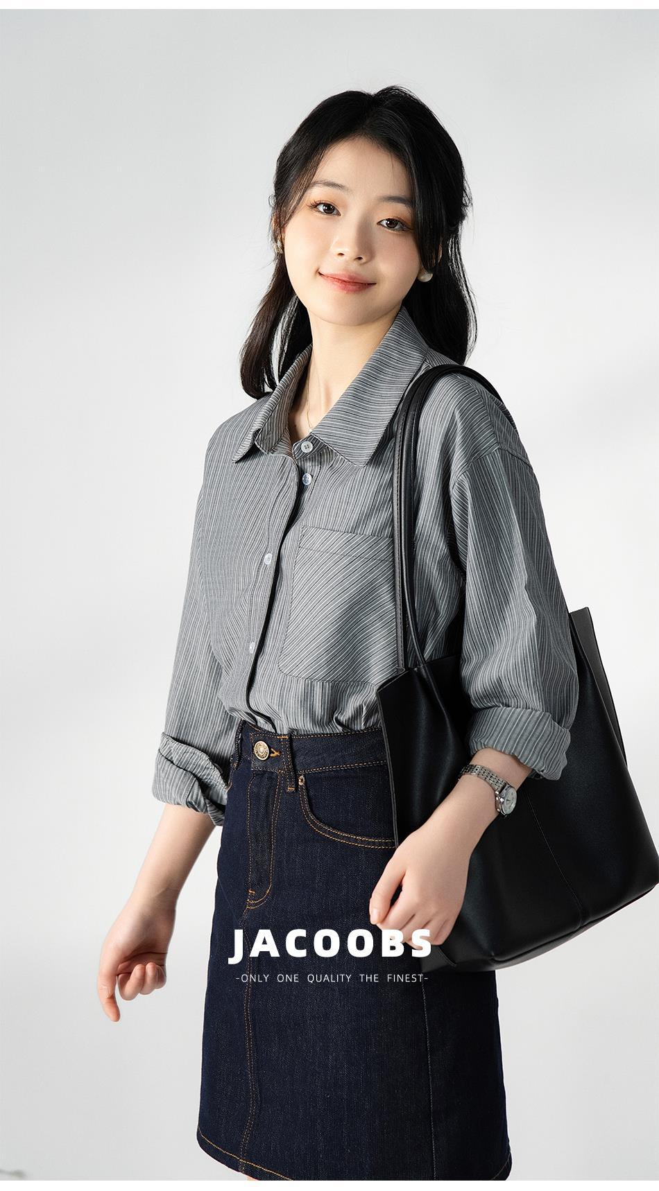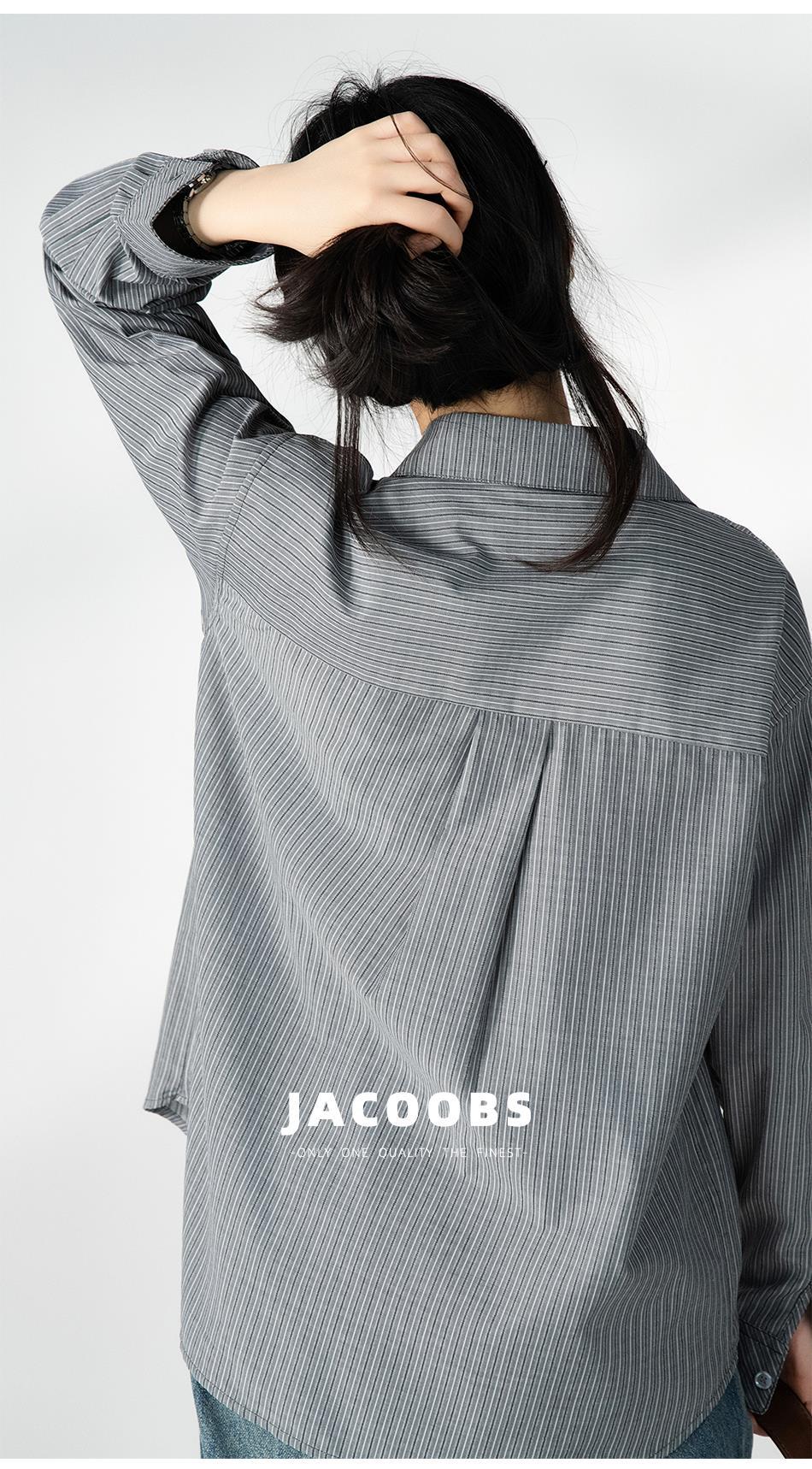 블루 스트라이프 셔츠 여성의 봄과 가을 디자인 센스 틈새 OL 전문 통근자 스택 셔츠 디자인 감각스토어 가기