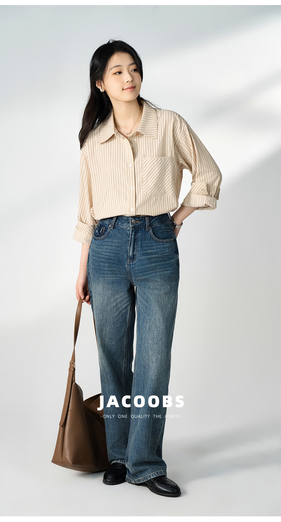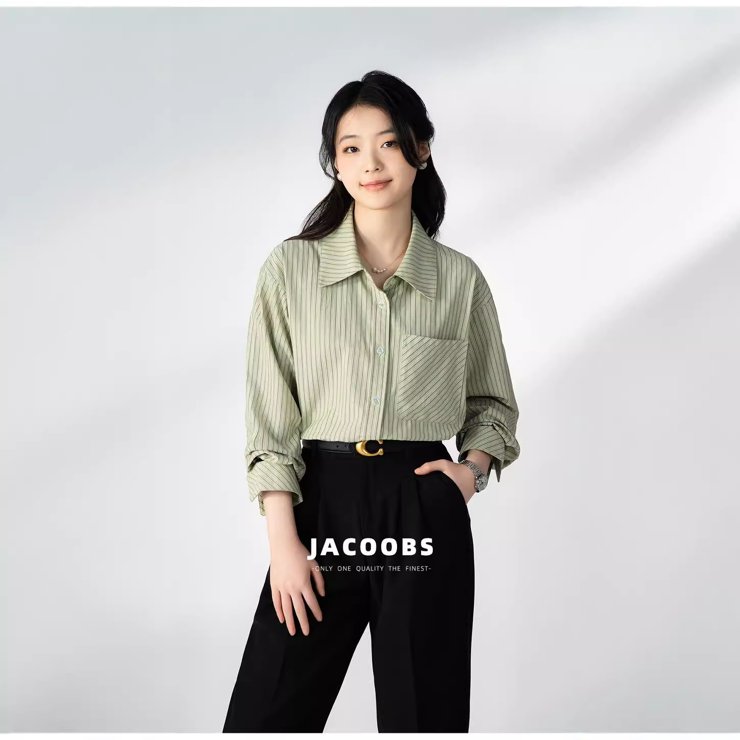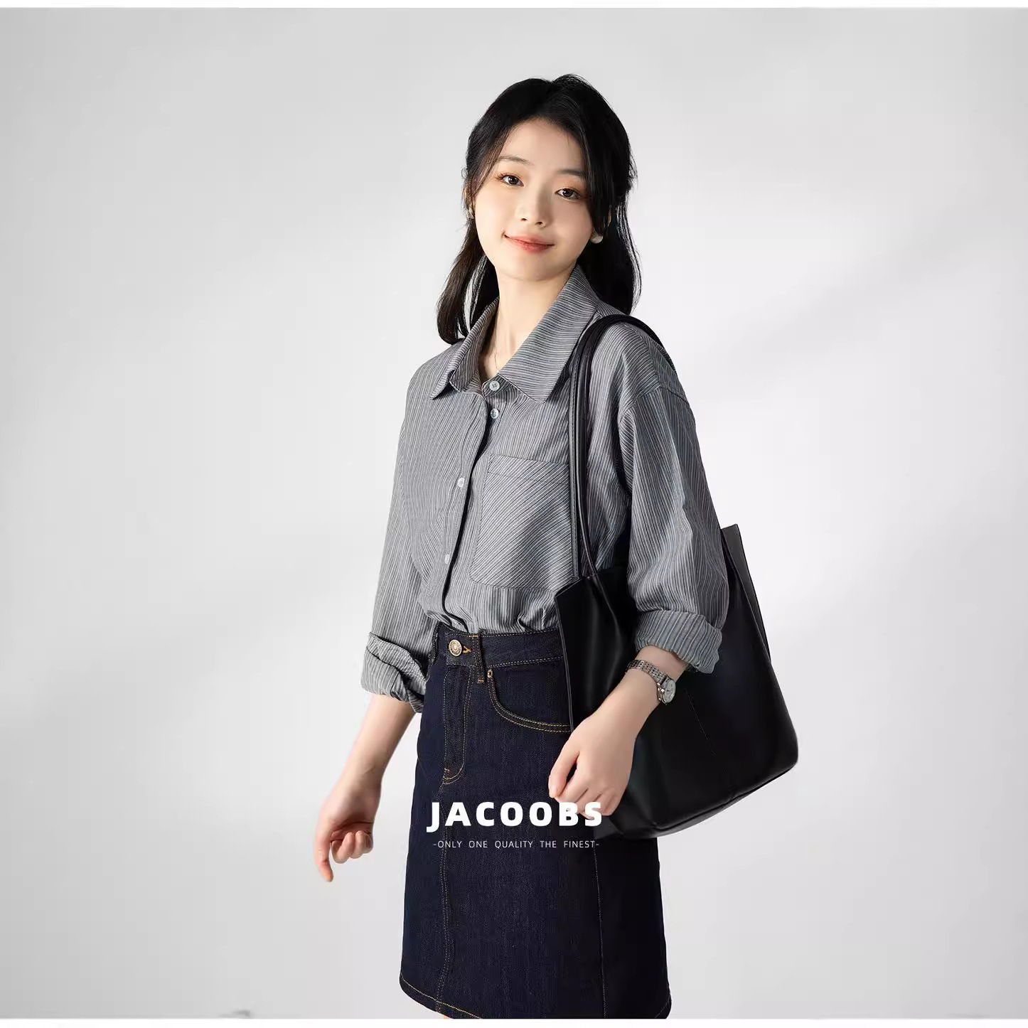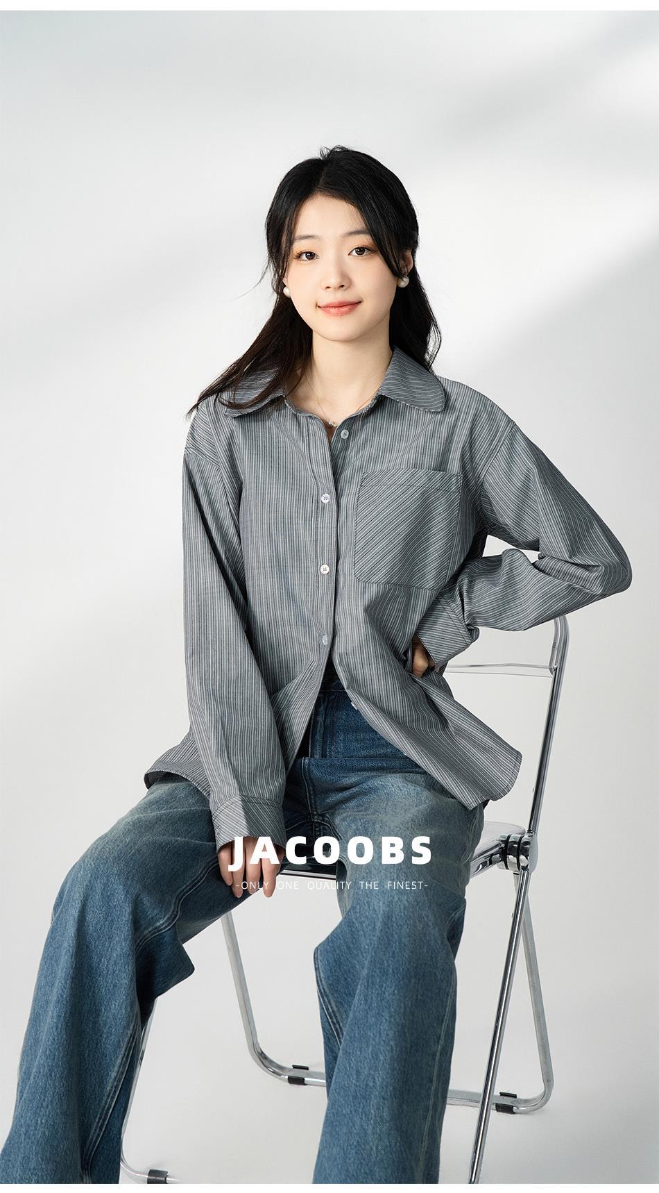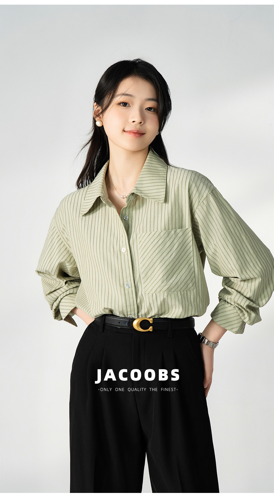 블루 스트라이프 셔츠 여성의 봄과 가을 디자인 센스 틈새 OL 전문 통근자 스택 셔츠 디자인 감각스토어 가기