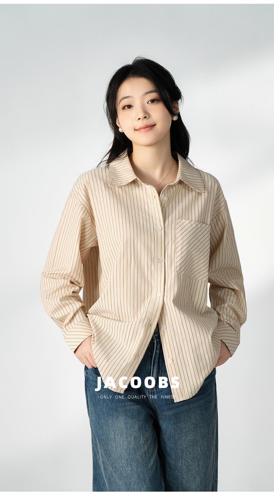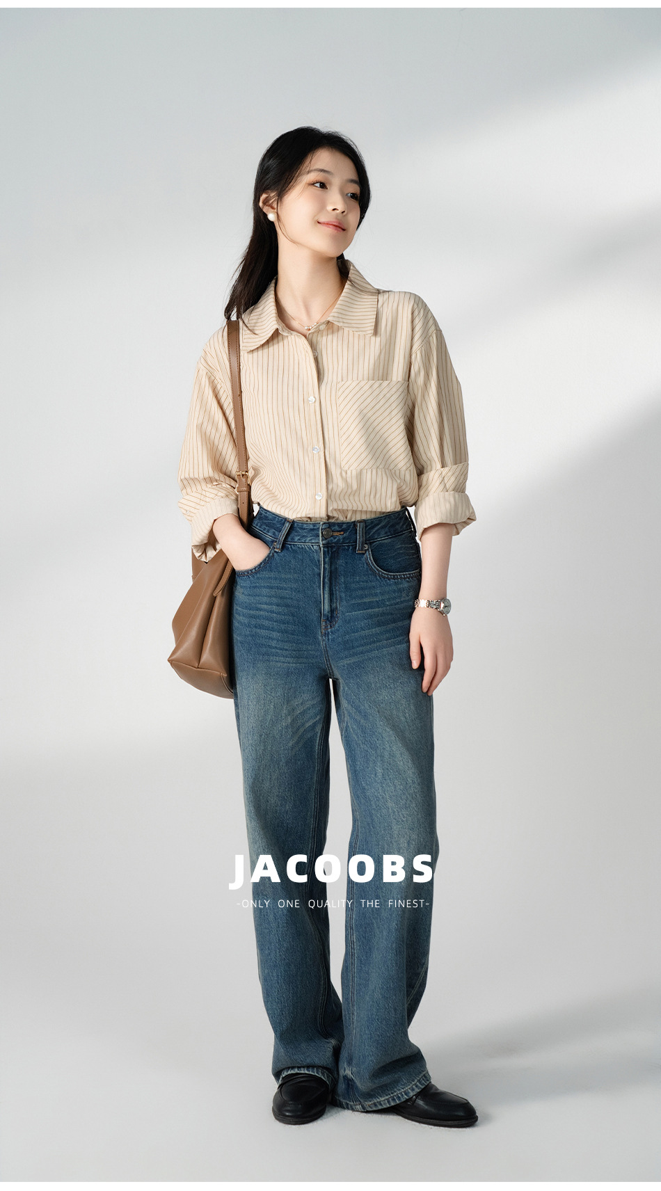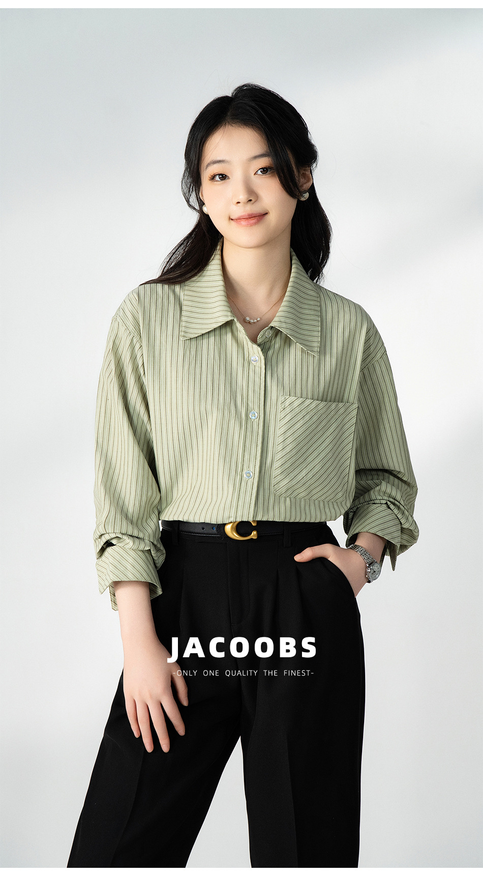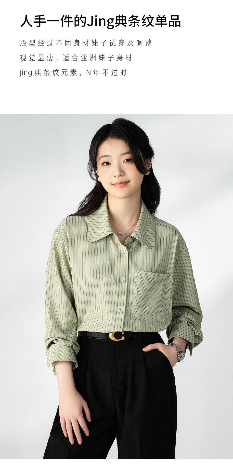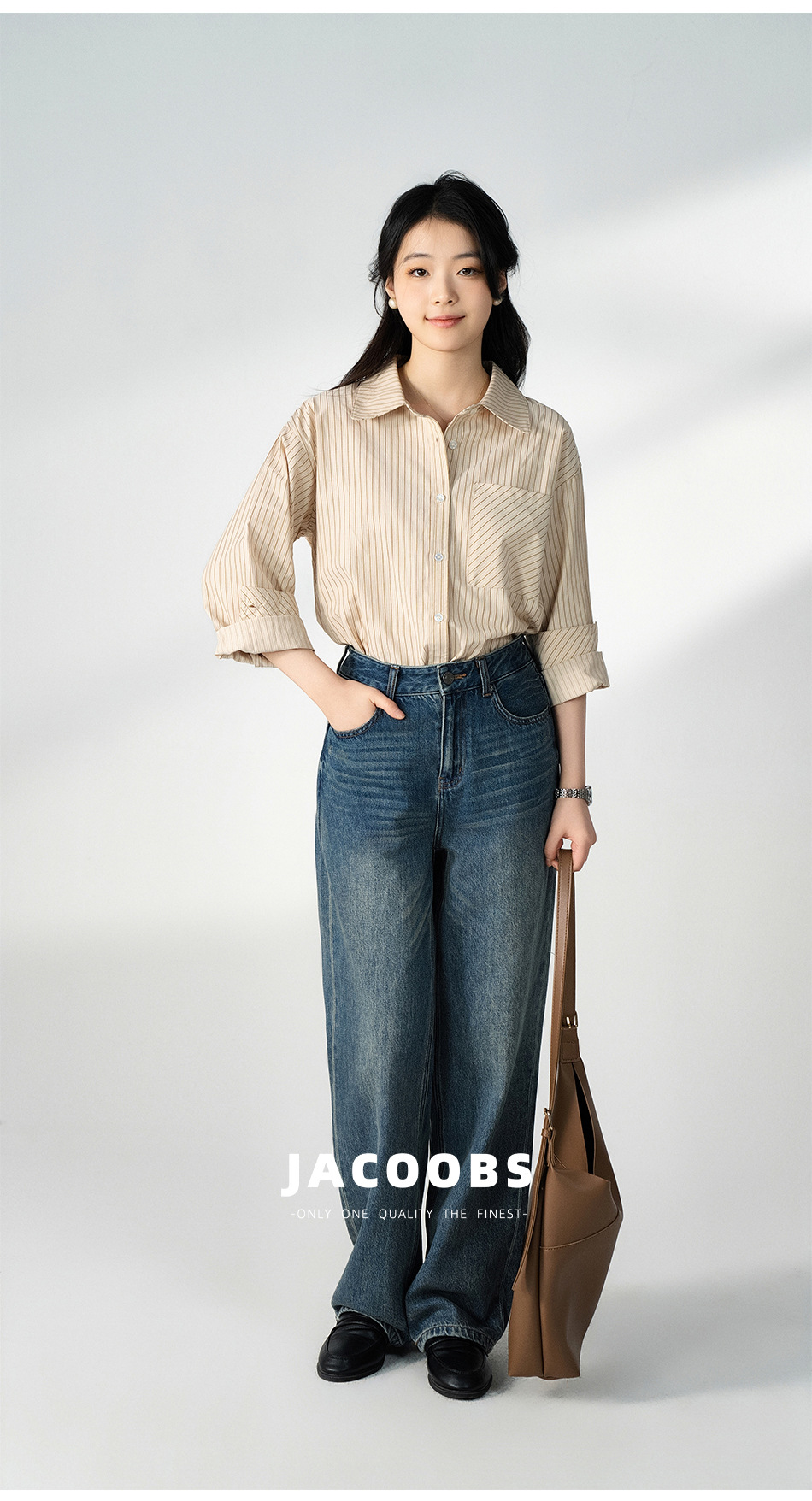 블루 스트라이프 셔츠 여성의 봄과 가을 디자인 센스 틈새 OL 전문 통근자 스택 셔츠 디자인 감각스토어 가기