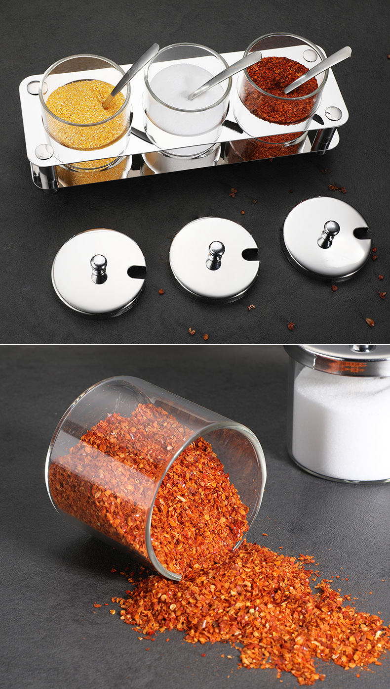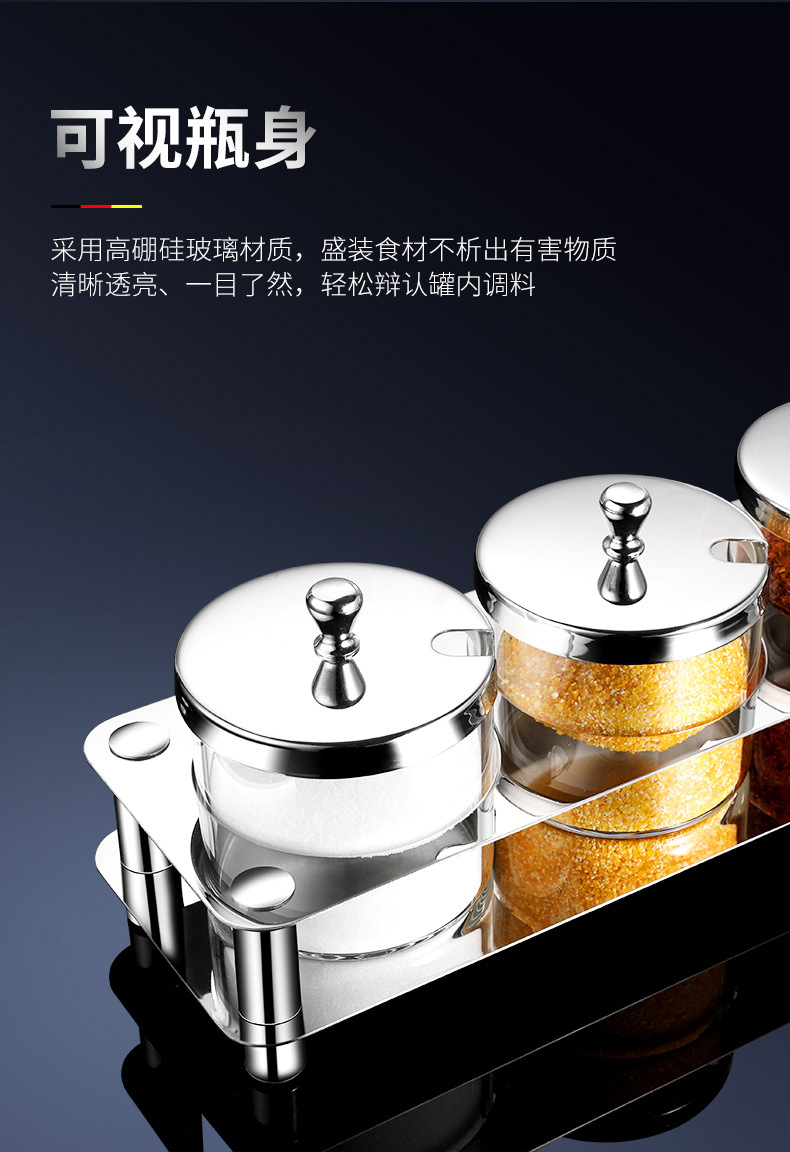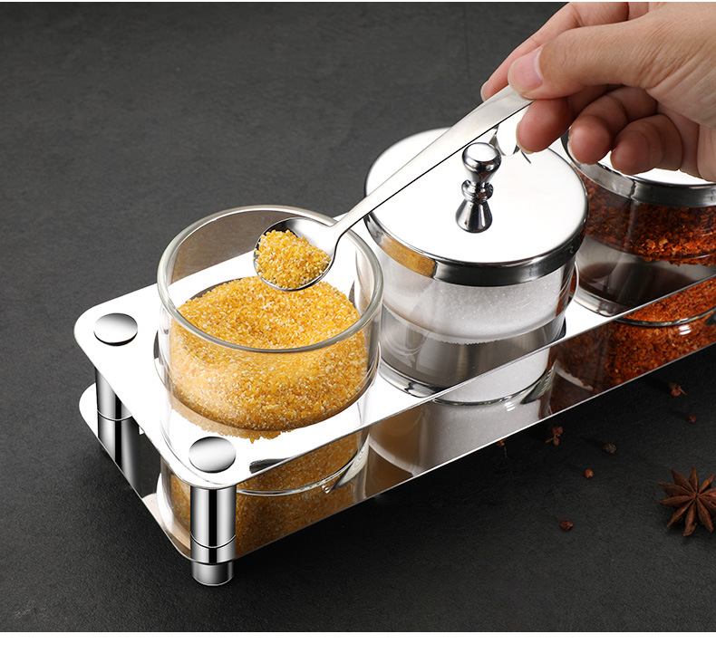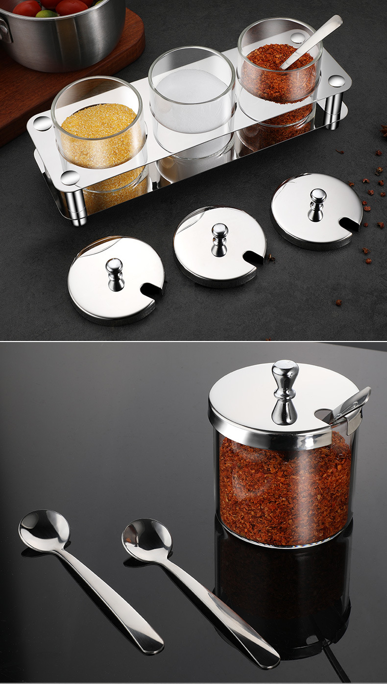Orledo 304 스테인레스 스틸 조미료 항아리 가정용 소금 항아리 유리 조미료 항아리 주방 양념 상자 세트 조합
