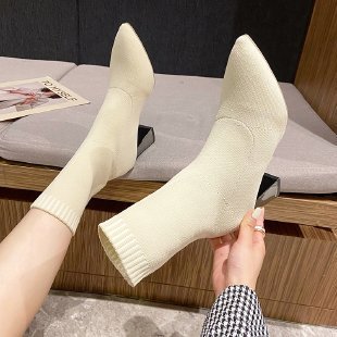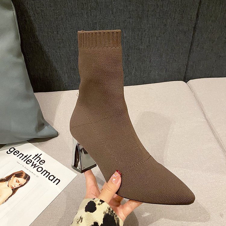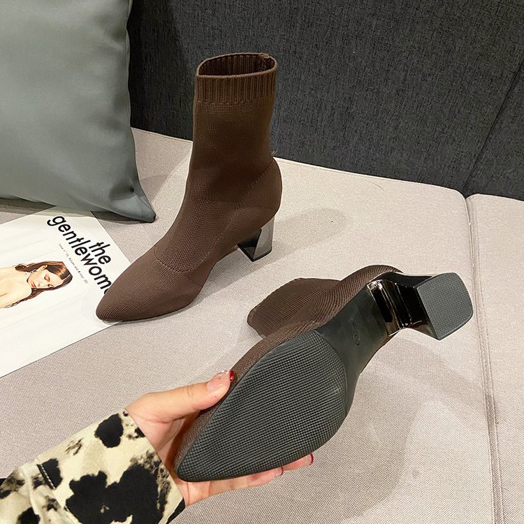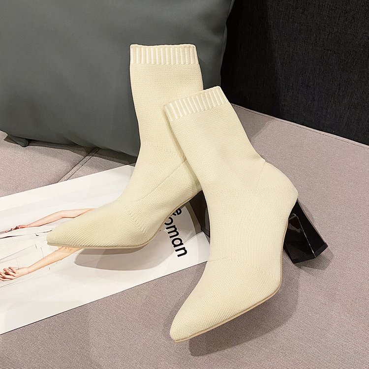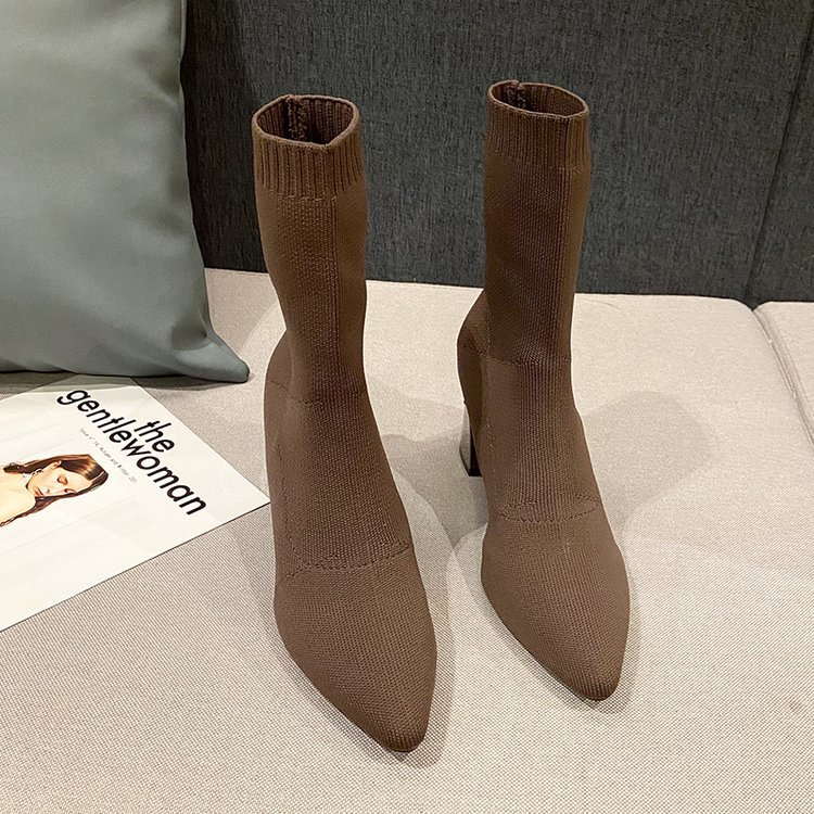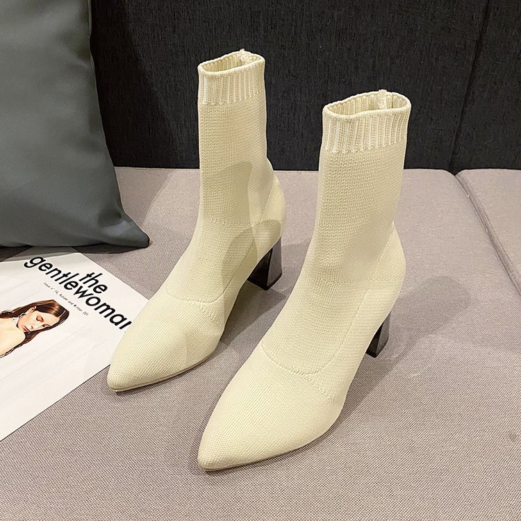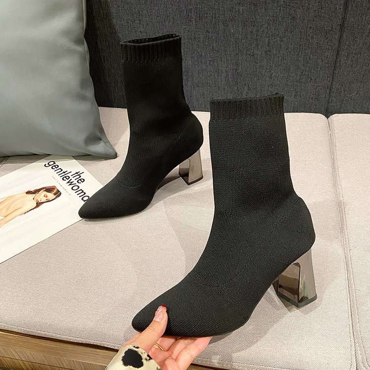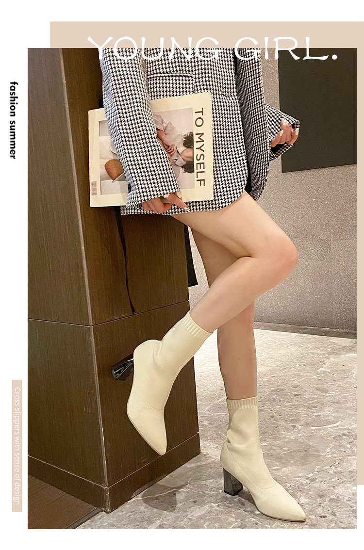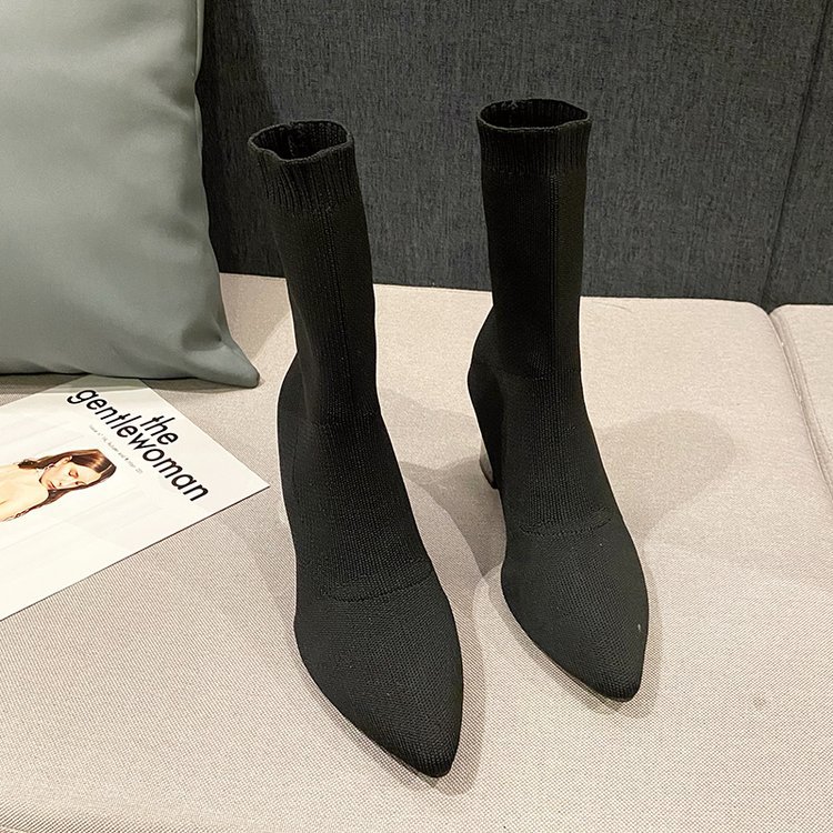 니트 탄성 양말 부츠 여성 짧은 부츠 2024 새로운 플러스 사이즈 뾰족한 두꺼운 힐 하이힐 얇은 부츠 마틴 부츠 조수스토어 가기