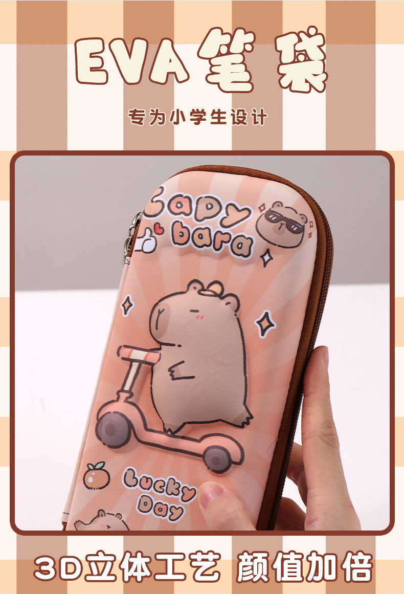 Capibala 3D 스테레오 문구 케이스 EVA 방수 만화 학생 Capybara 연필 케이스 대용량 다기능 연필 케이스