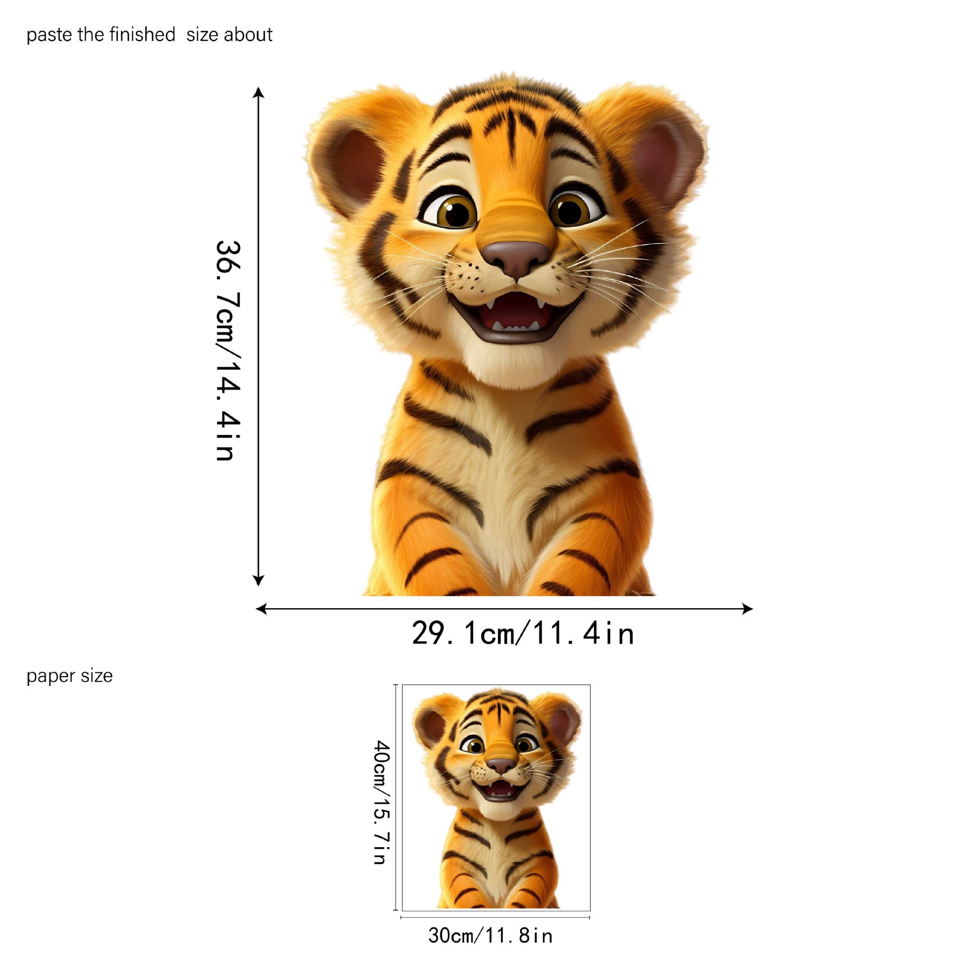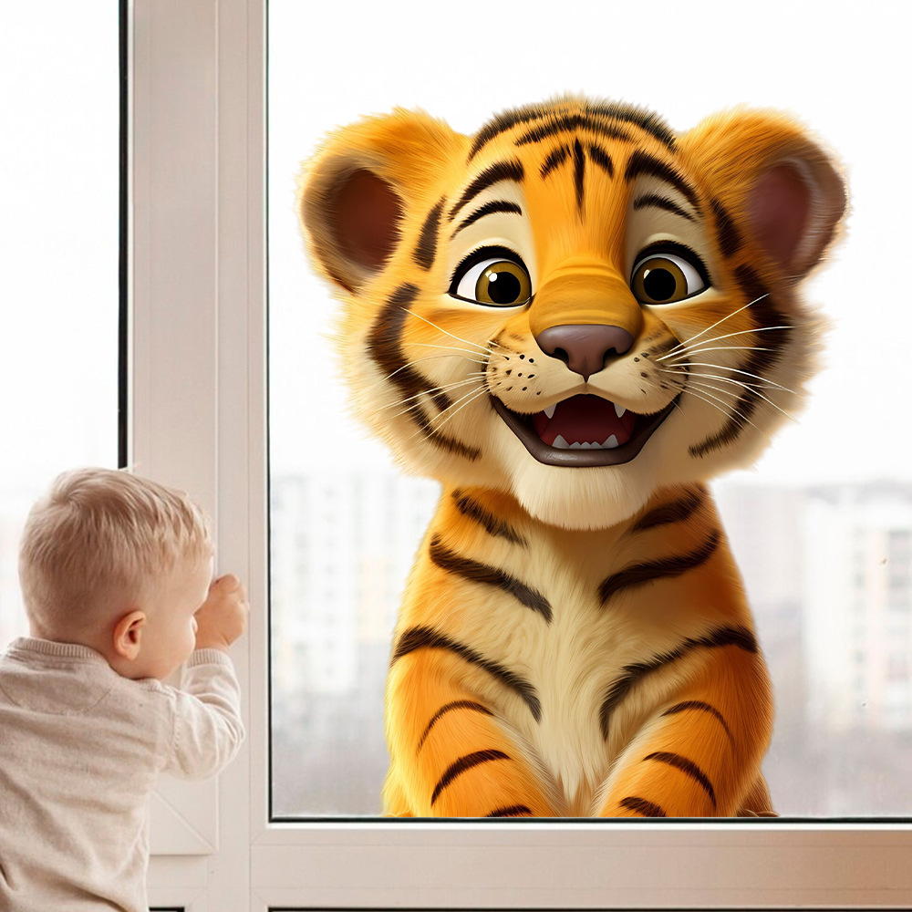 Yiyao JD3405 귀여운 호랑이 장식 유리 창 스티커 침실 문 및 창 배경 미화 접착제가없는 정전기 스티커스토어 가기