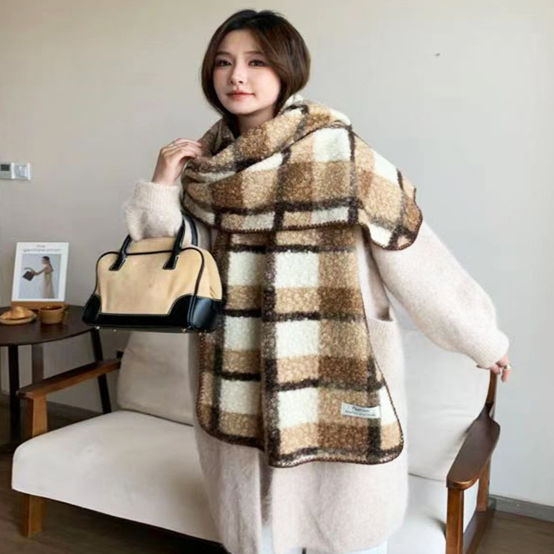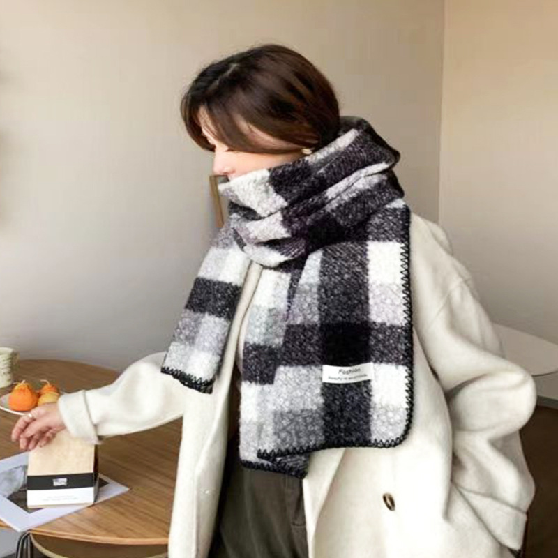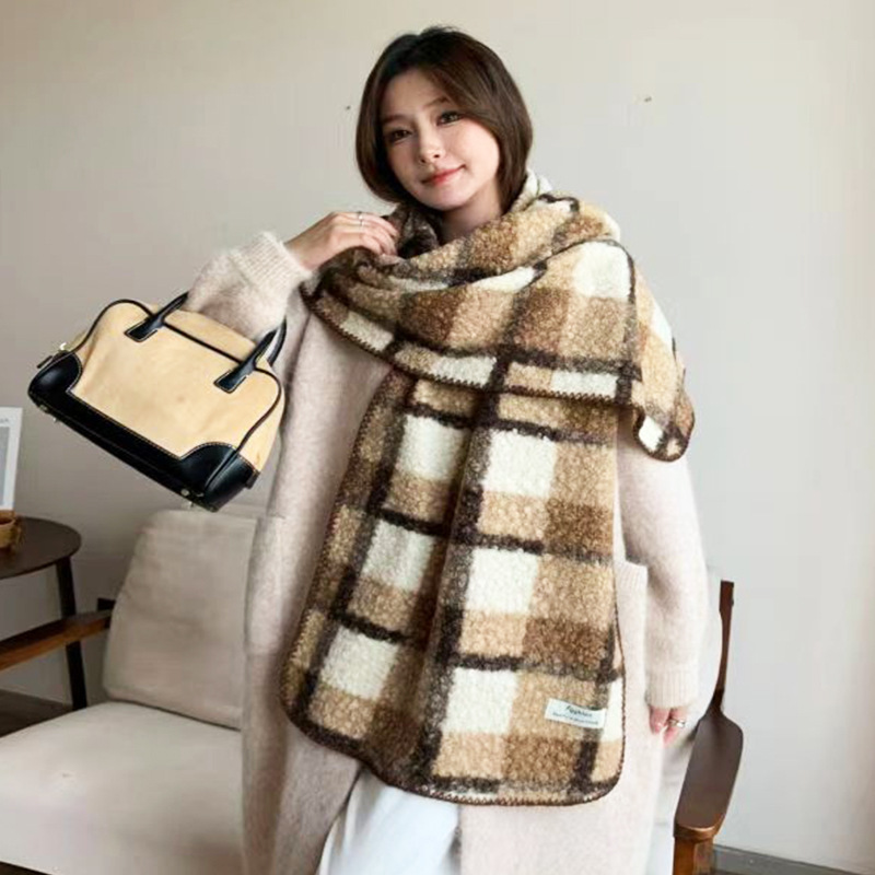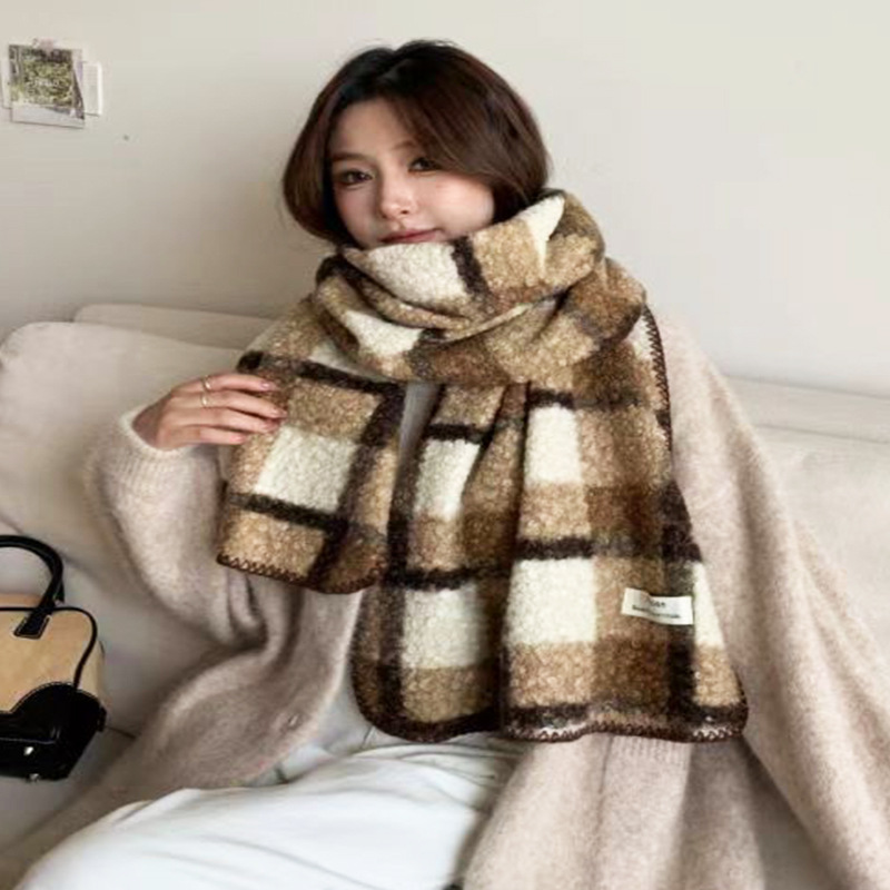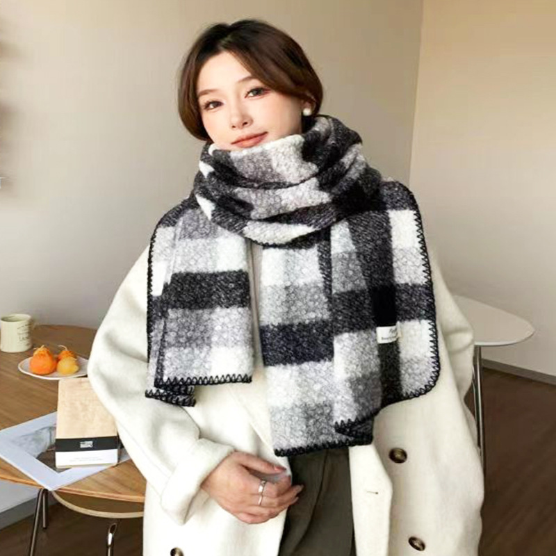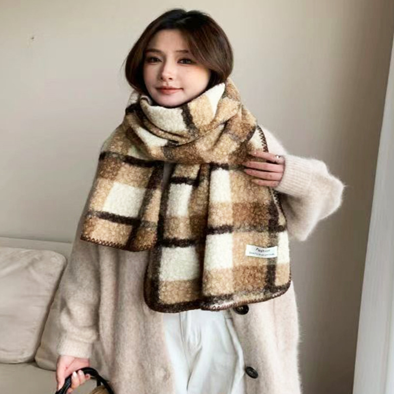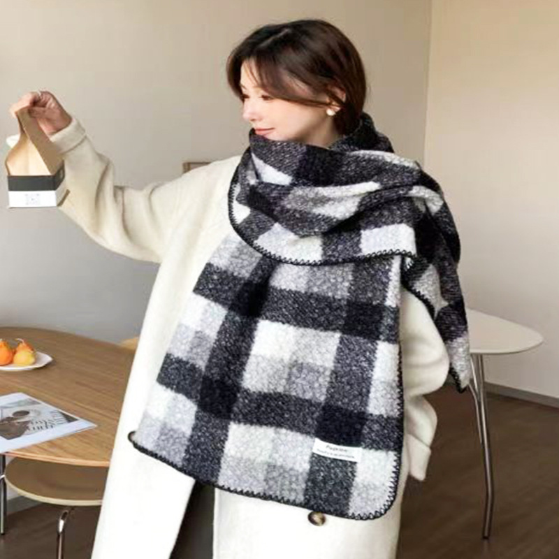 2024 새로운 여성 니트 스카프 가을과 겨울 고급 올 매치 새로운 스타일 스카프 패션 격자 무늬 따뜻한 목도리 여성스토어 가기