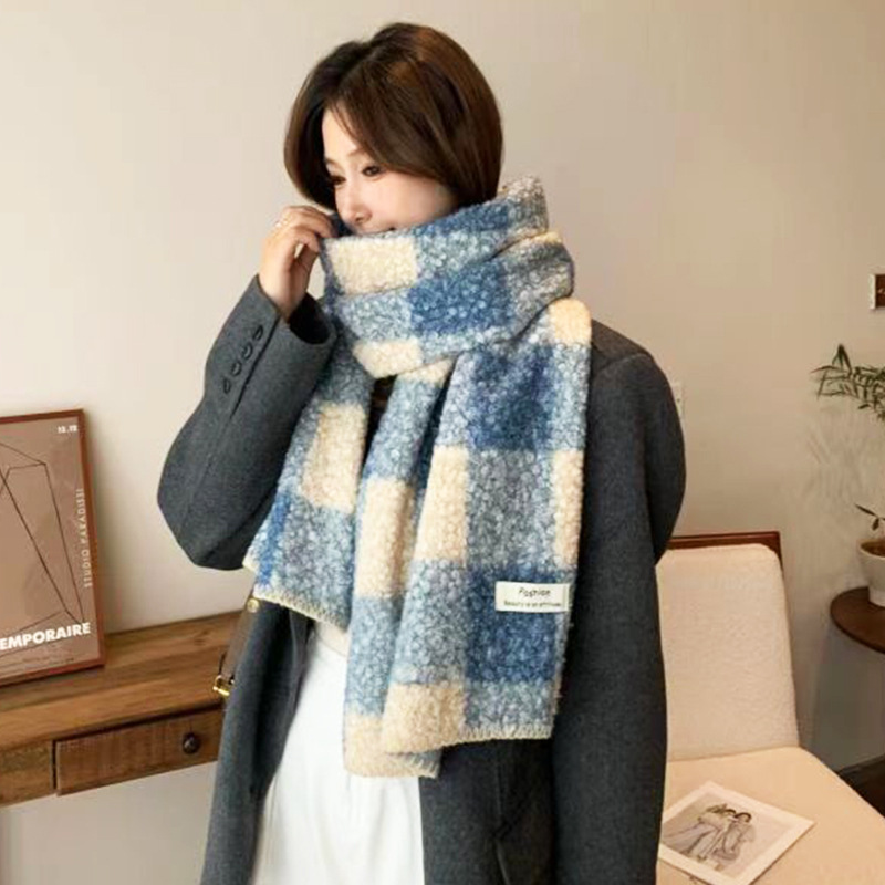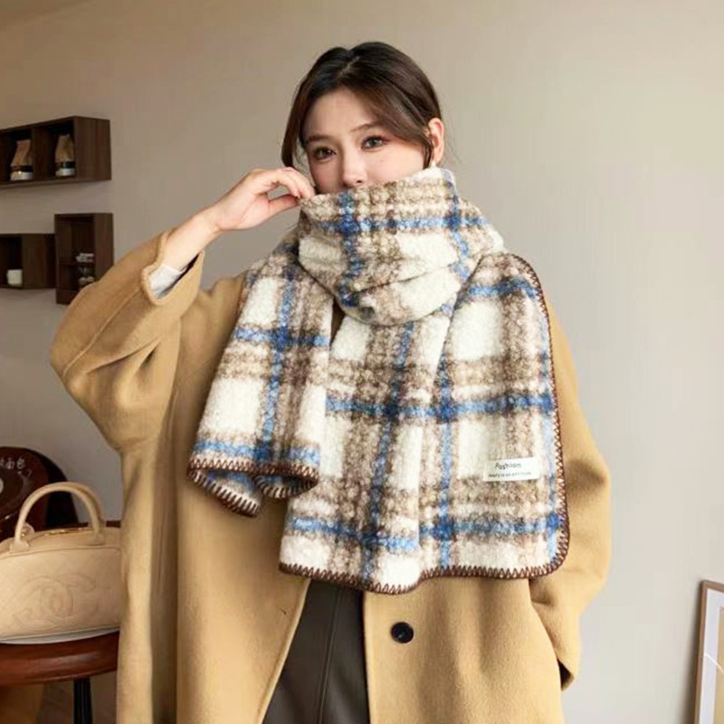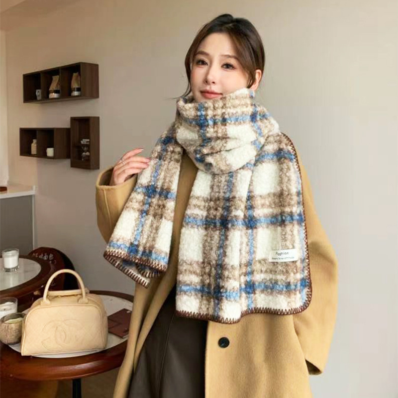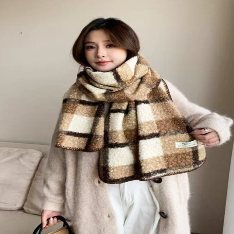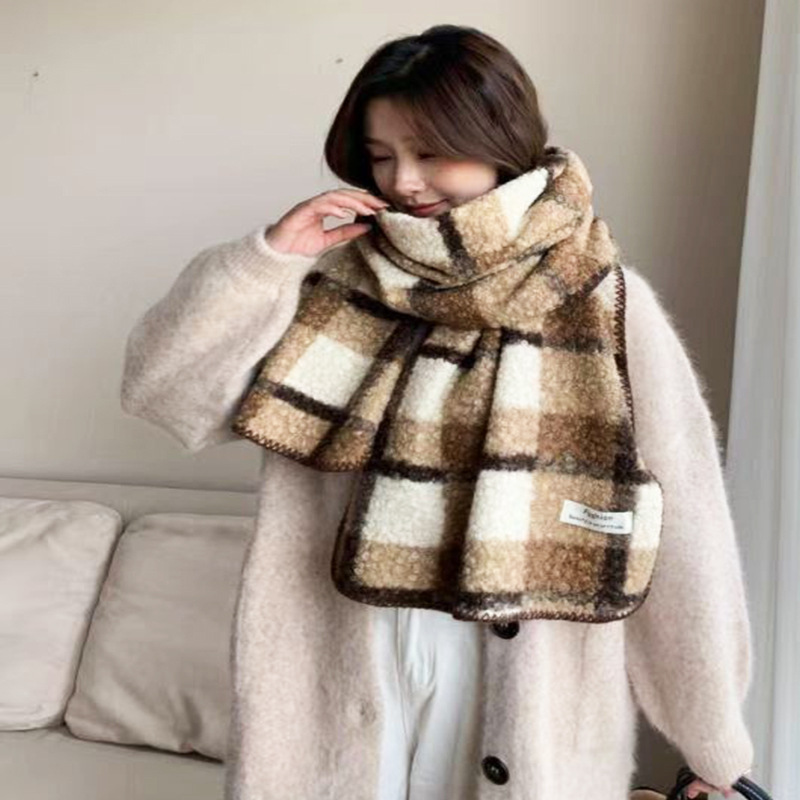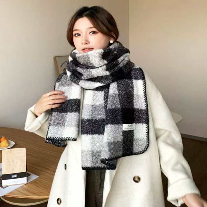 2024 새로운 여성 니트 스카프 가을과 겨울 고급 올 매치 새로운 스타일 스카프 패션 격자 무늬 따뜻한 목도리 여성스토어 가기
