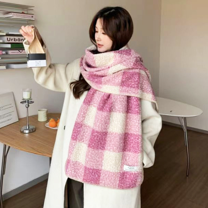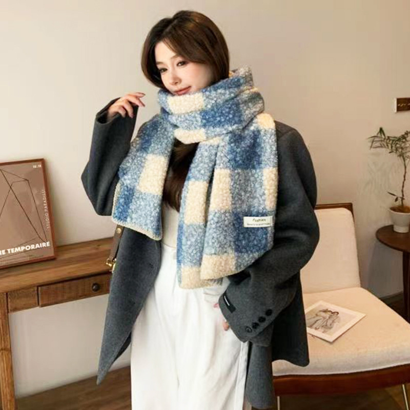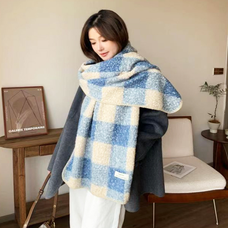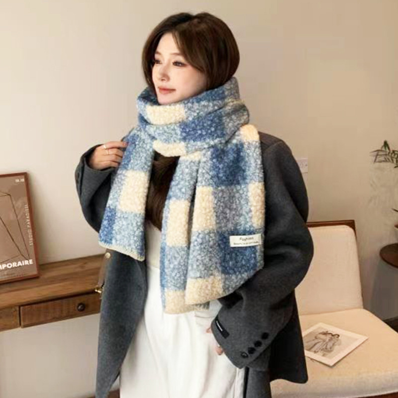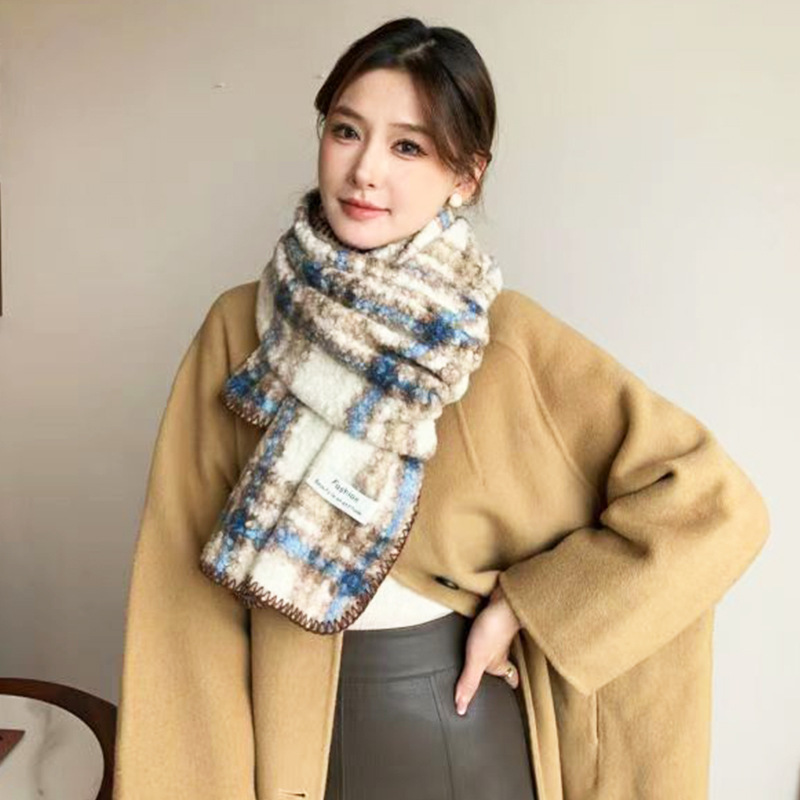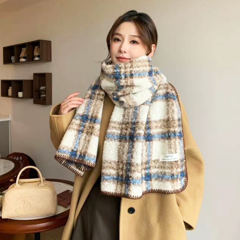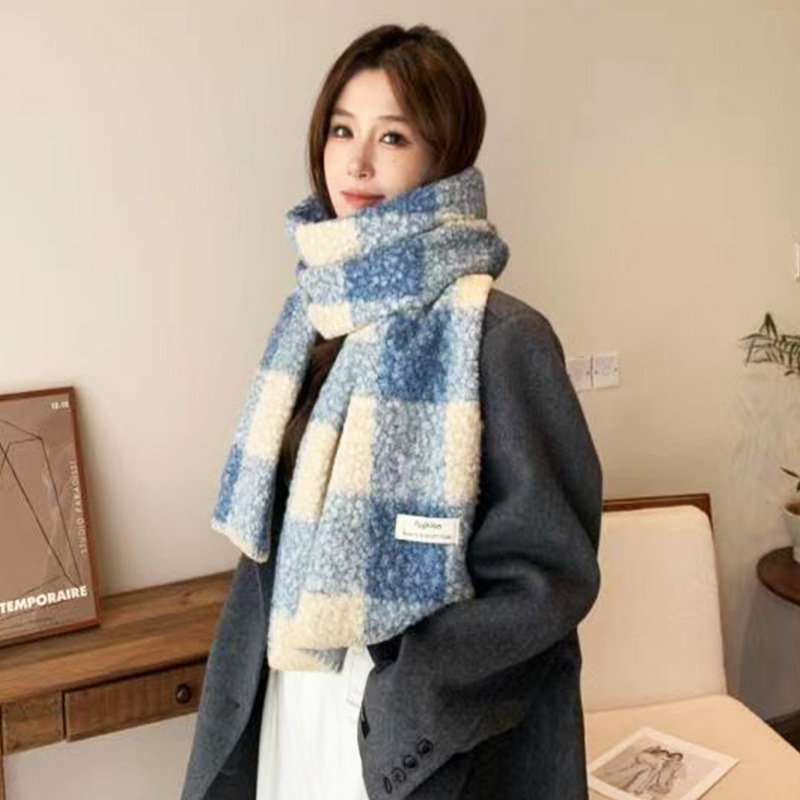 2024 새로운 여성 니트 스카프 가을과 겨울 고급 올 매치 새로운 스타일 스카프 패션 격자 무늬 따뜻한 목도리 여성스토어 가기