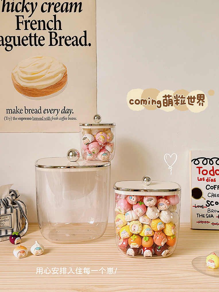 귀여운 곡물 저장 항아리 미니 버블 메이트 핸드 디스플레이 박스 작은 장식품 블라인드 박스 디스플레이 랙 저장 상자 봉인스토어 가기