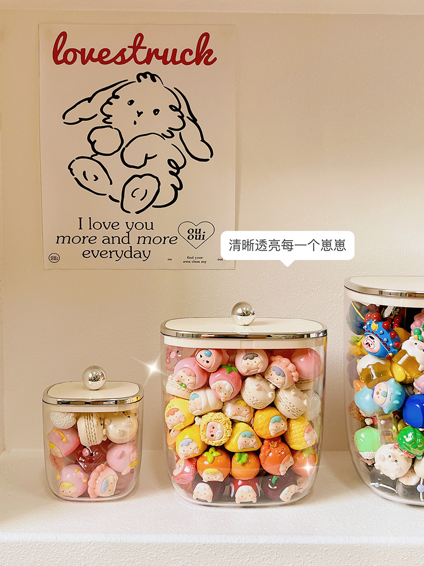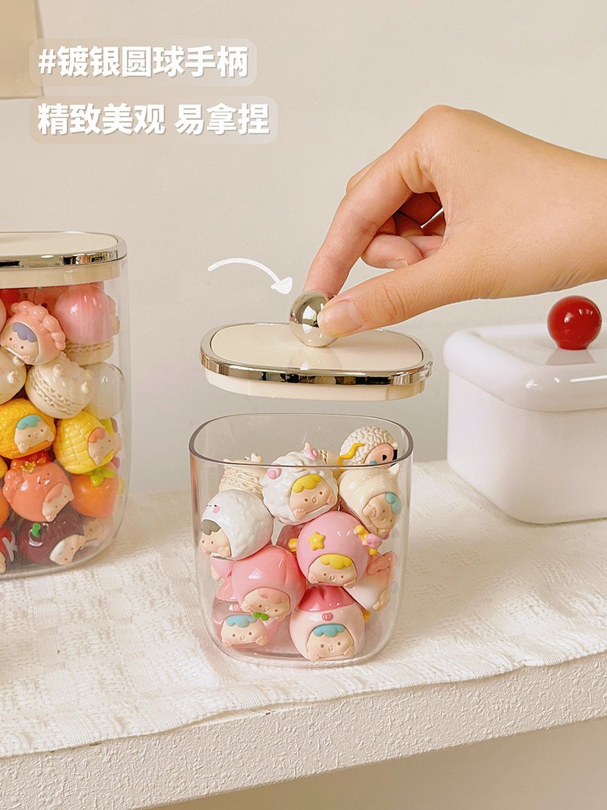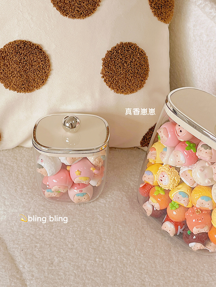귀여운 곡물 저장 항아리 미니 버블 메이트 핸드 디스플레이 박스 작은 장식품 블라인드 박스 디스플레이 랙 저장 상자 봉인