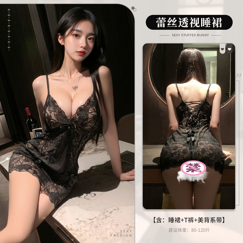 남자 연기 란제리 섹시한 관점 툴레 패션 딥 V 백리스 레트로 레이스 슬링 나이트 가운 9743