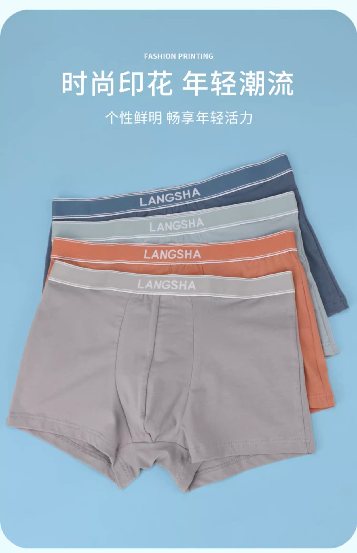 Longsha 스트레치 코튼 단색 속옷 허리 피부 친화적 인 항균 플랫 바지 편안한 통기성 박스 바지