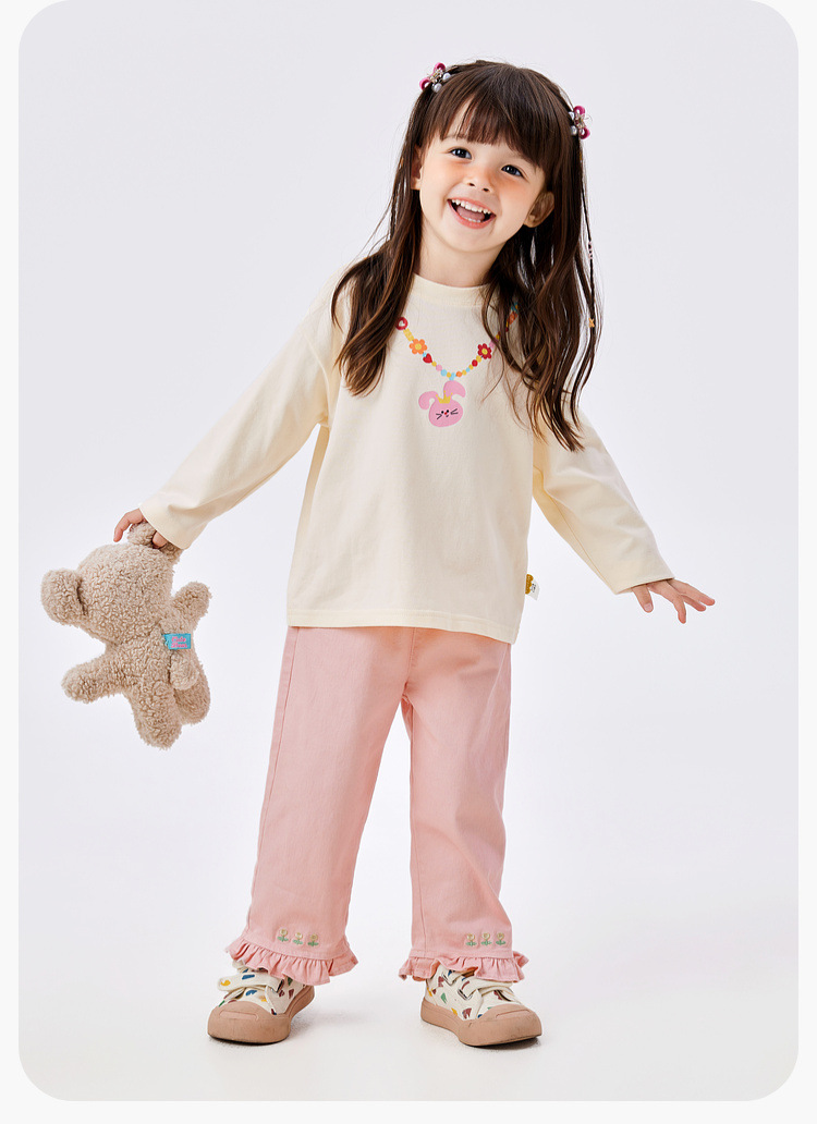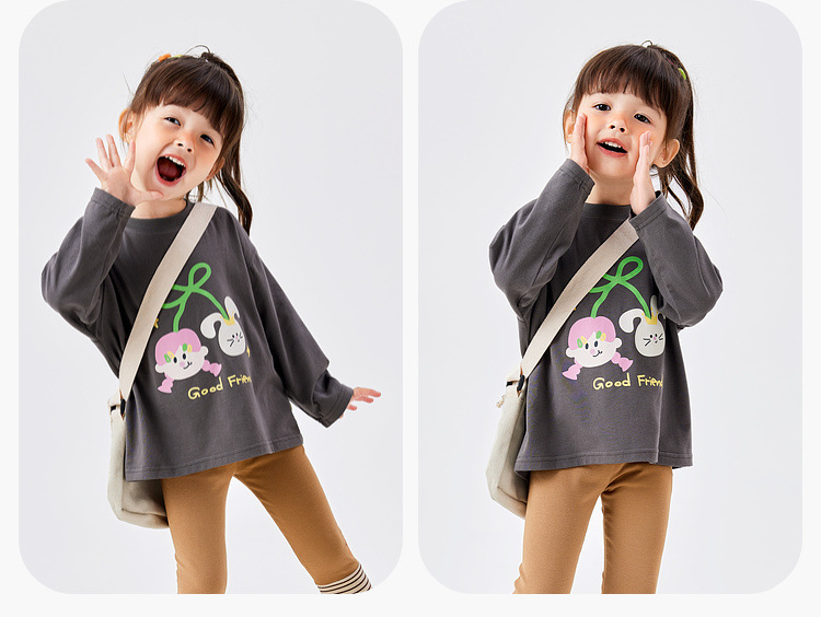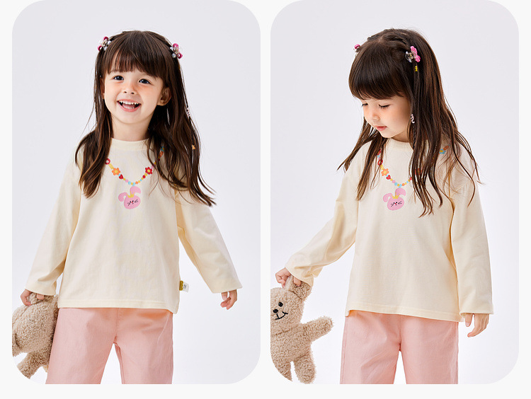 두두가족 여아 긴팔 티셔츠 봄 여아 베이스 레이어 봄옷 여아 티셔츠 달콤한 아동복 상의 트렌디스토어 가기