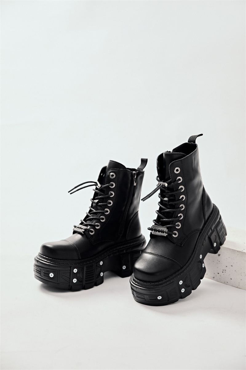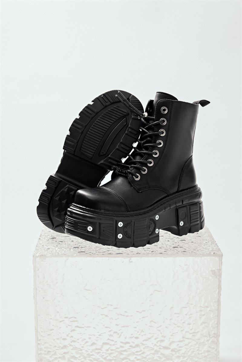 Ou Meite Dark Motorcycle, 중금속 두꺼운 밑창 크로스 보더 마틴 부츠 2024 봄 새로운 여성 펑크 가죽 신발
