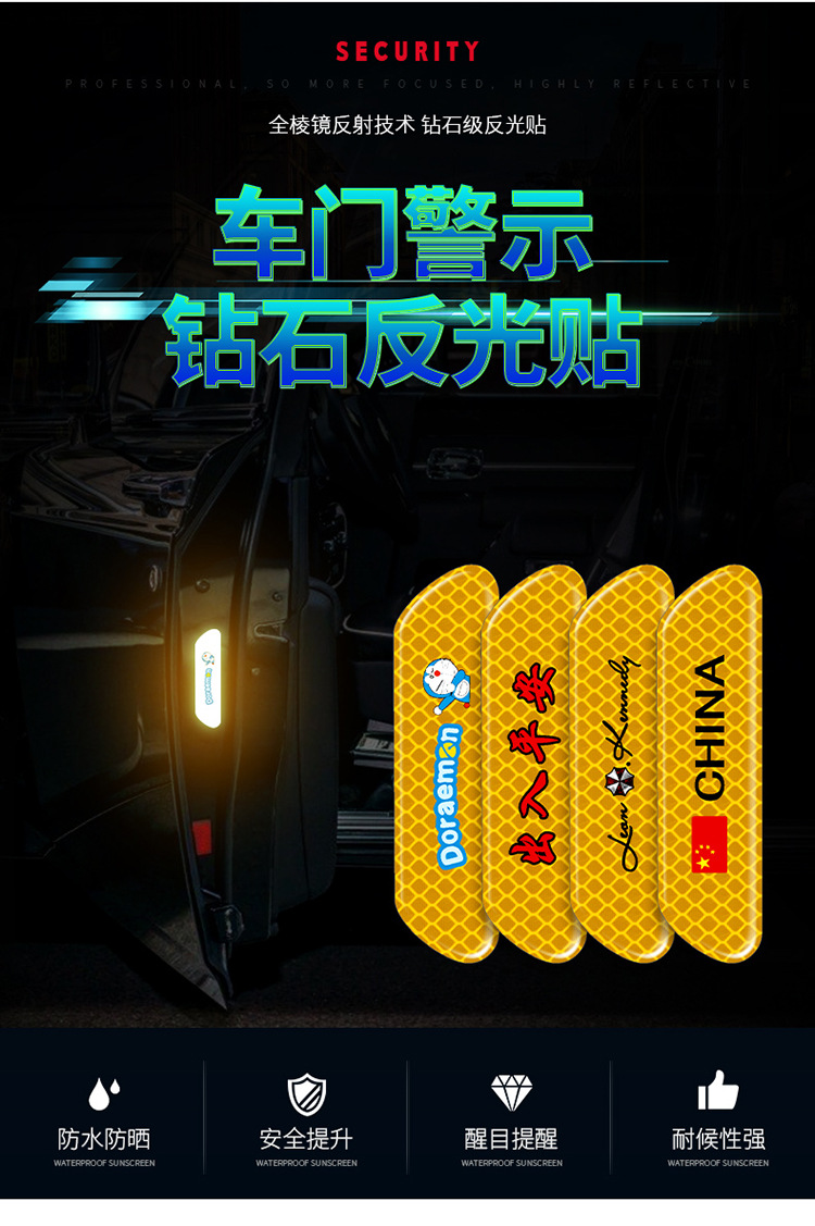 자동차 도어 오프닝 반사 스티커 오픈 도어 다이아몬드 등급 체크 무늬 접착제 야간 경고 충돌 방지 안전 형광 스티커스토어 가기