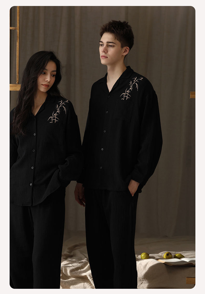 【A급 이중 거즈】커플 잠옷 중국풍 순면 외출 가능 남녀 홈웨어 세트 a 피부 친화적 가을 스타일