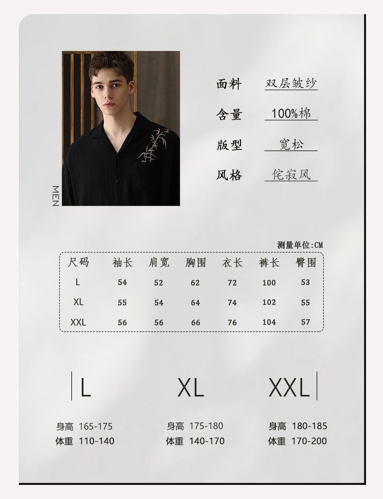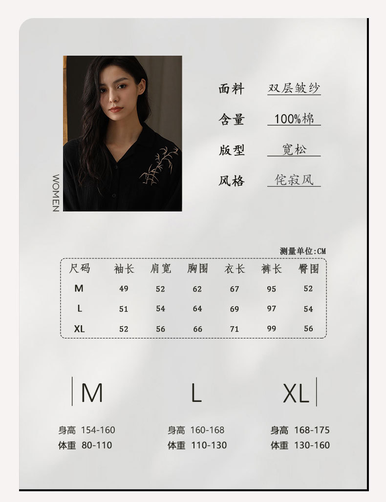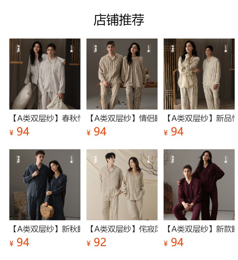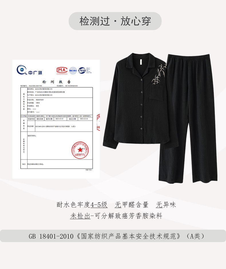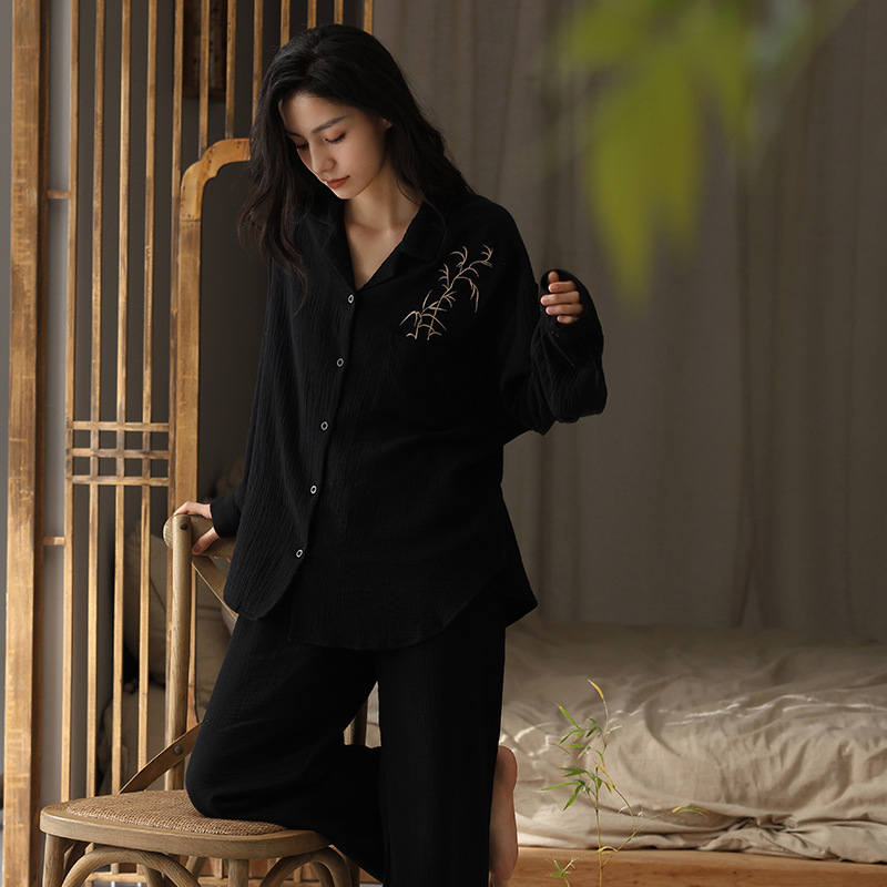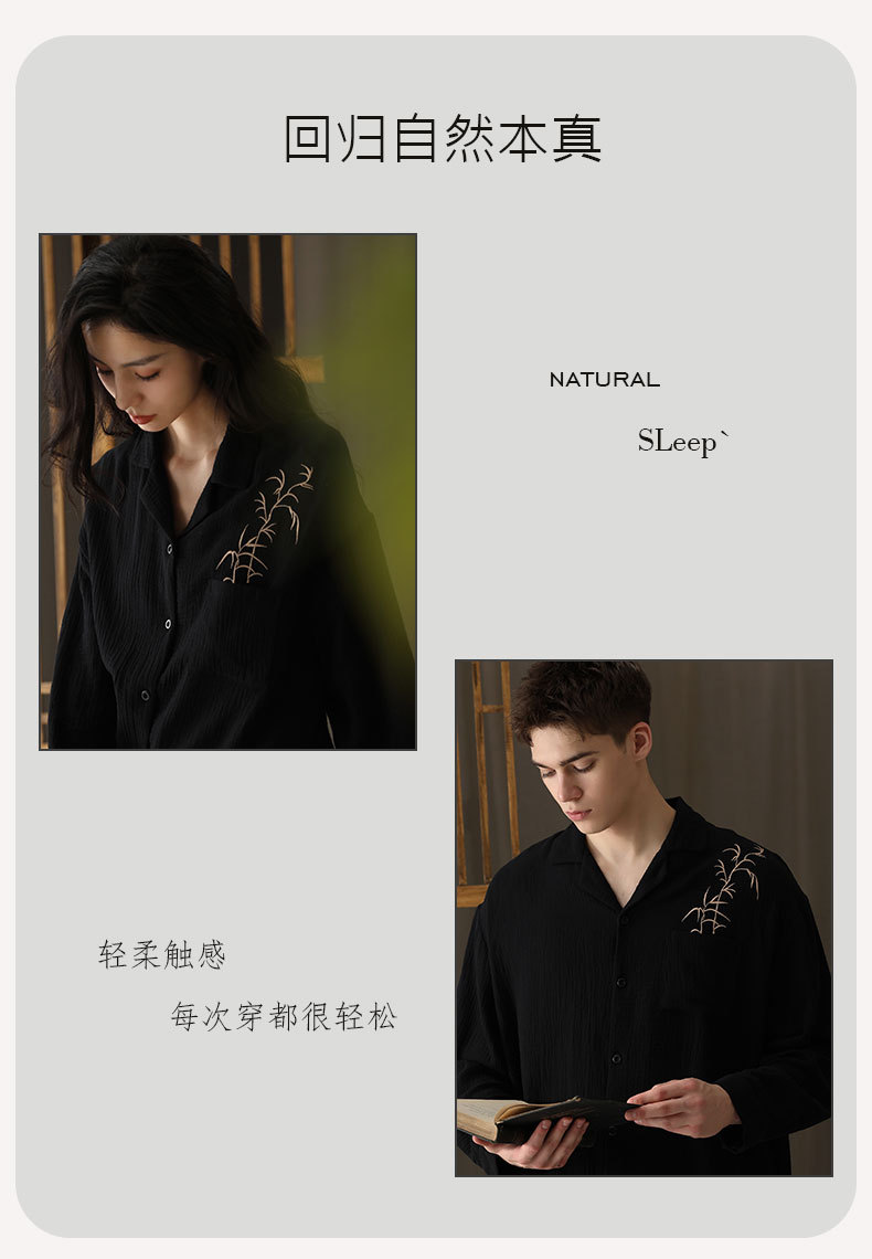 【A급 이중 거즈】커플 잠옷 중국풍 순면 외출 가능 남녀 홈웨어 세트 a 피부 친화적 가을 스타일스토어 가기
