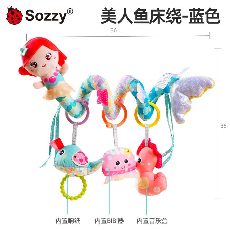탄산 신생아 아기 트롤리 크립 자동차 교수형 침대 펜던트 아기 인어 침대 주위에 손 딸랑이 침대 벨 플레이