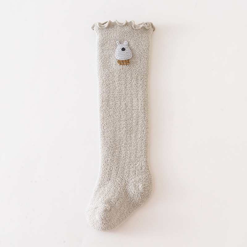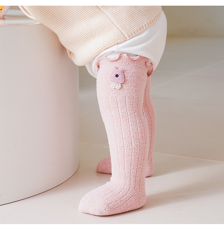 어린이 양말 가을과 겨울 기모 두꺼운 아기 무릎 따뜻한 양말 아기 신생아 만화 레이스 긴 허벅지 양말