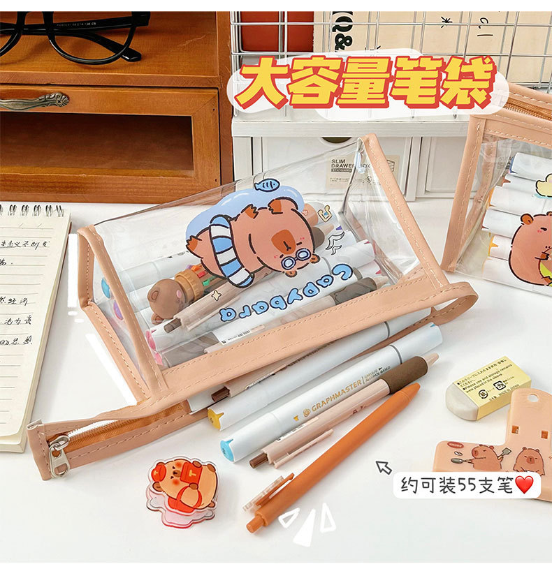 카피 발라 대용량 연필 케이스 만화 퍼퍼 돌고래 문구 가방 Instagram 스타일 투명 저장 가방 화장품 가방 문구 상자스토어 가기