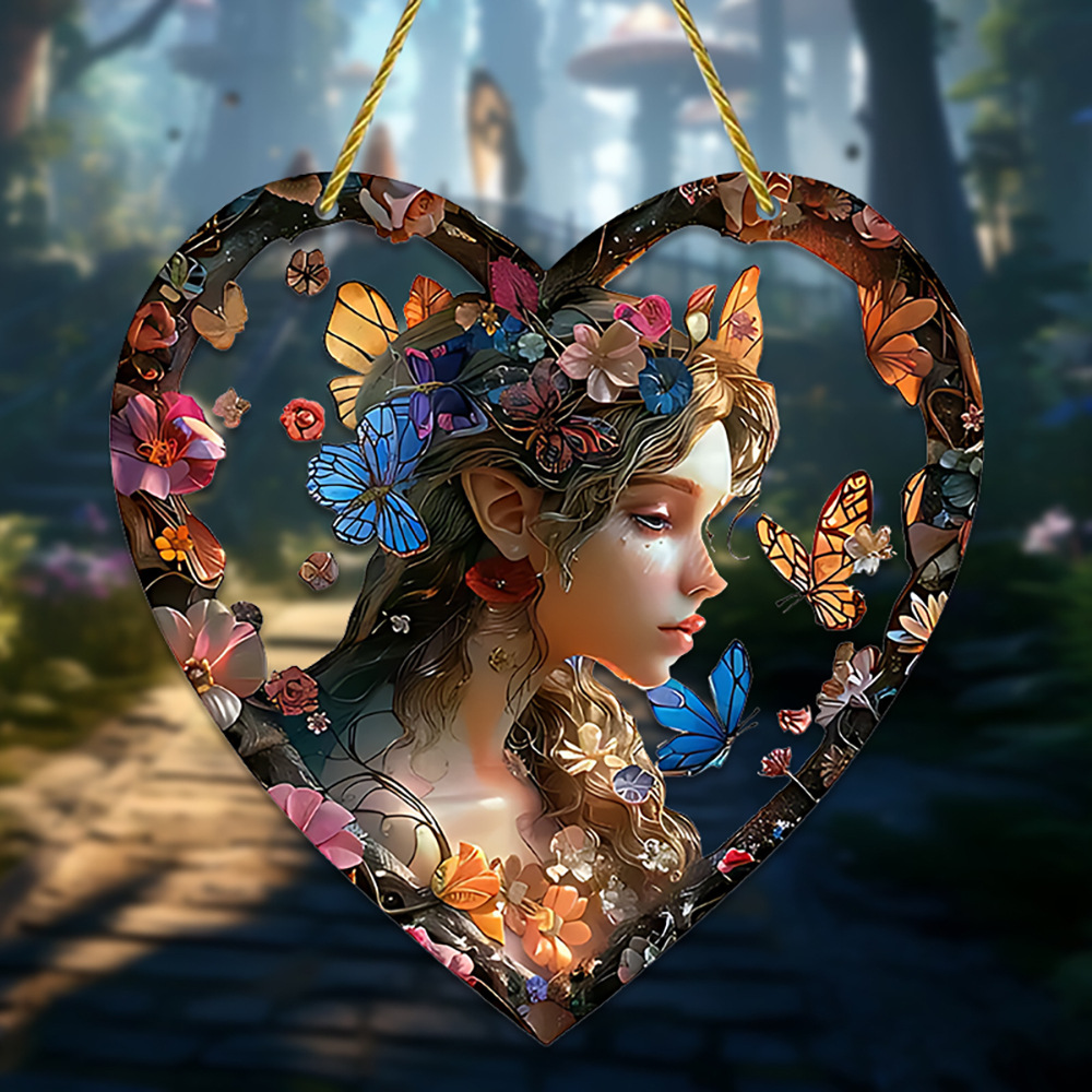 국경 판타지 아름다운 꽃 요정 아크릴 사랑 펜던트 컬러 포수 현관 펜던트 야외 장식스토어 가기