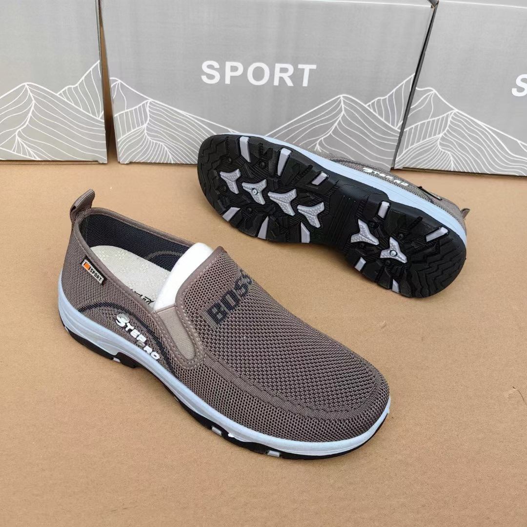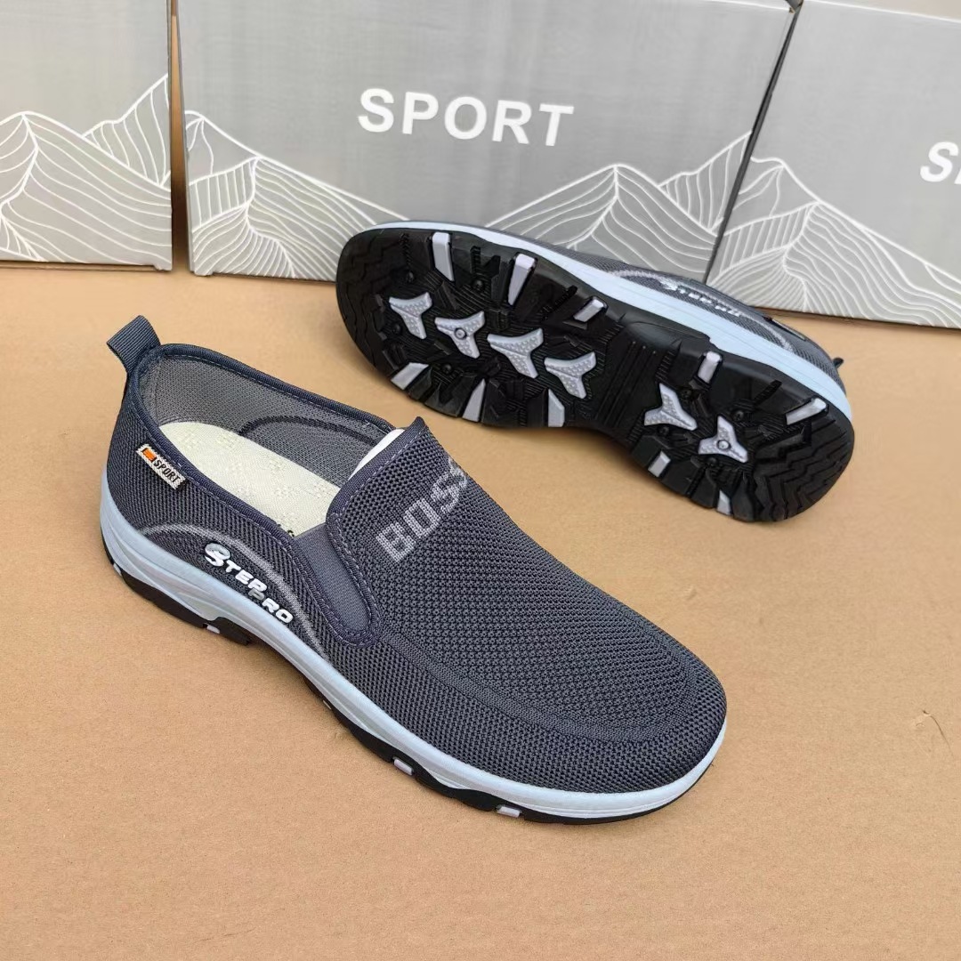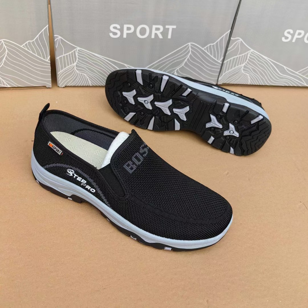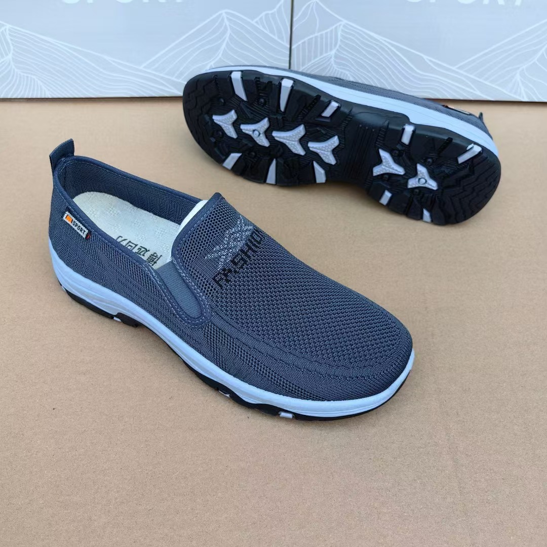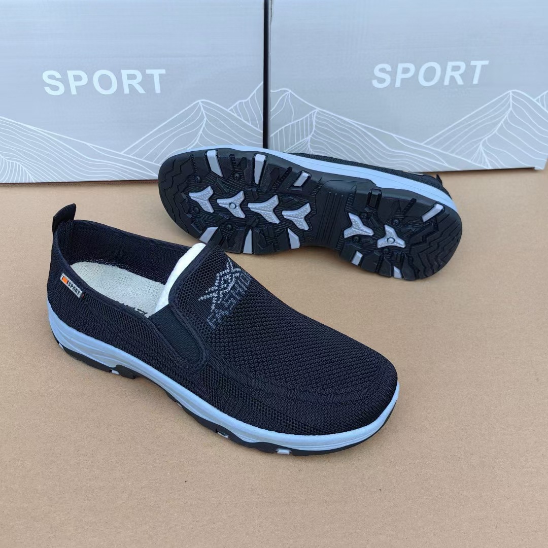 2025 봄과 가을 새로운 플라잉 직조 슬립 온 남성용 스포츠 신발 바닥 내마모성 통기성 재고 캐주얼 남성 신발