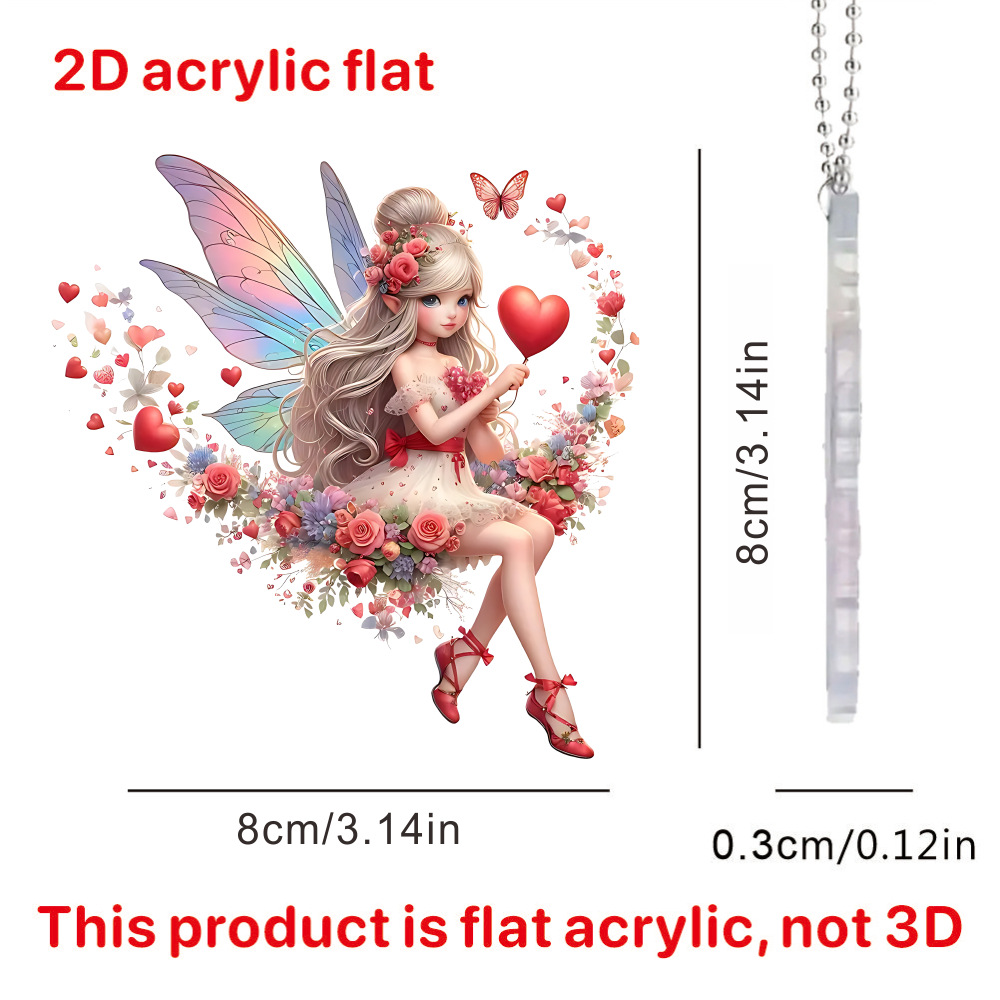 자동차 배낭 펜던트에 적합한 국경 핑크 사랑 꽃 요정 펜던트 다기능 아크릴 키 체인