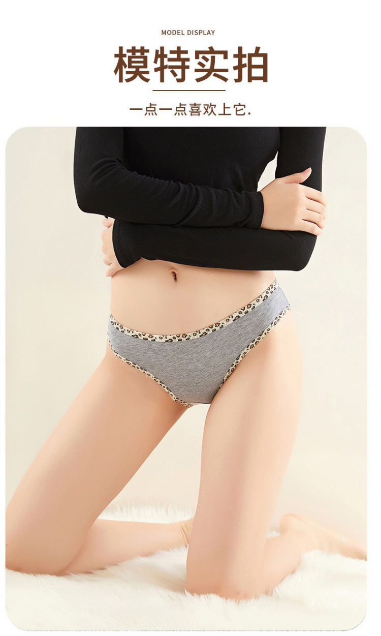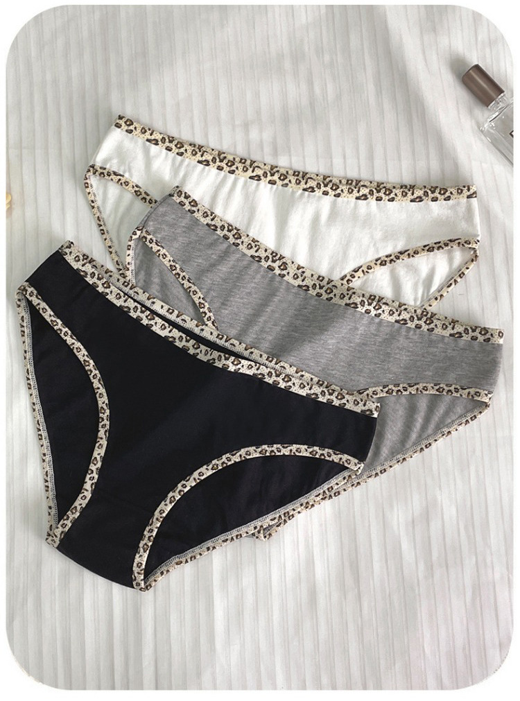 일본 섹시한 레오파드 무늬 순수한 욕망 여성 속옷 엉덩이 중간 허리 더블 내부 레이어 통기성 소녀 학생 브리프스토어 가기