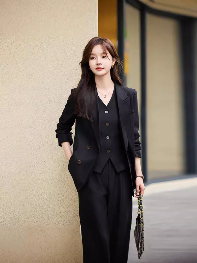 블랙 정장 조끼 세트 여성용 봄 가을 2025 봄 신상 고급스러운 출근용 정장 재킷스토어 가기