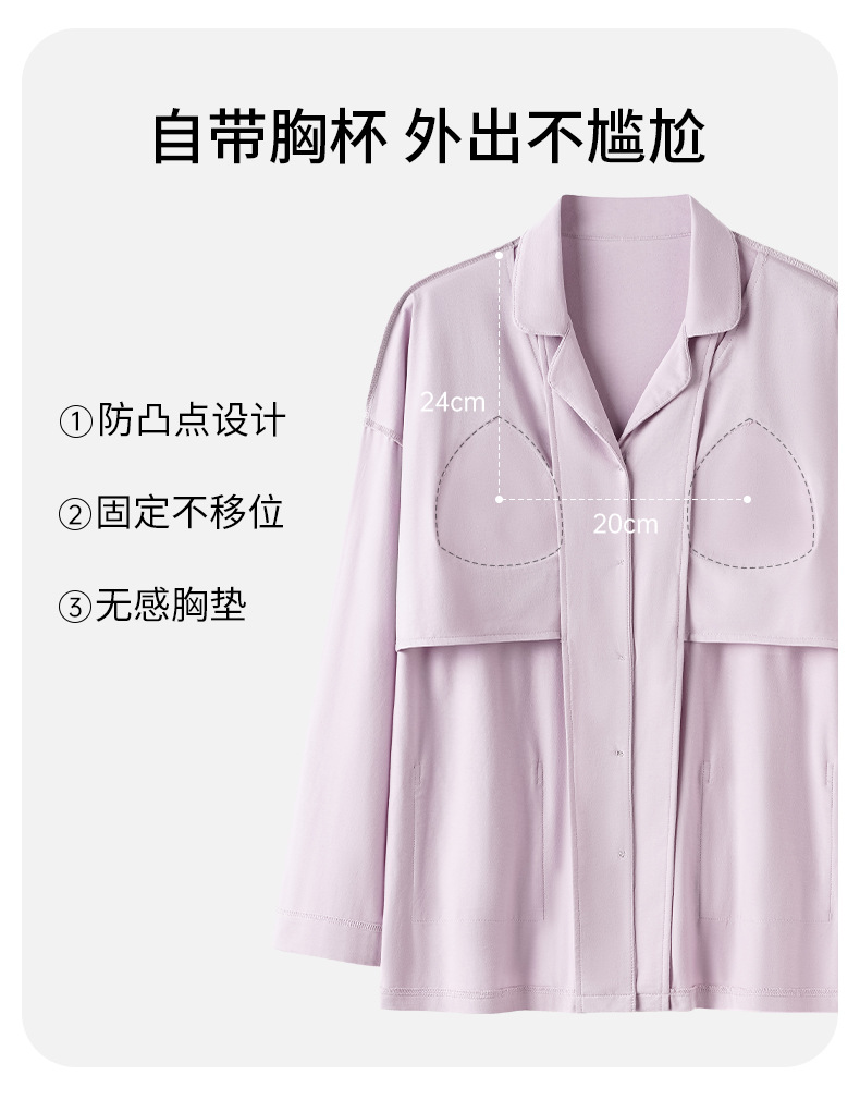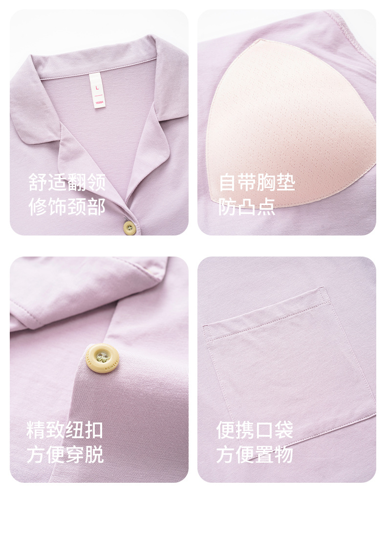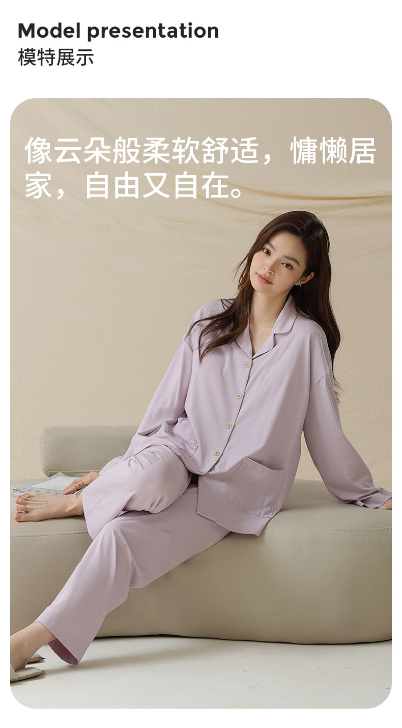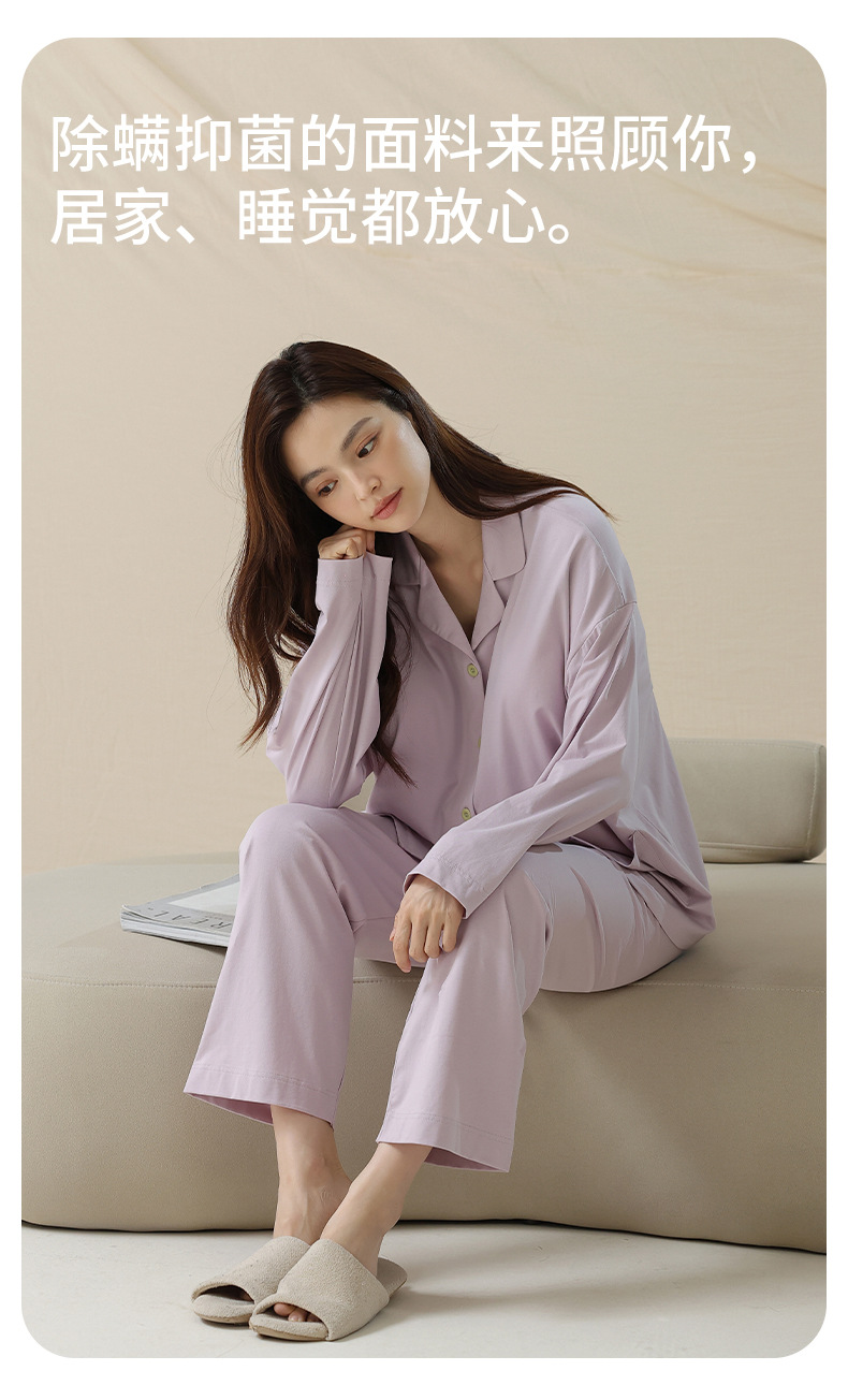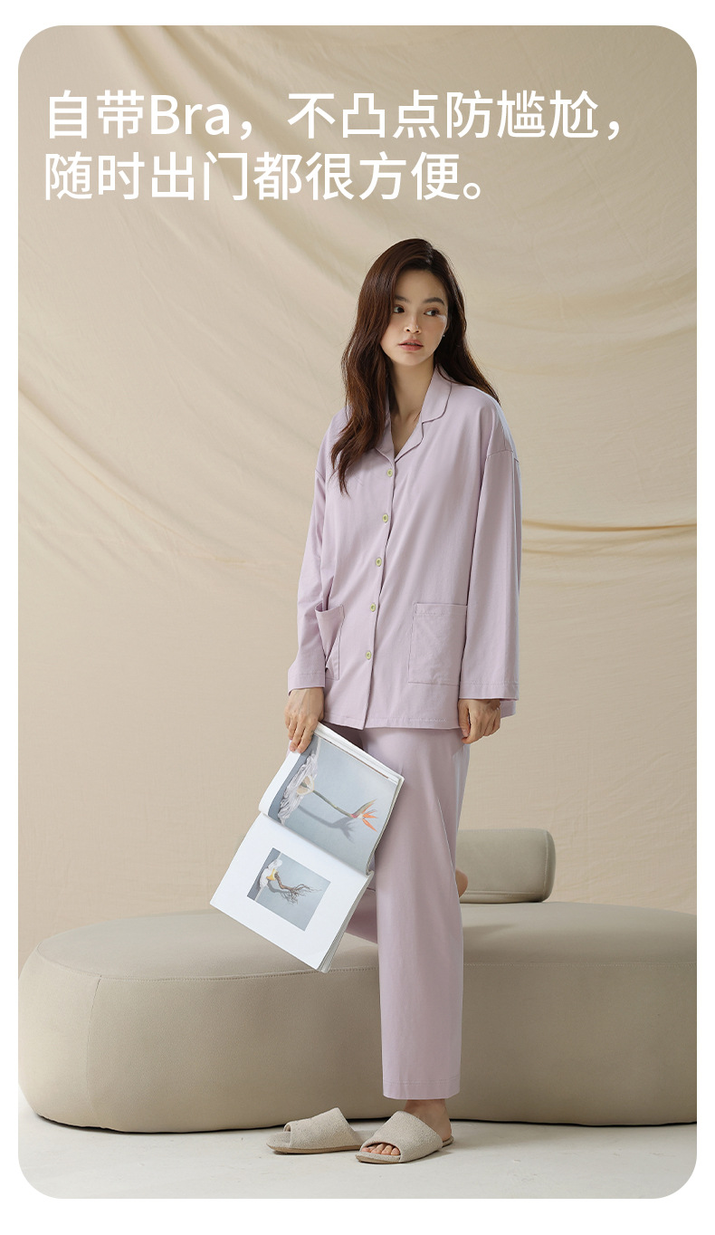 [항균면] 가슴 패드가 있는 잠옷, A형 진드기 방지 및 항균 잠옷, 여성용 가을 순면 커플 잠옷, 홈웨어스토어 가기
