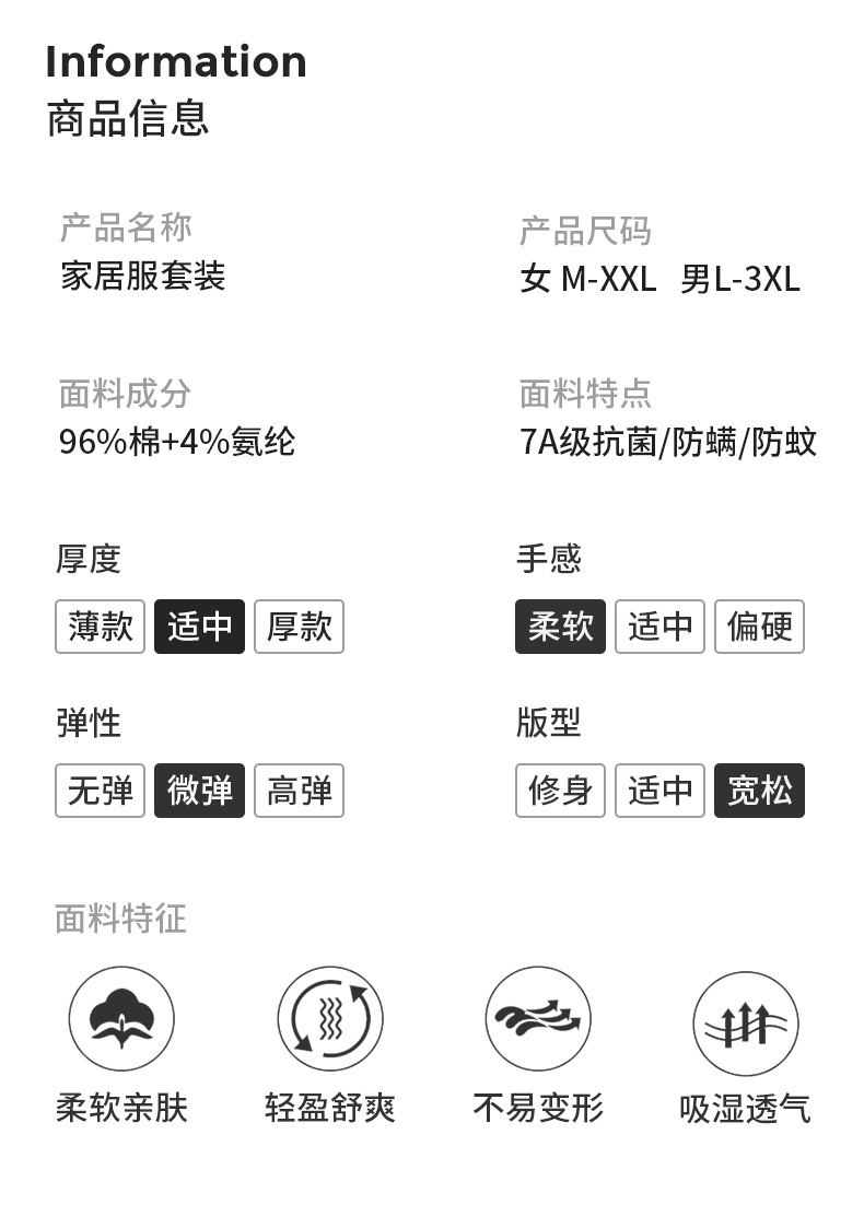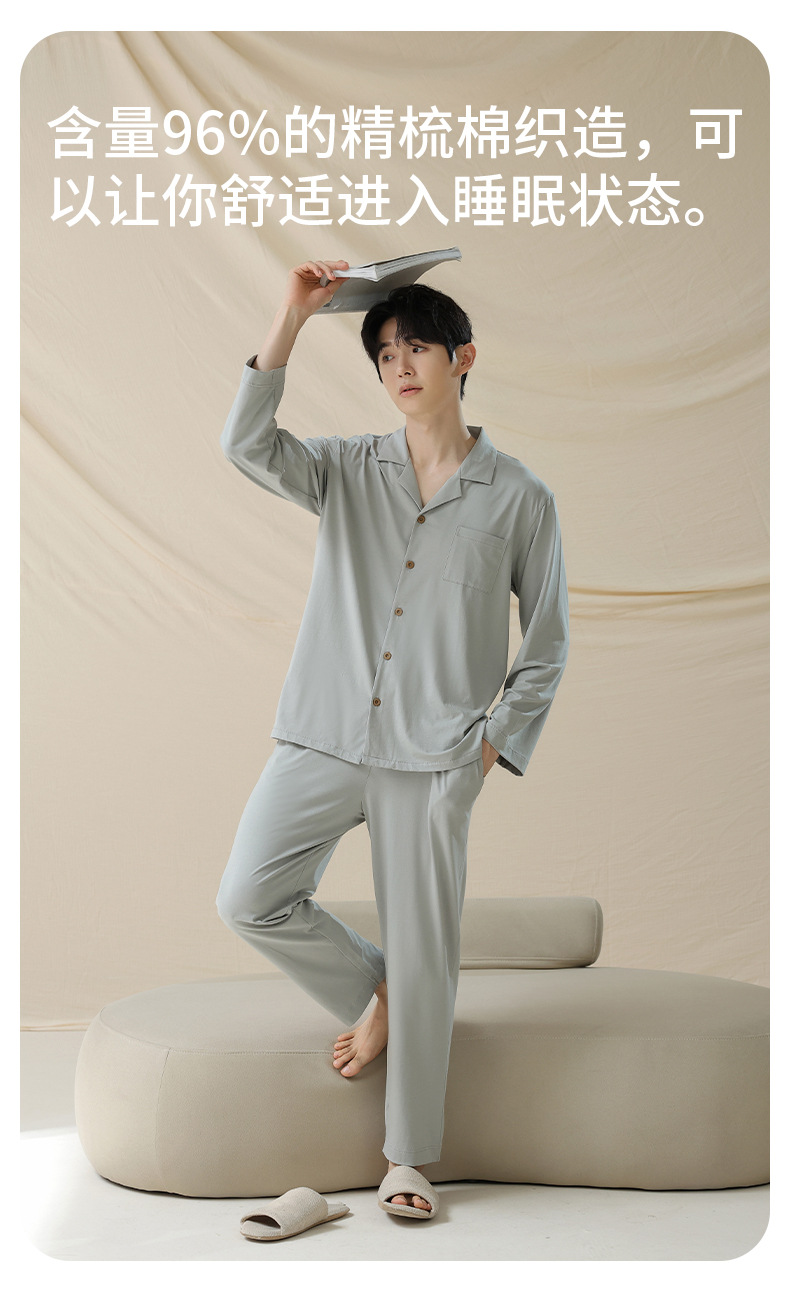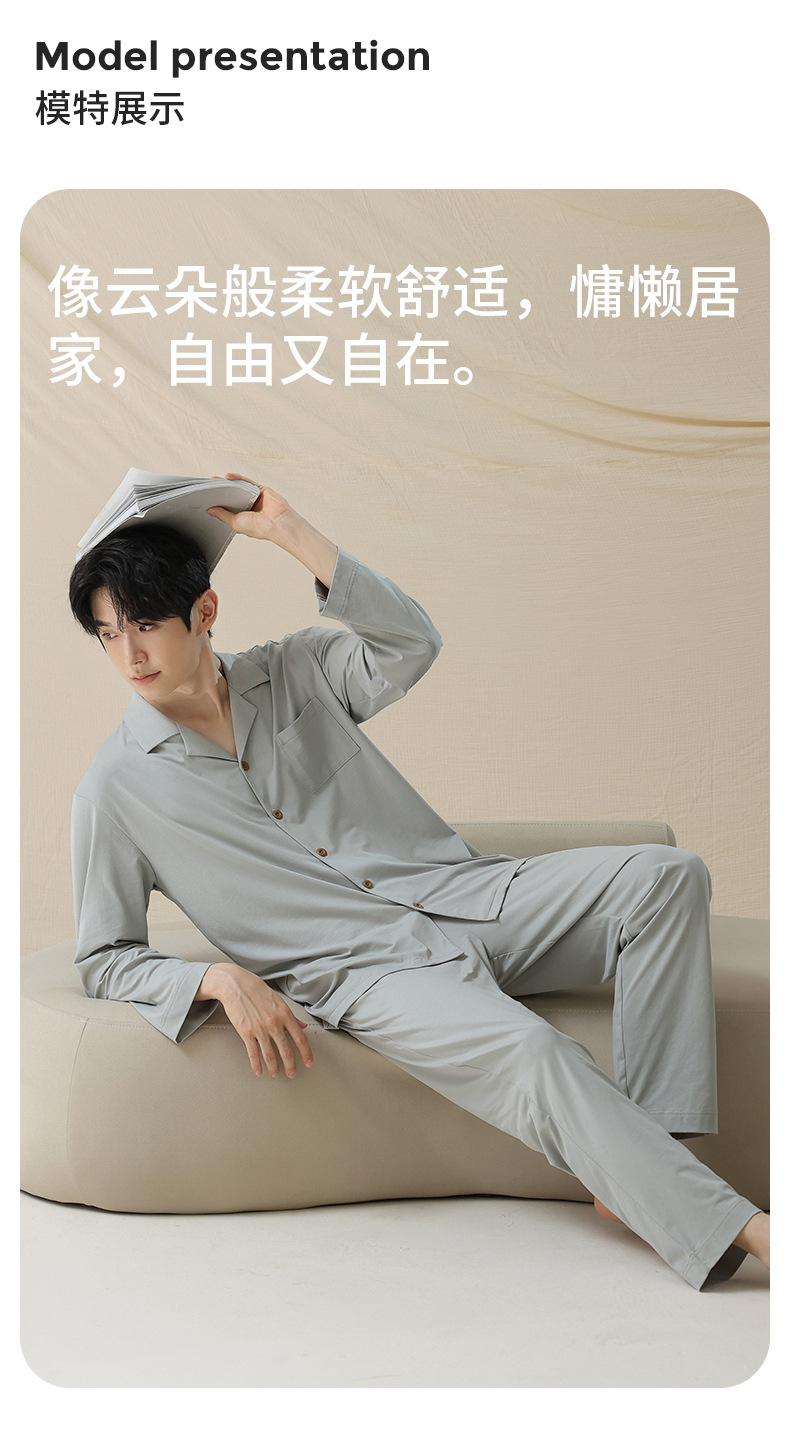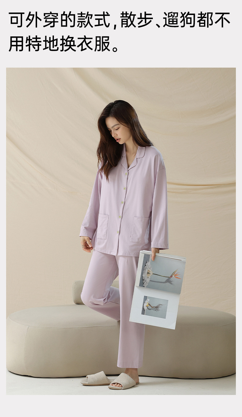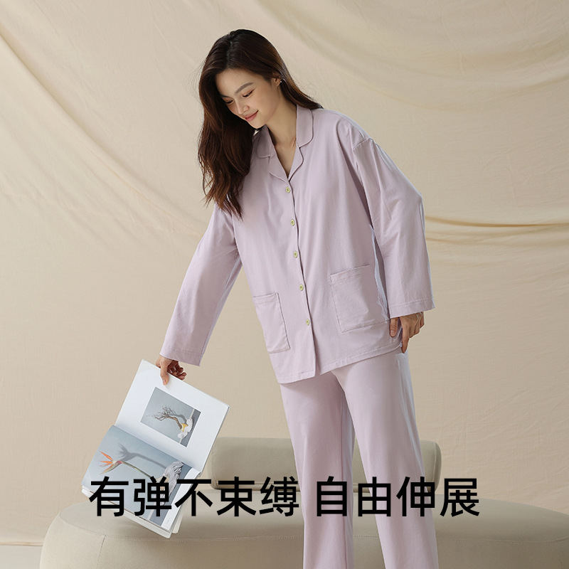 [항균면] 가슴 패드가 있는 잠옷, A형 진드기 방지 및 항균 잠옷, 여성용 가을 순면 커플 잠옷, 홈웨어스토어 가기