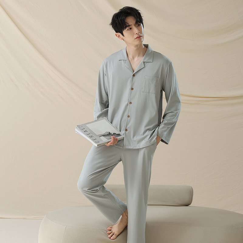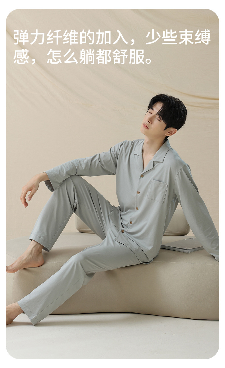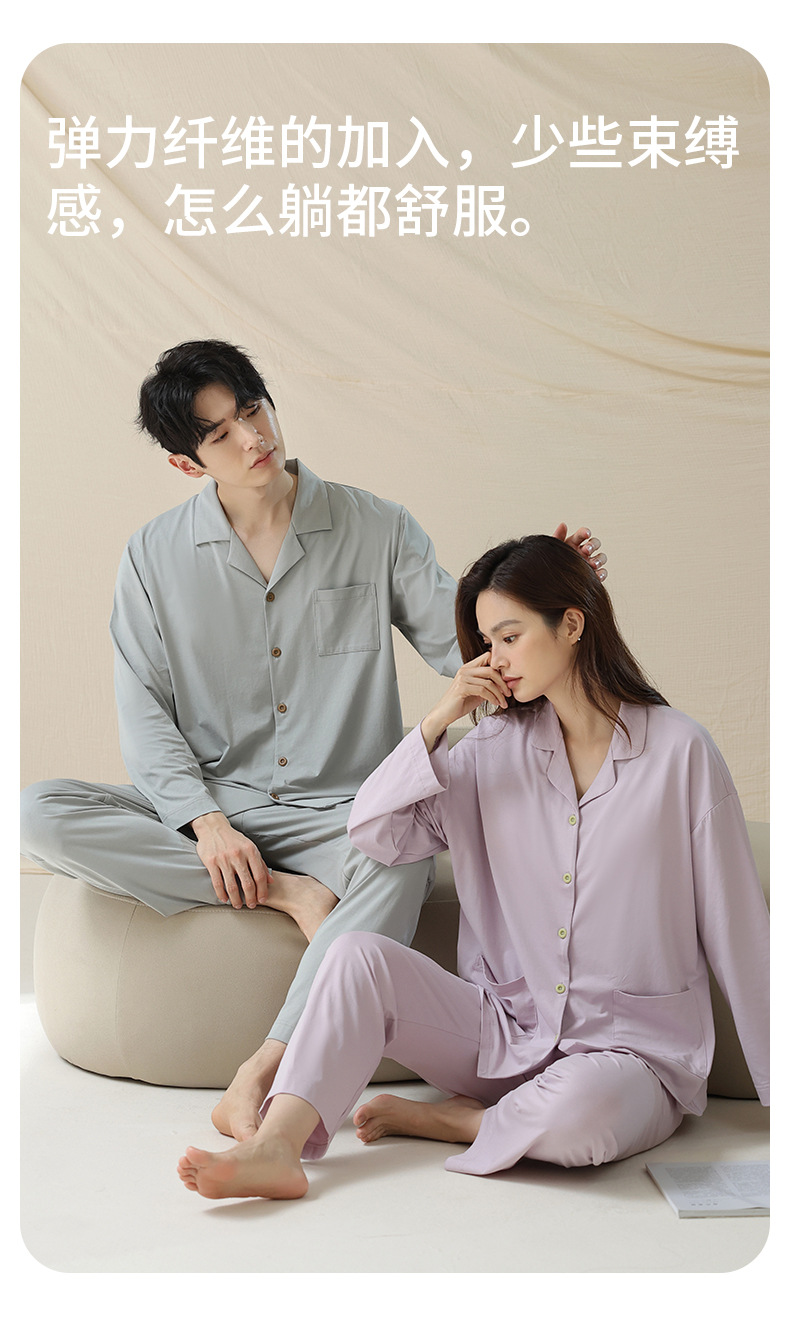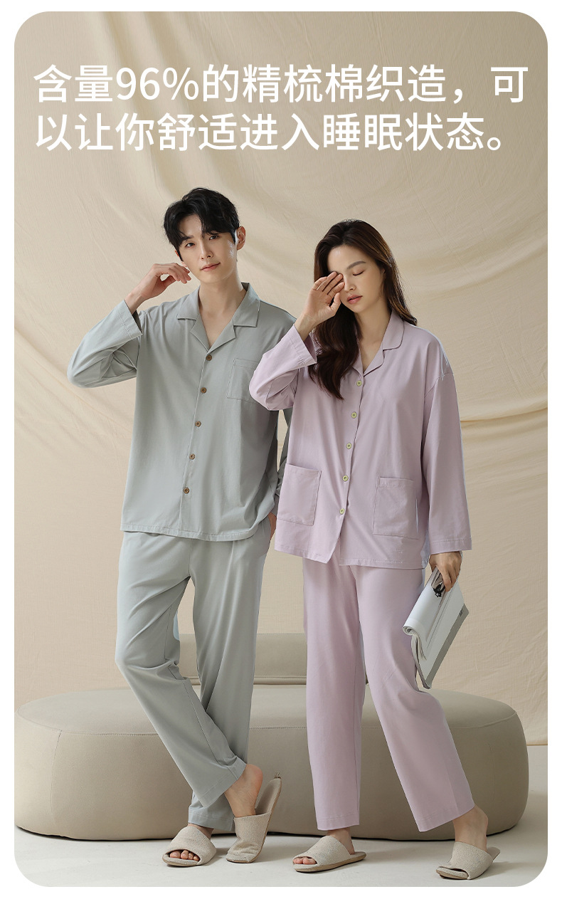 [항균면] 가슴 패드가 있는 잠옷, A형 진드기 방지 및 항균 잠옷, 여성용 가을 순면 커플 잠옷, 홈웨어