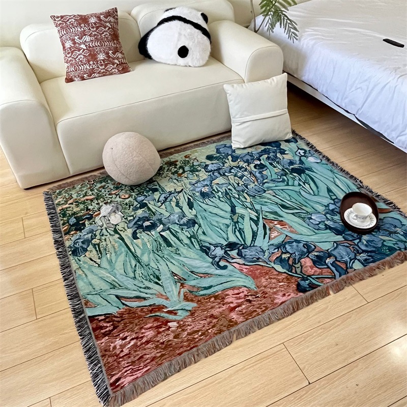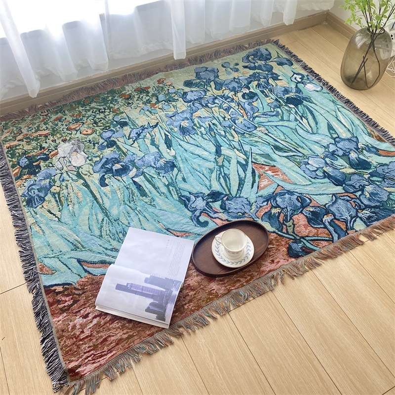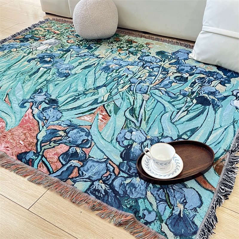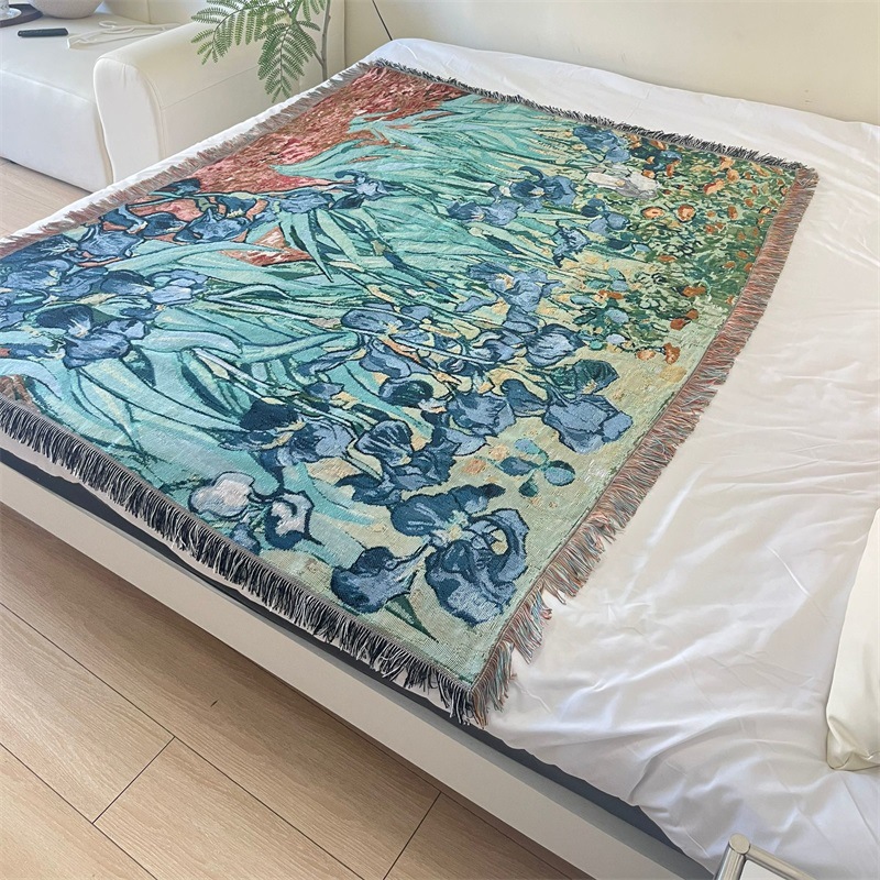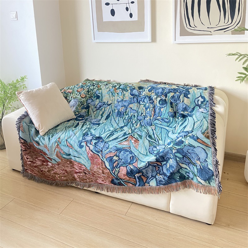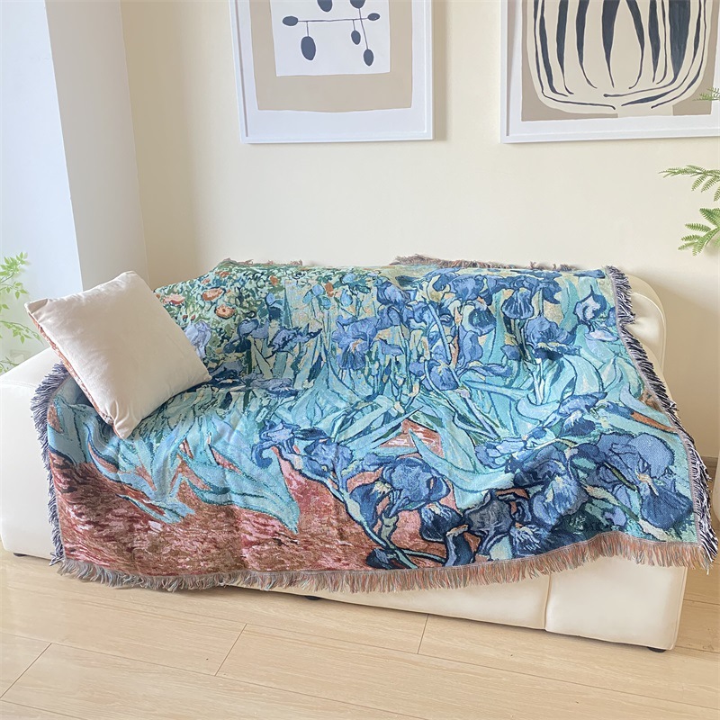 국경 간 세계 유명한 그림 반 고흐 아이리스 타월 쿠션 유화 스타일 태피스트리 커버 천 단일 소파 커버 라인 담요