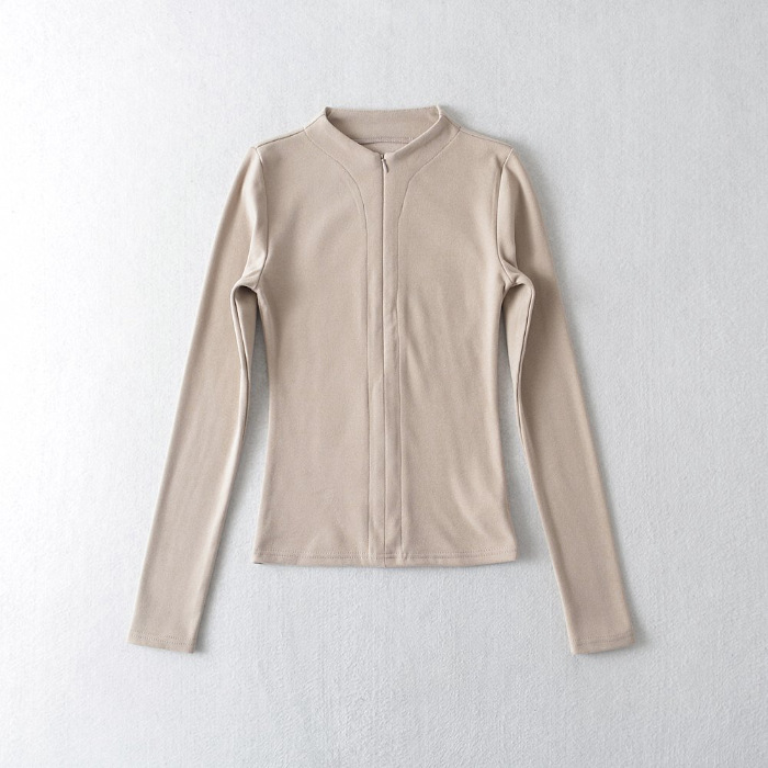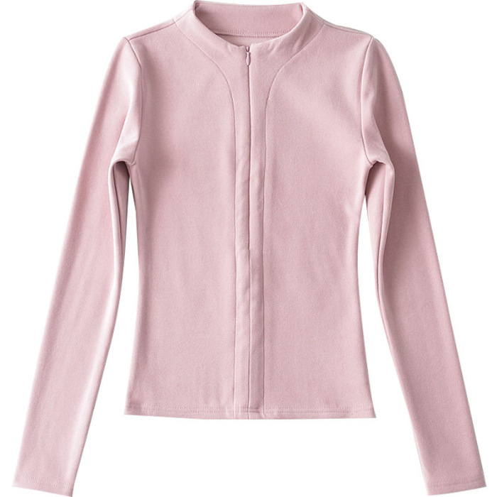 편안하고 따뜻한 양면 벨벳 지퍼 작은 스탠드 칼라 긴 소매 슬림 핏 바닥 셔츠 가을과 겨울 짧은 긴 소매 티셔츠 탑스토어 가기