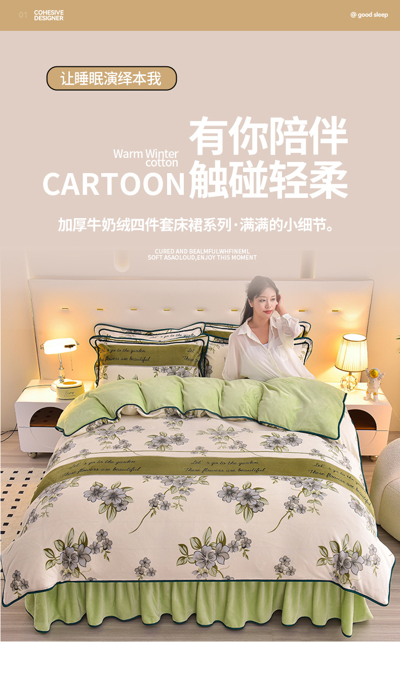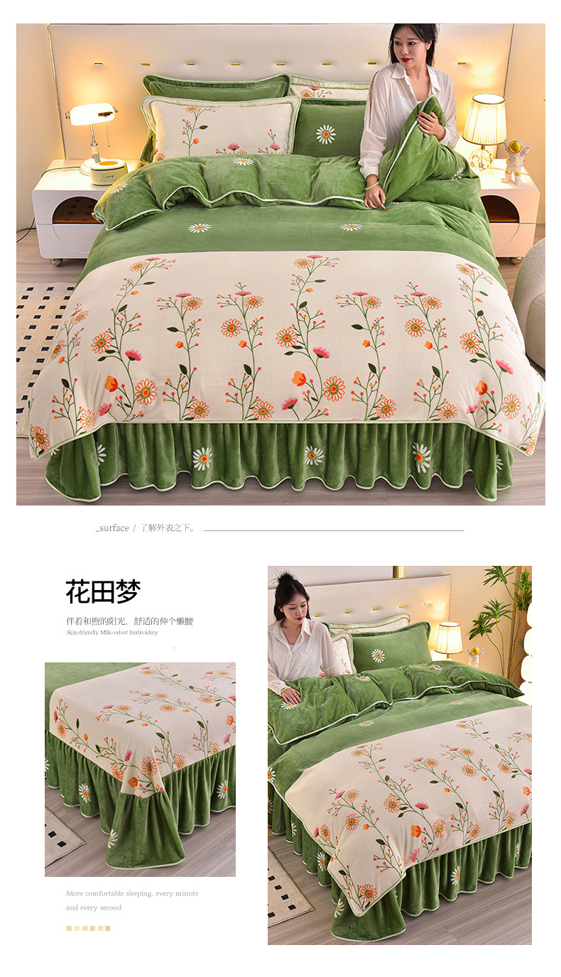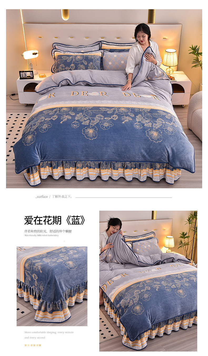 가벼운 럭셔리 겨울 두꺼운 우유 벨벳 4 피스 세트 따뜻한 양면 벨벳 퀼트 커버 베이비 벨벳 정전기 방지 코랄 벨벳 키트스토어 가기
