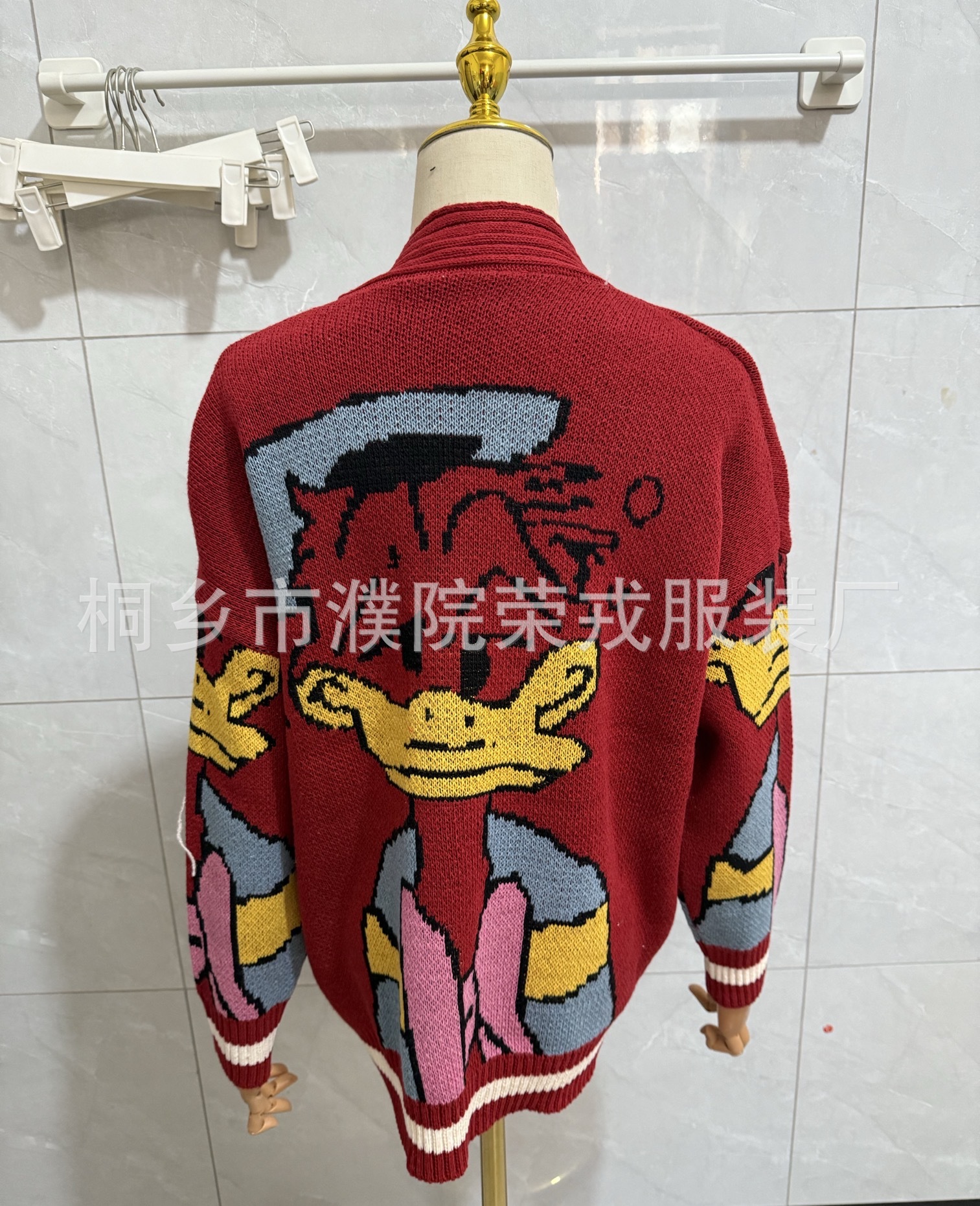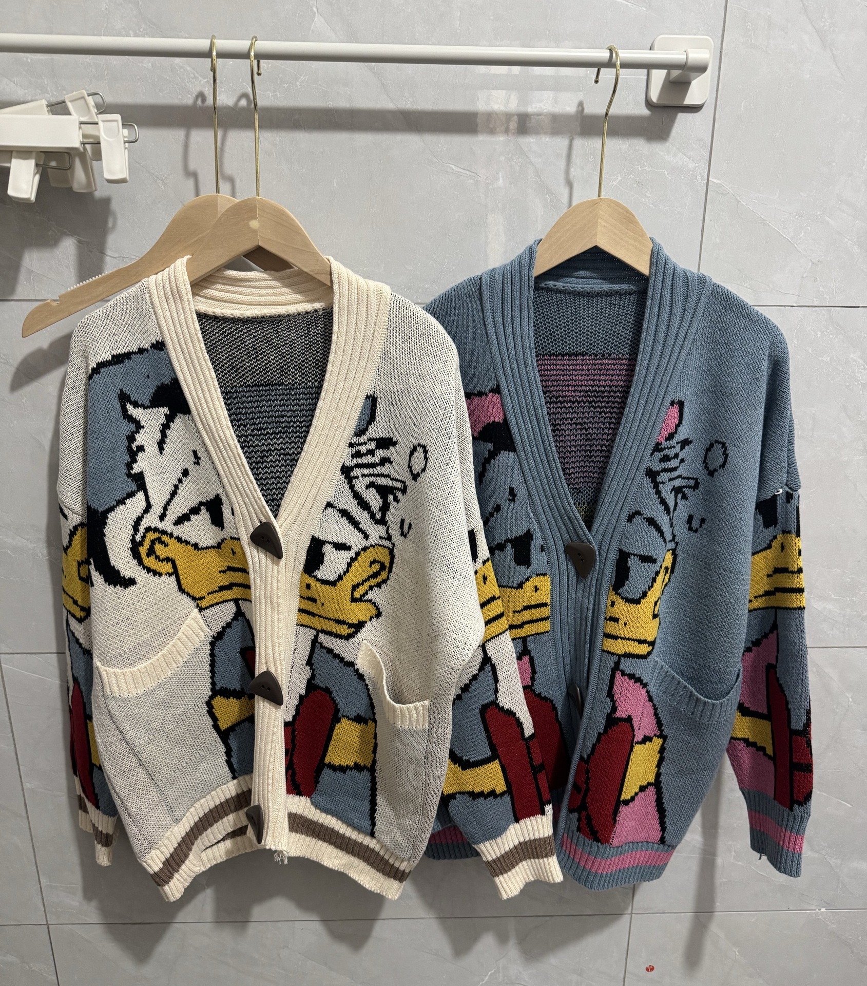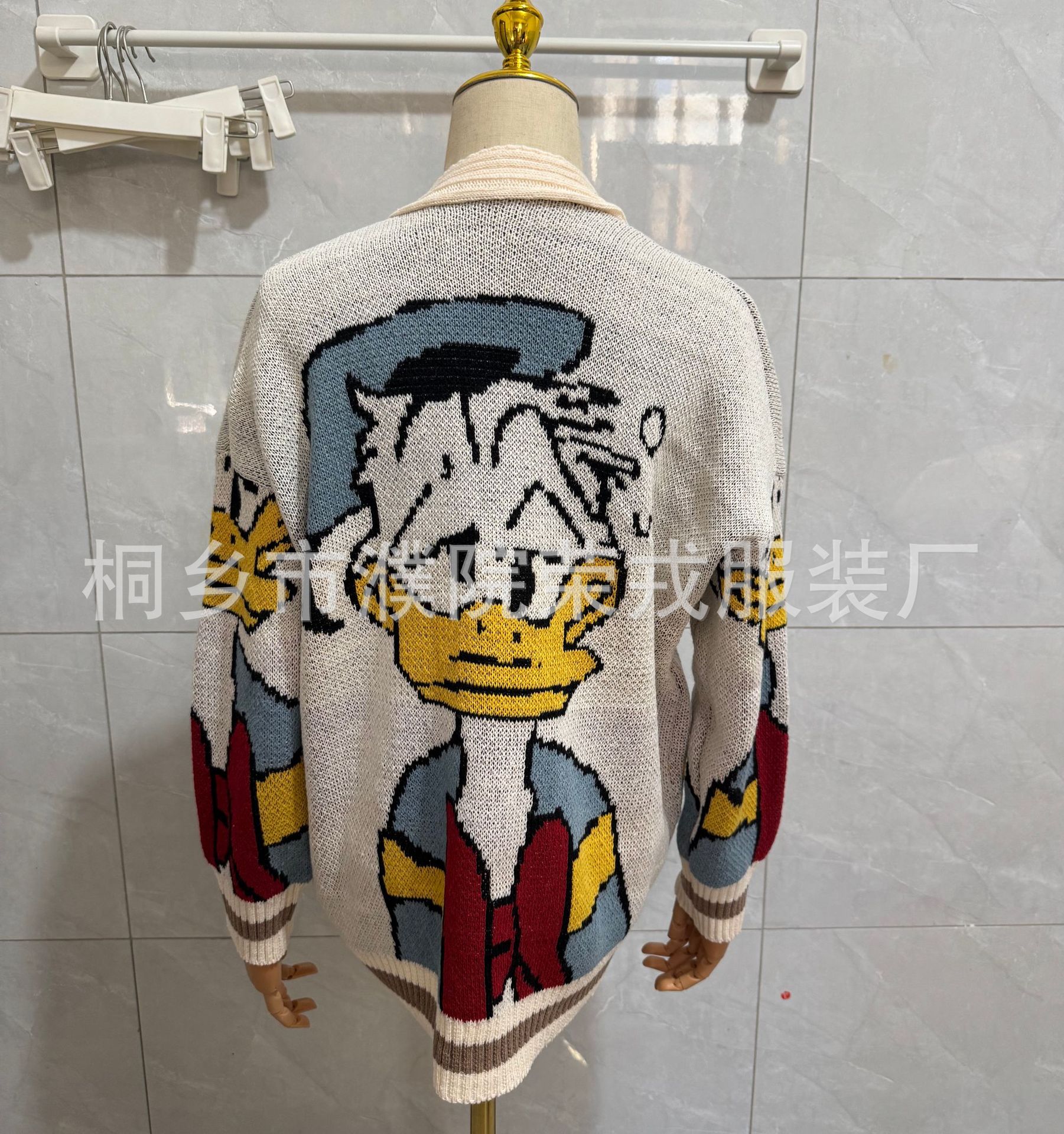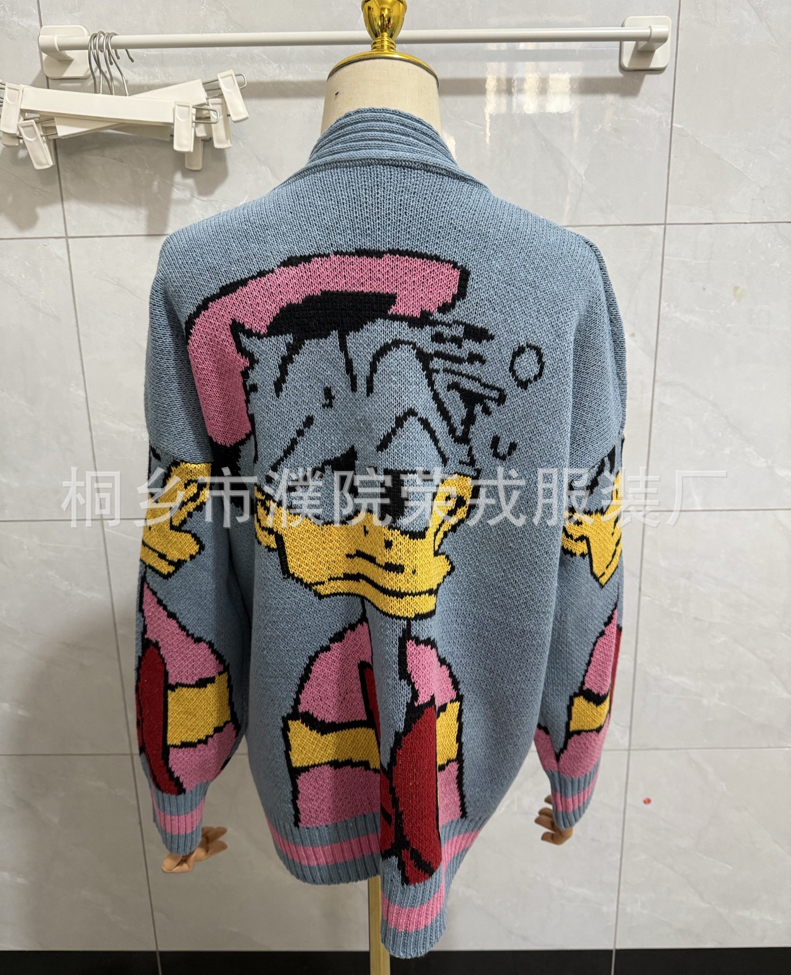 여성을위한 일본 만화 자카드 스웨터 재킷 가을, 겨울 여성 게으른 스타일 느슨한 겉옷 다목적 니트 카디건