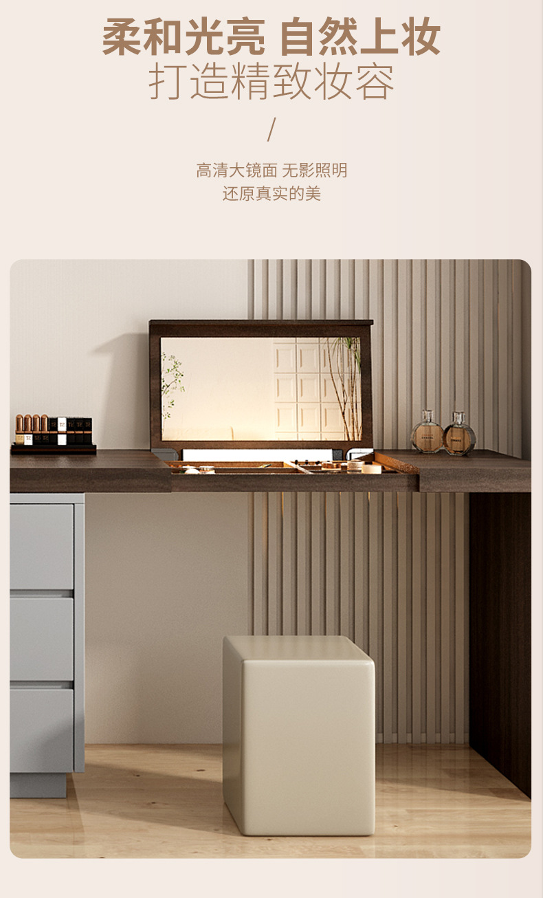 단단한 나무 드레싱 테이블 침실 간단한 현대 메이크업 테이블 거울 캐비닛 버킷 캐비닛 플립 커버 통합 테이블 확장 가능한 코너 데스크